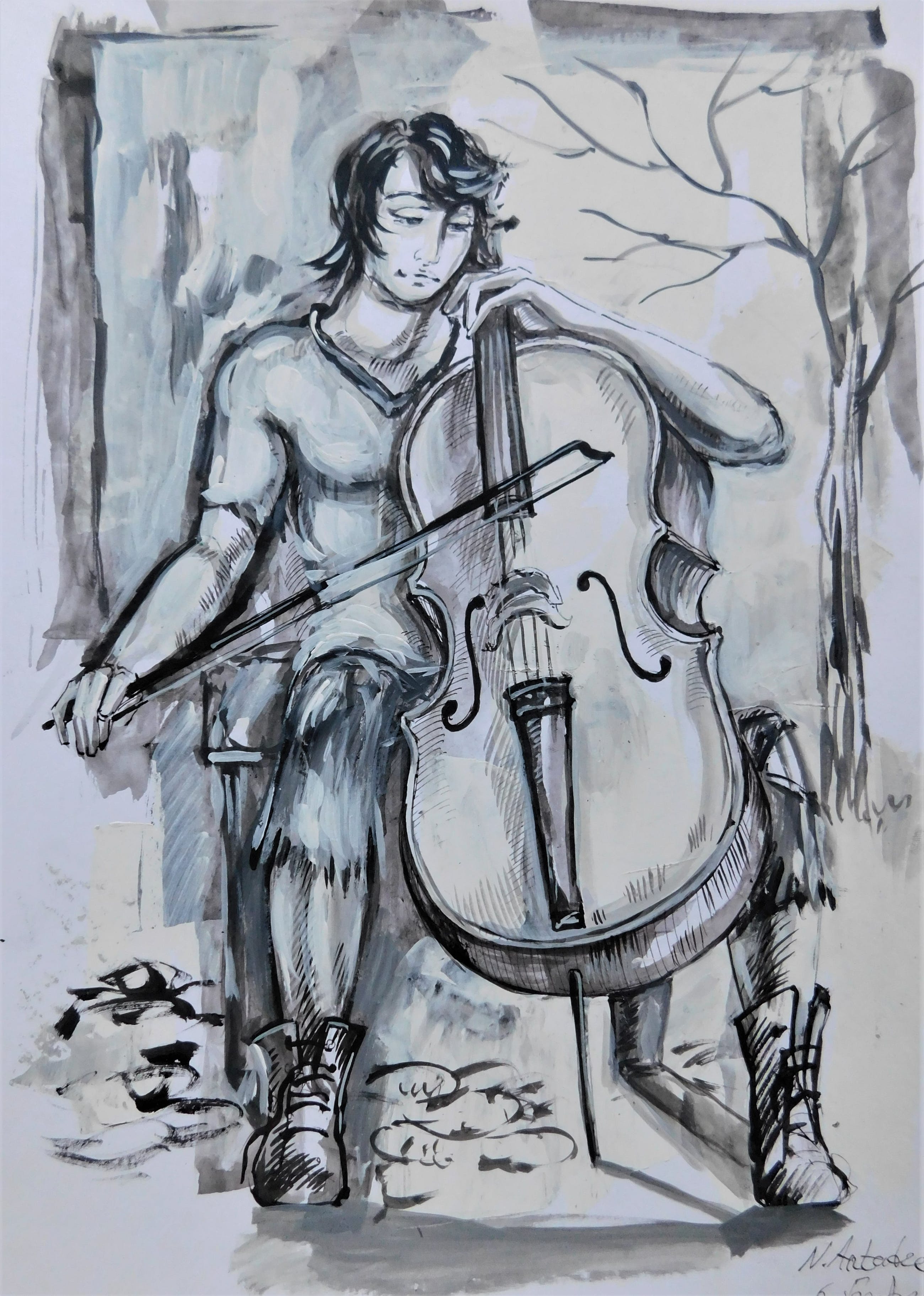 Zustand : neu, Tusche Acryl auf Foto Karton, Zeichnung wird als Paket Versichert Versendet .