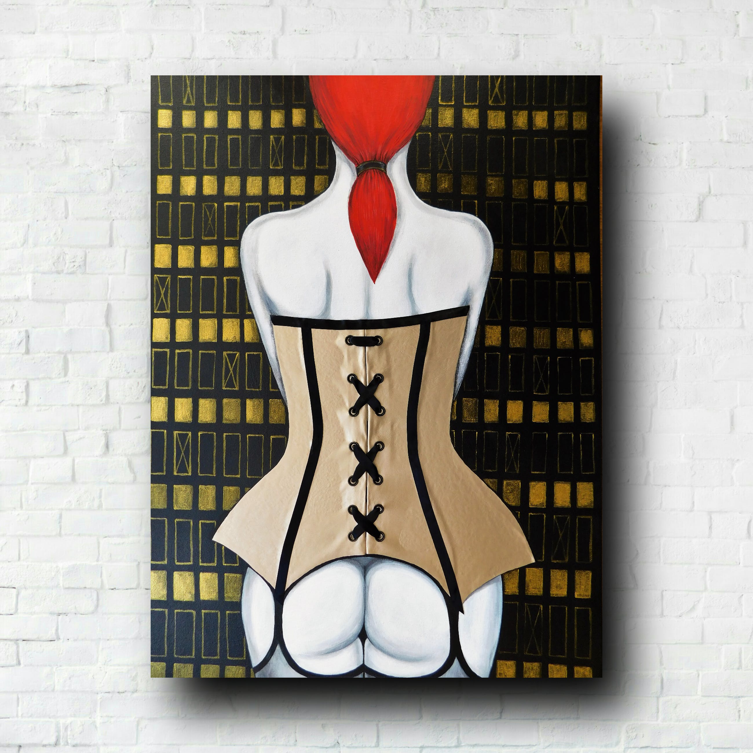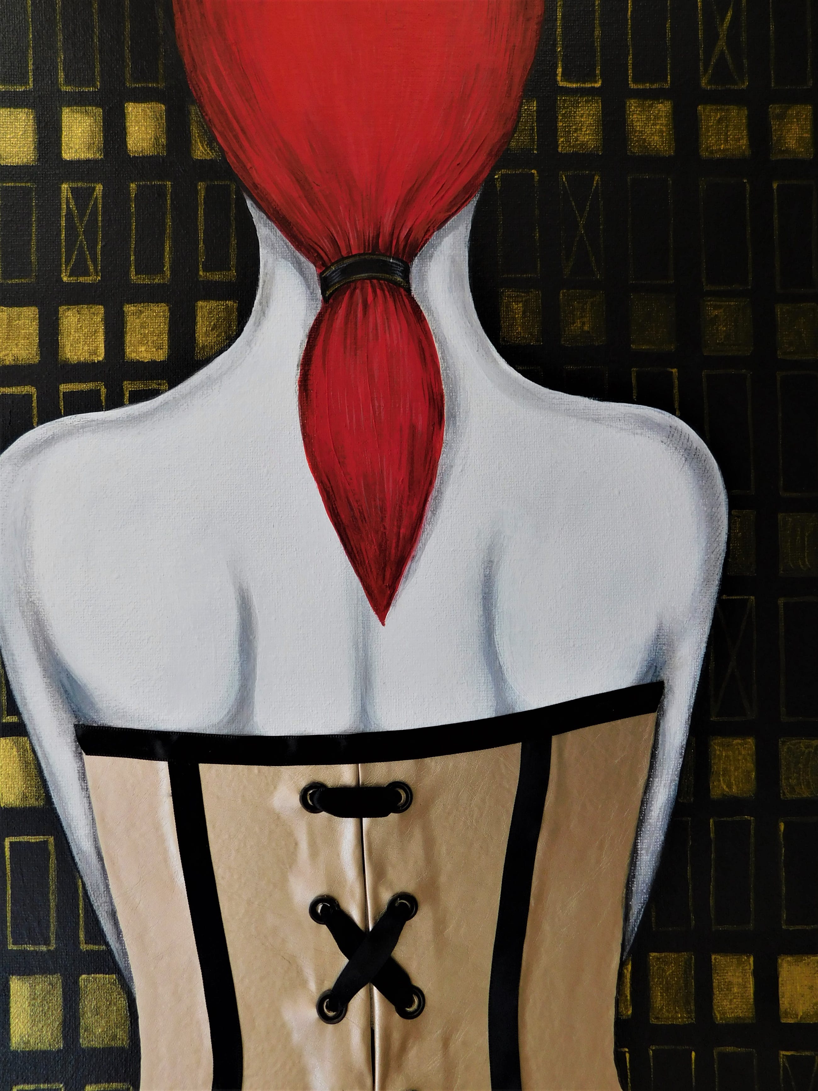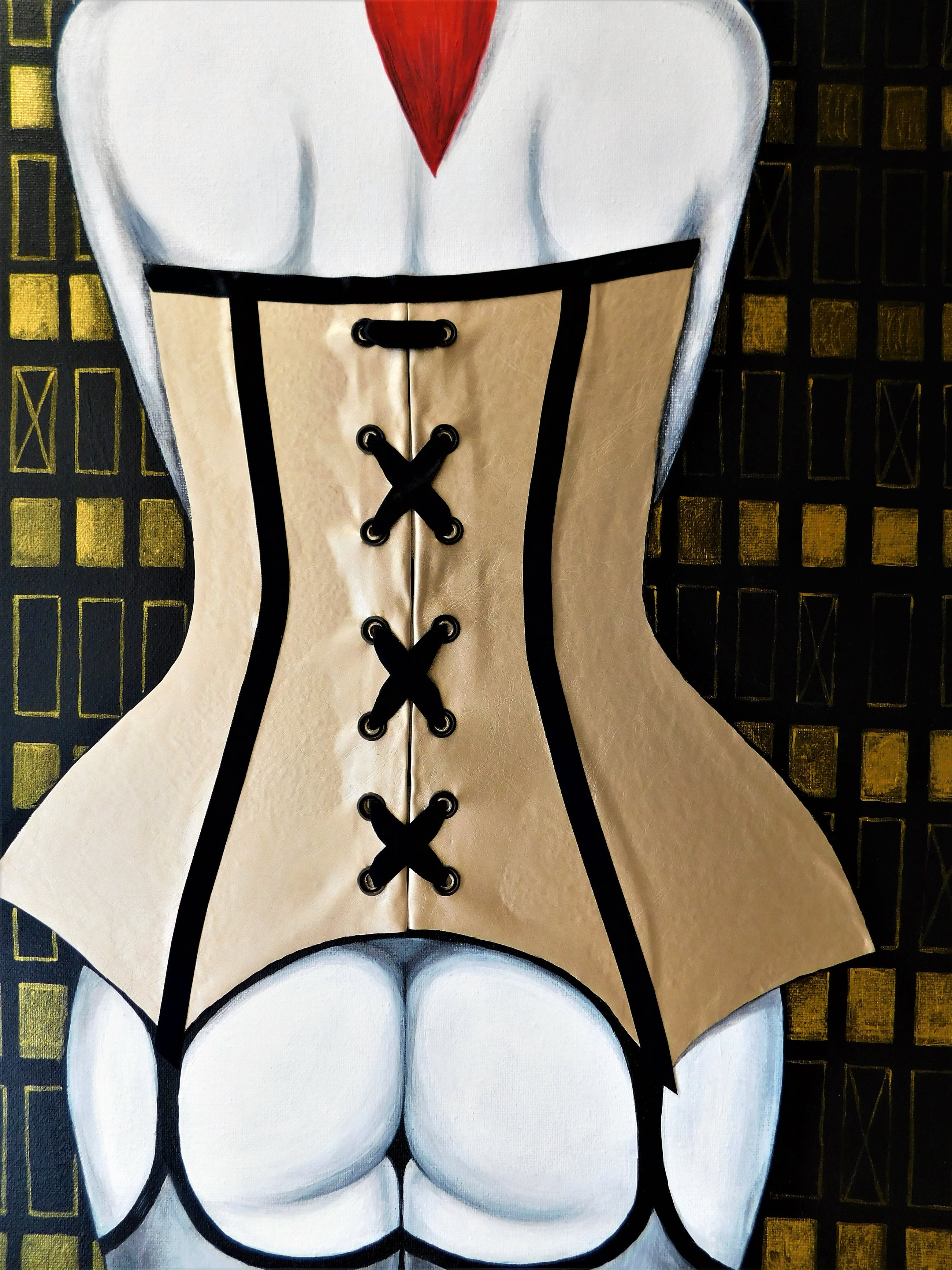 Zustand : neu. Acryl, Leder auf Leinwand mit Holz Keilrahme.