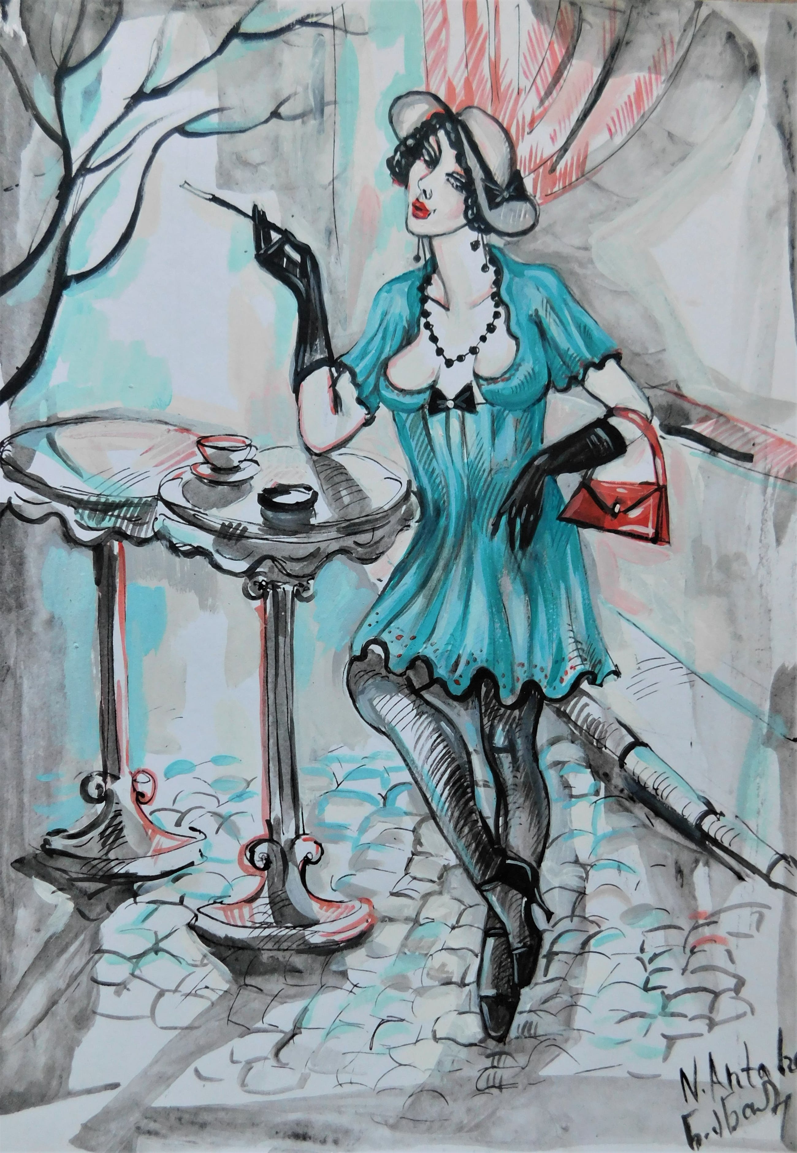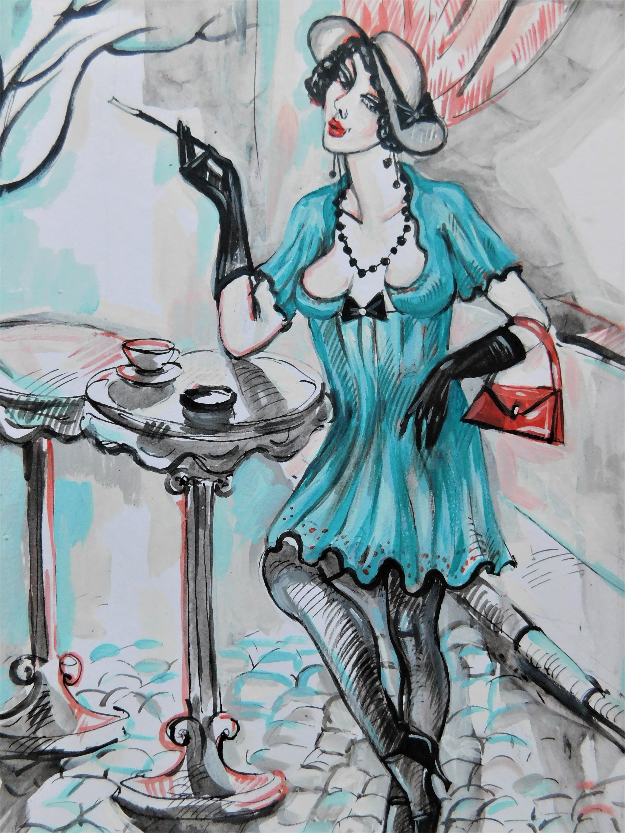 Zustand : neu, Tusche Acryl auf Foto Karton, Zeichnung wird als Paket Versichert Versendet .