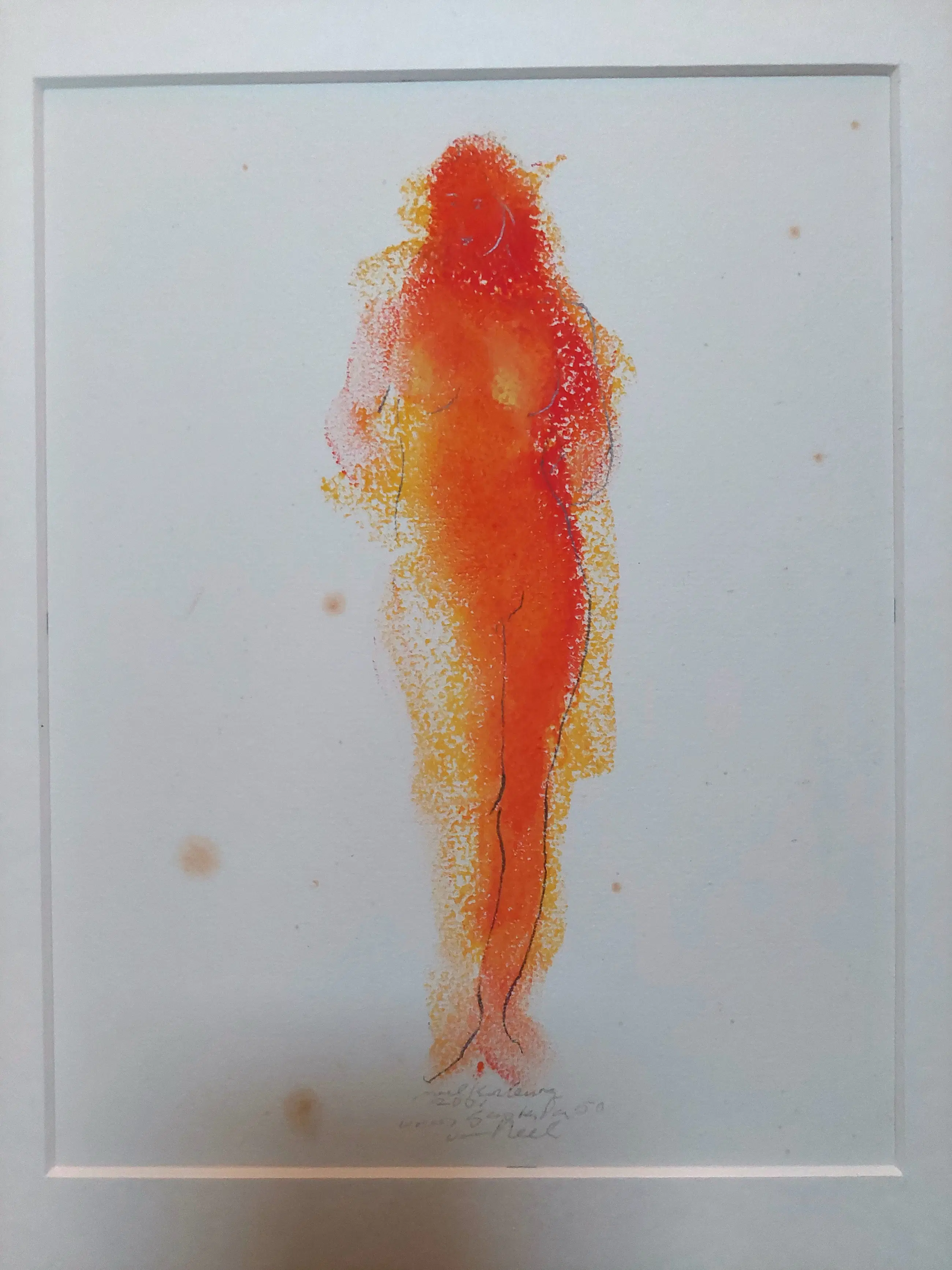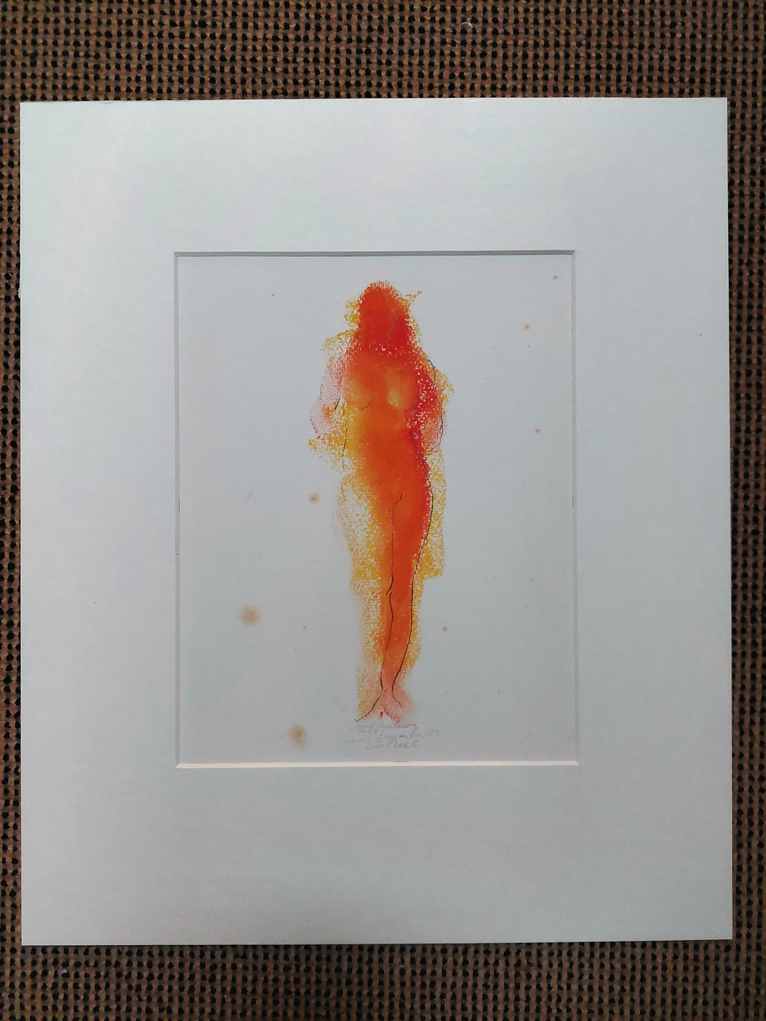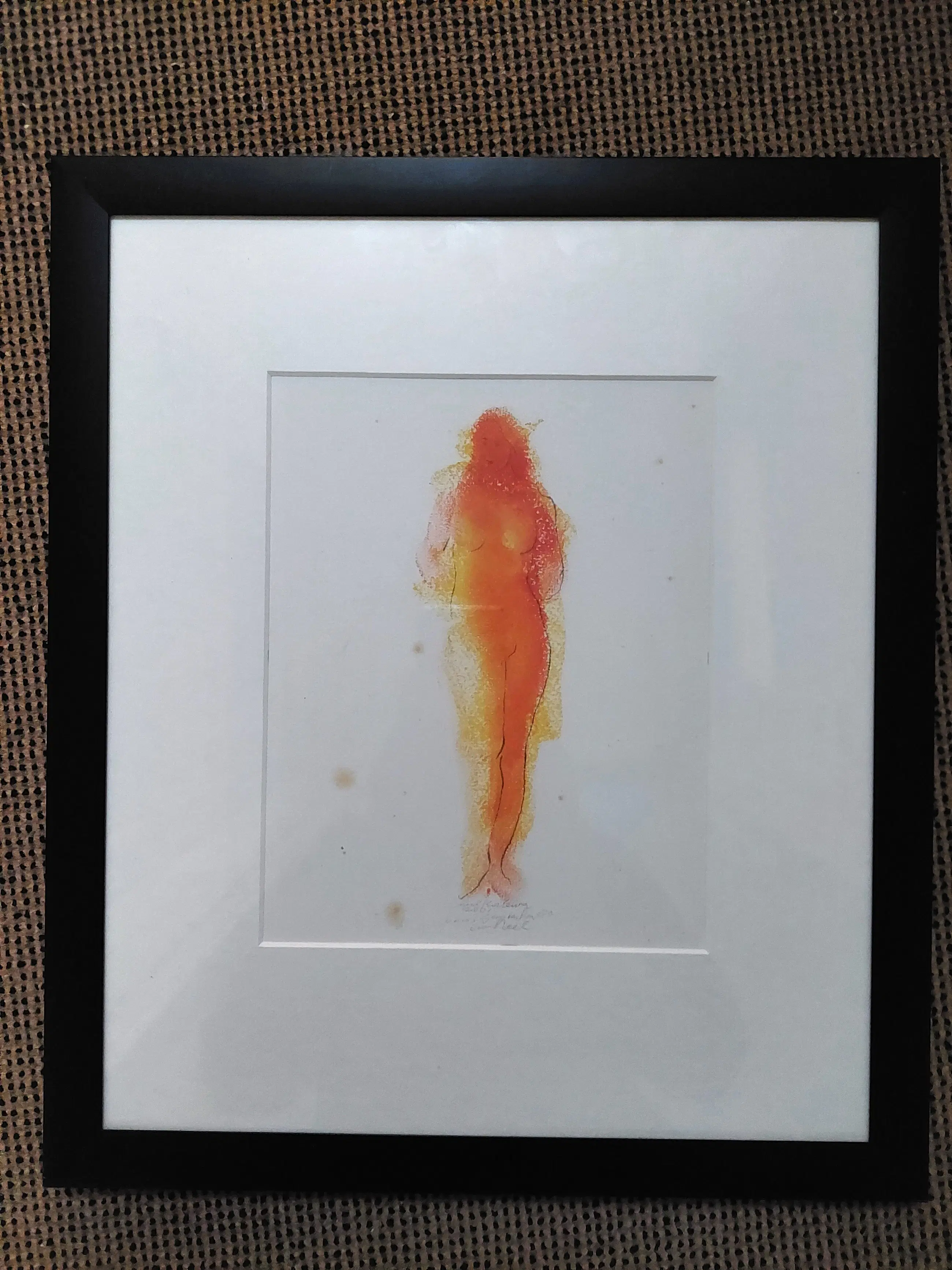 Mooi aquarel met vrouwelijk naakt - ingelijst in aluminium kader met passe partout