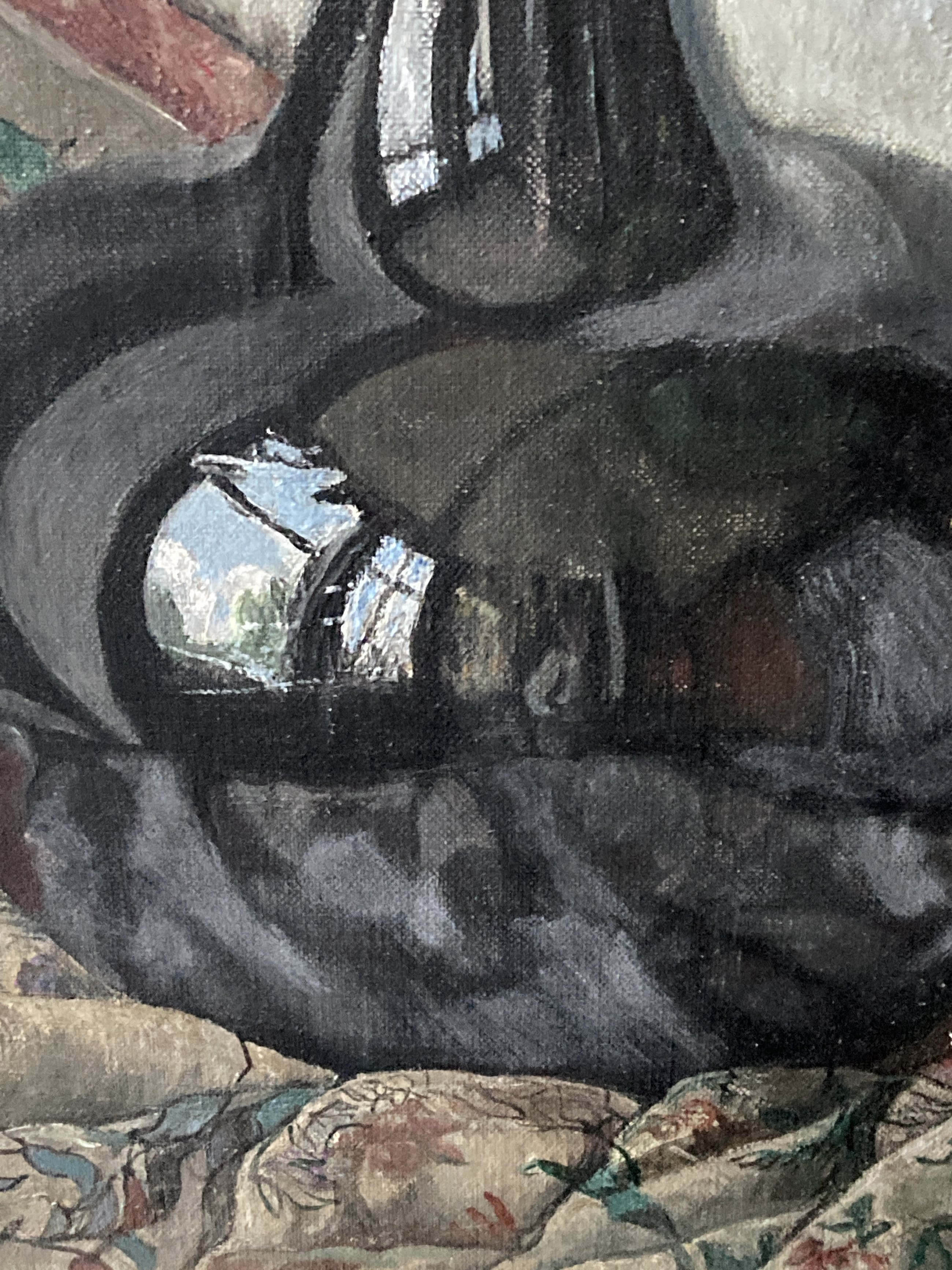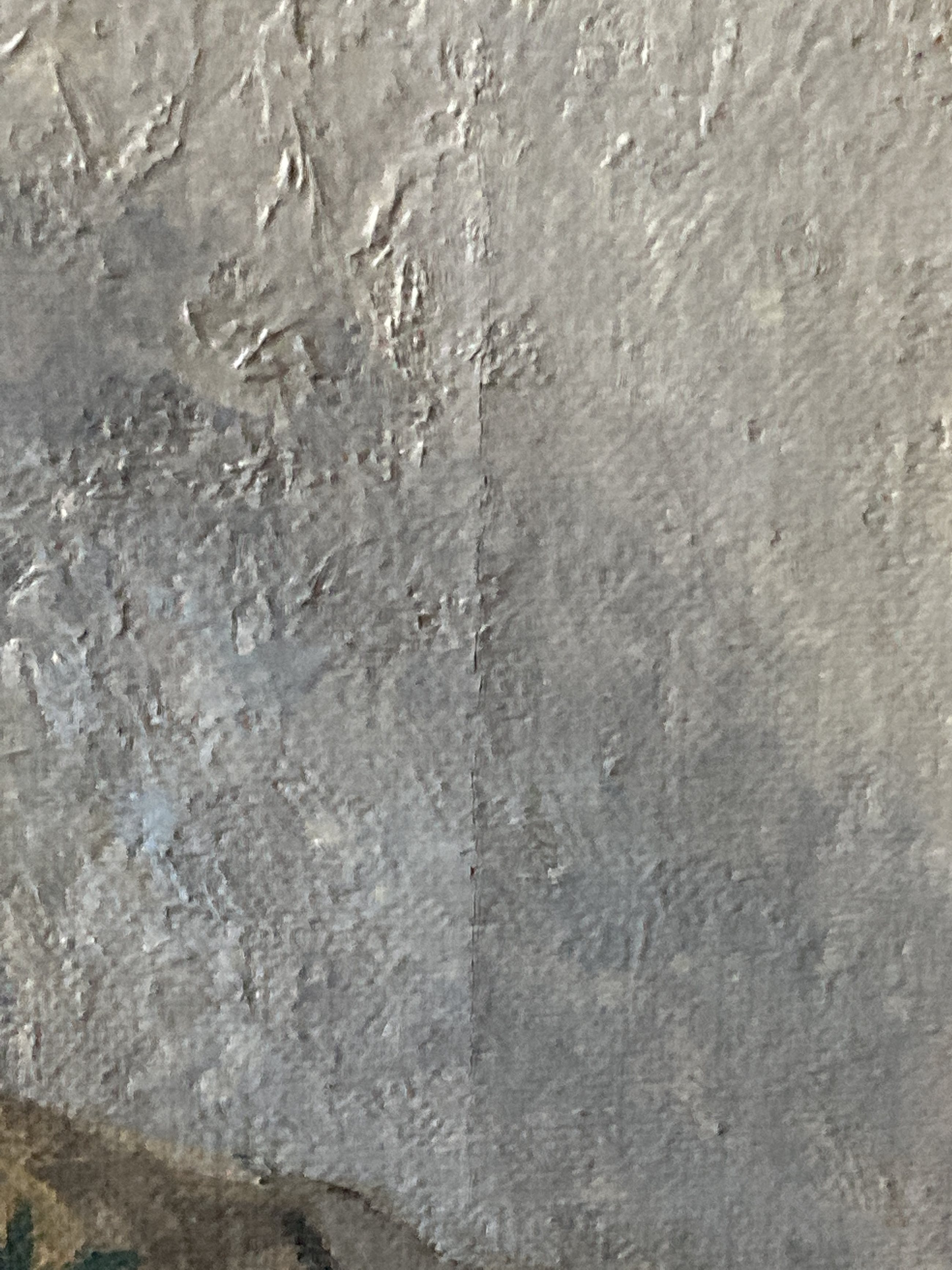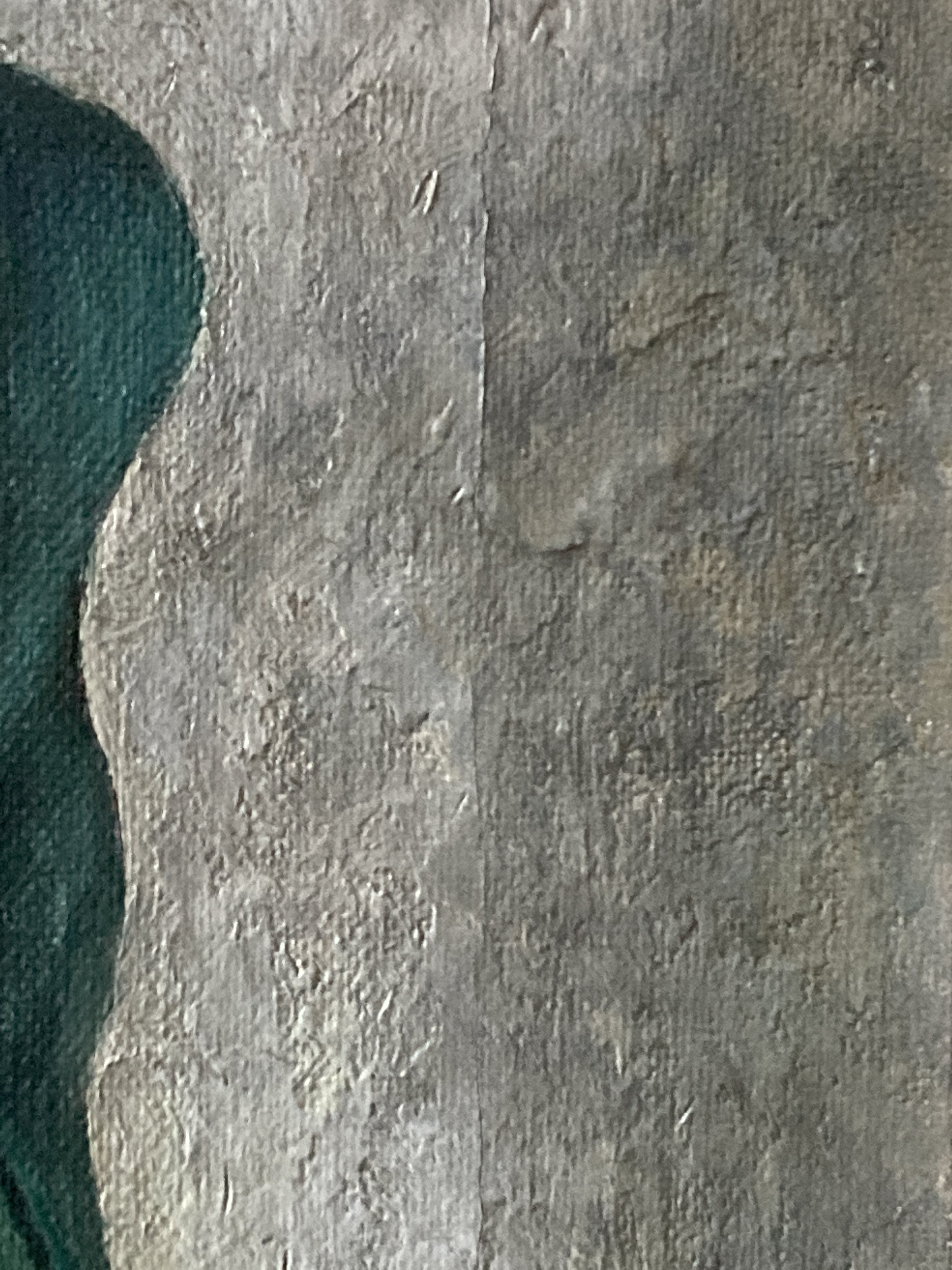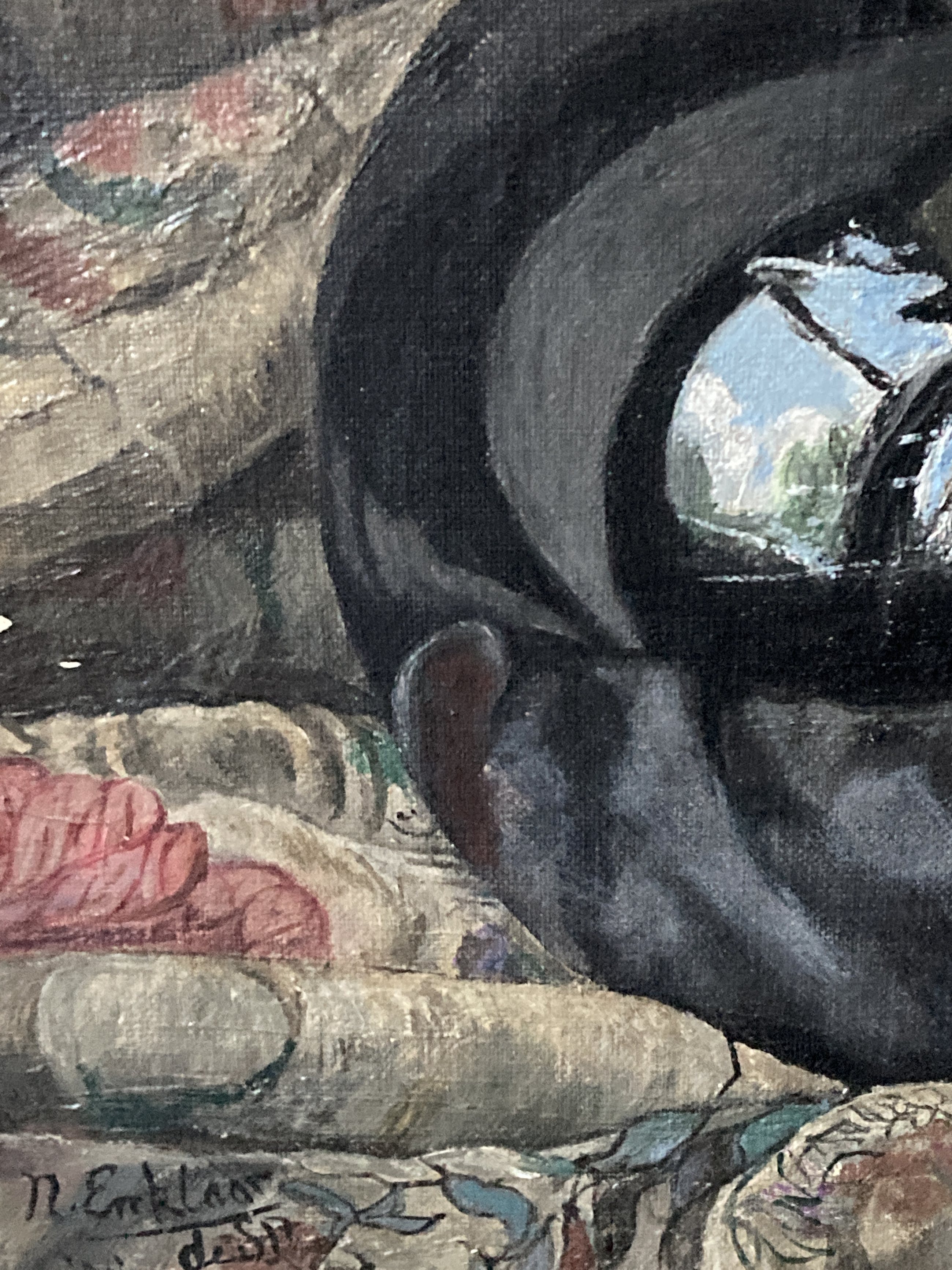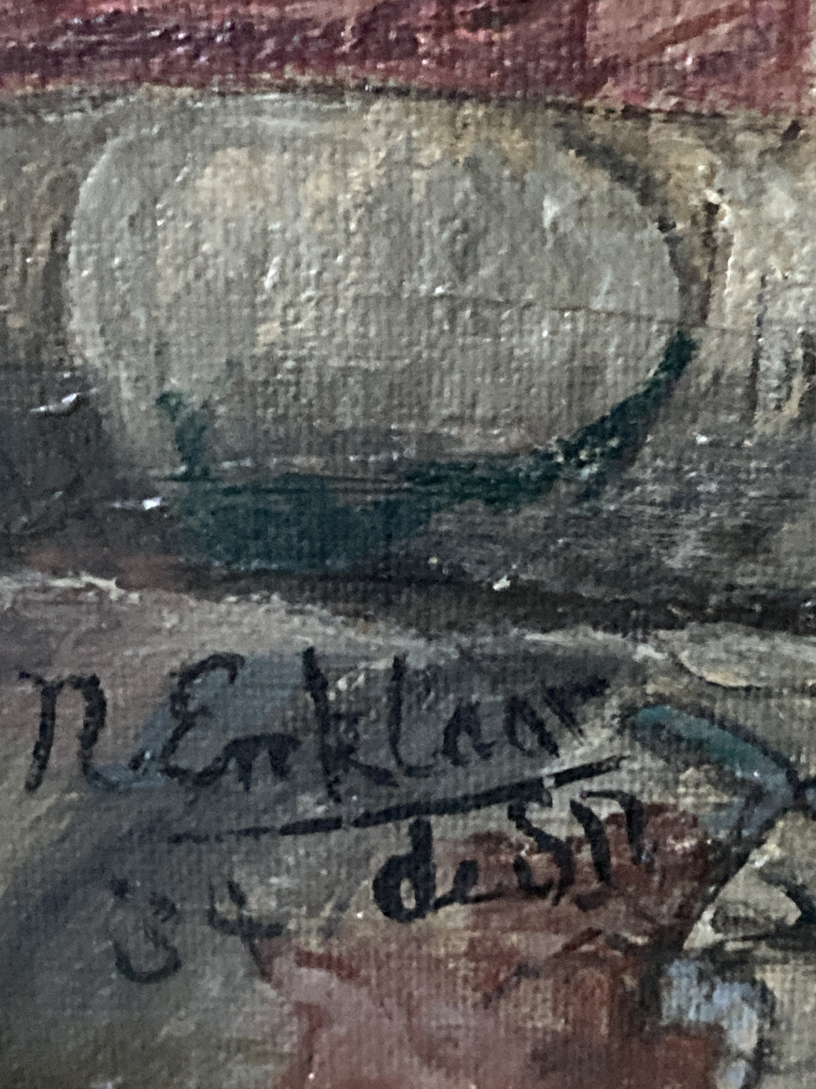 Olieverf op doek in lijst, paar kleine verfschilfers beschadigd. Niet storend
