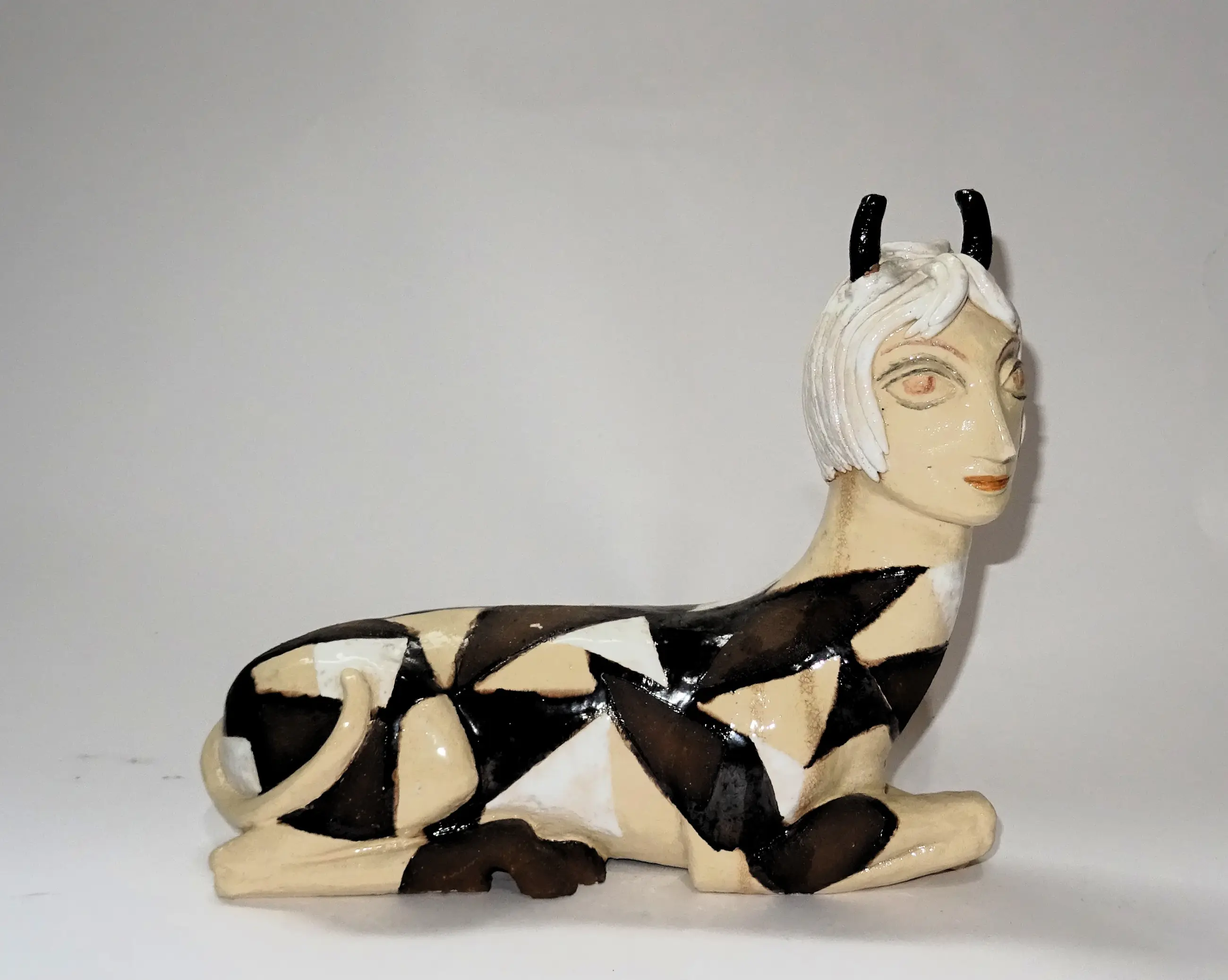 Goede conditie, glazuurchip aan één van de hoorns, zie foto.