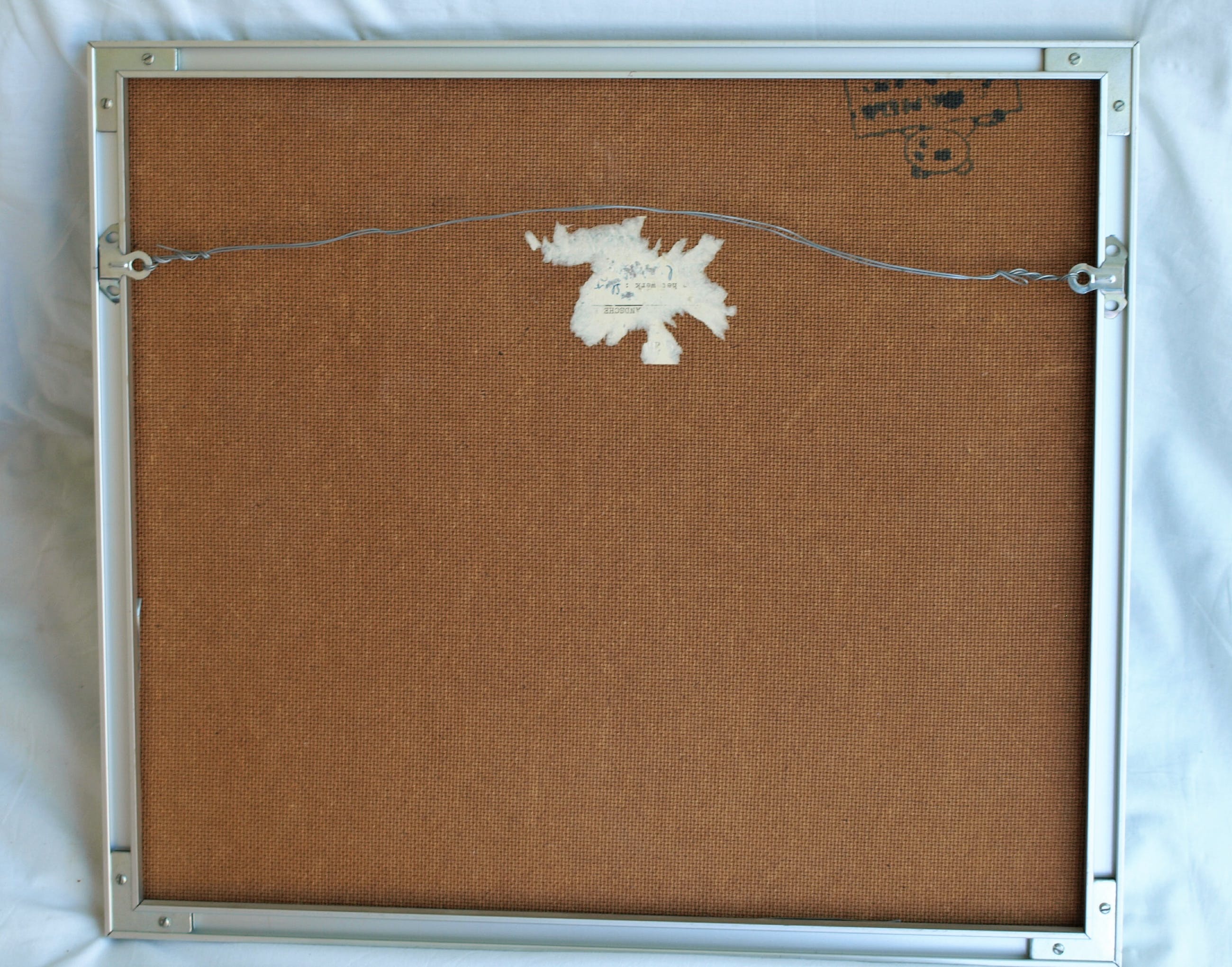 -Het werk is ingelijst in een aluminium lijst met passe-partout en glasplaat.