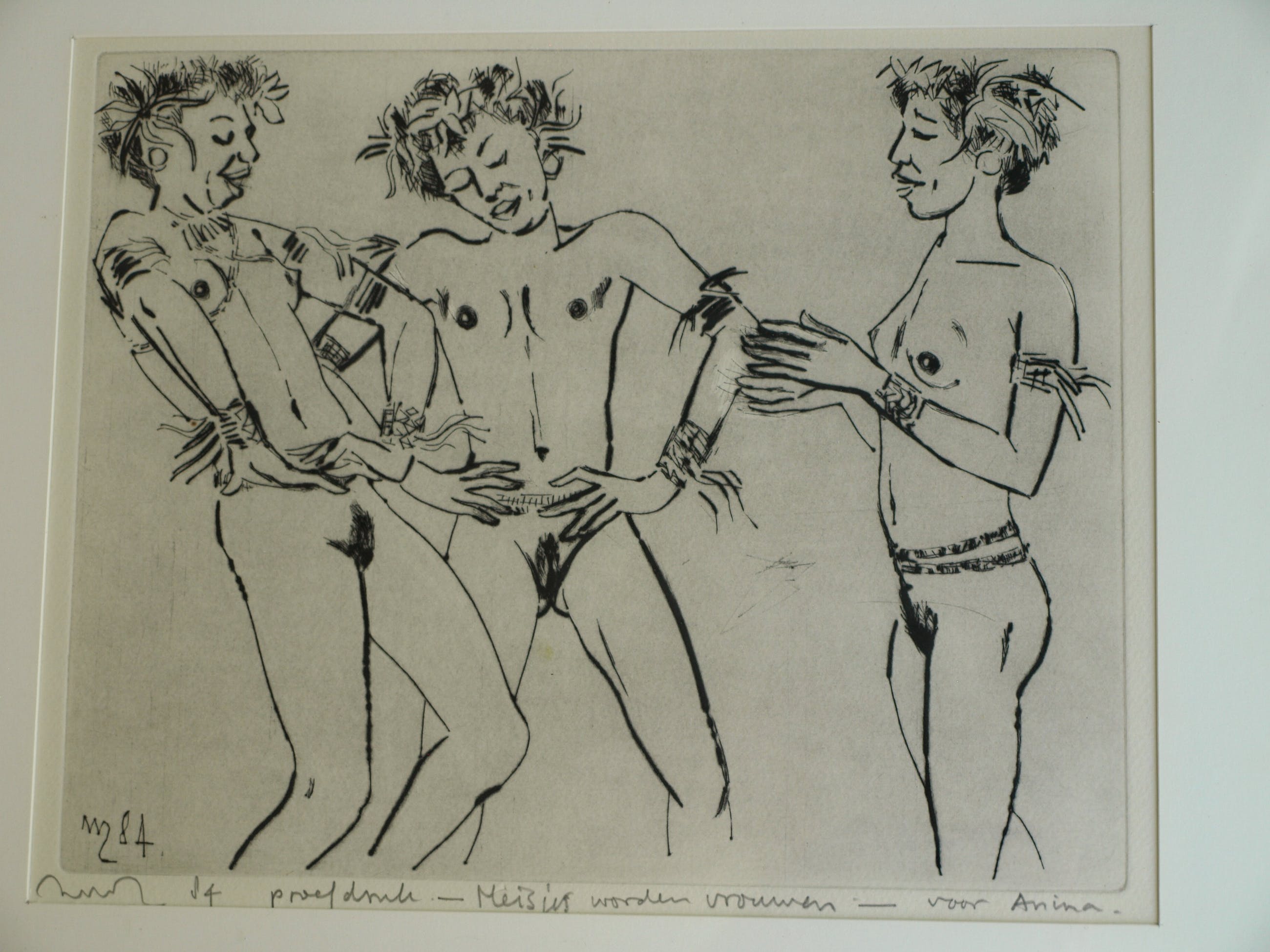 Een ets, droge naald, uit 1984 van de Nederlandse kunstenares Nel Waller Zeper (1934).
