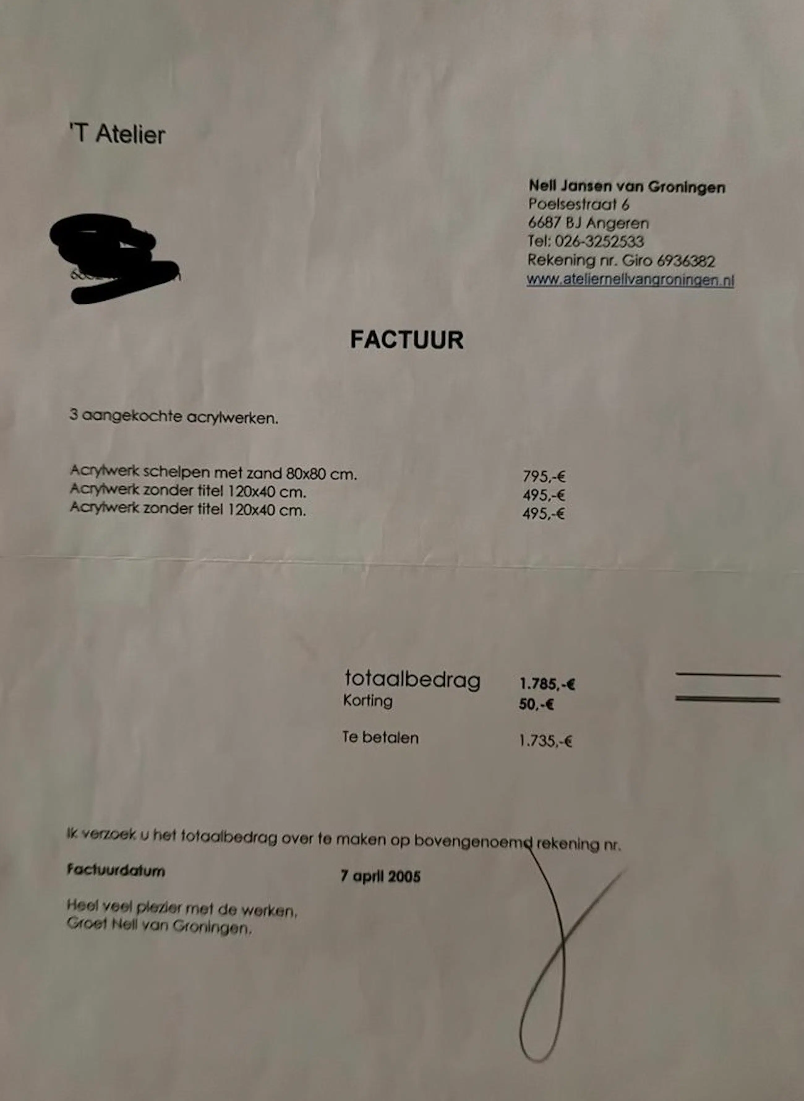 Groot drieluik acryl – Nell van Groningen – factuur aanwezig 2005 (€1735)