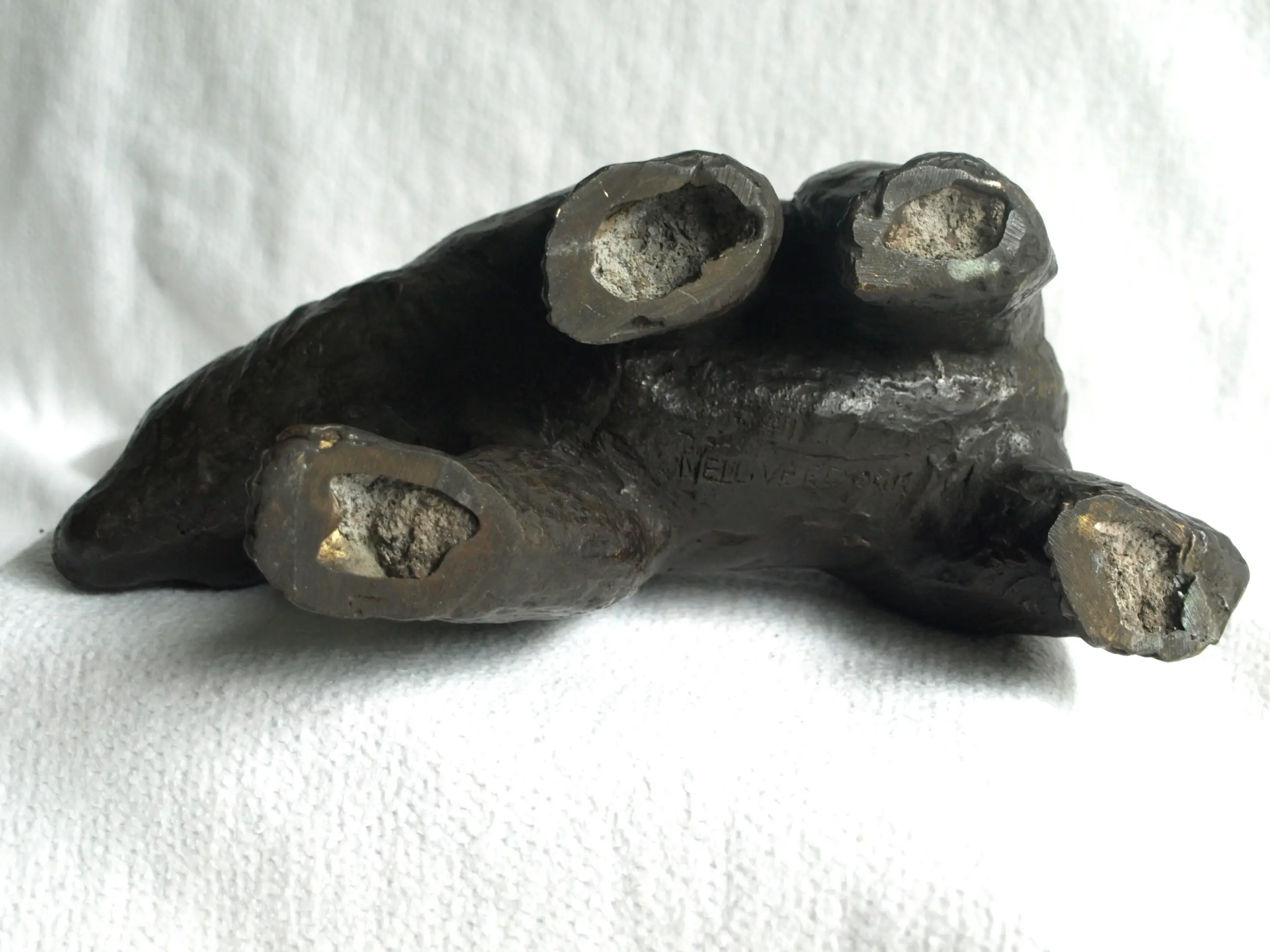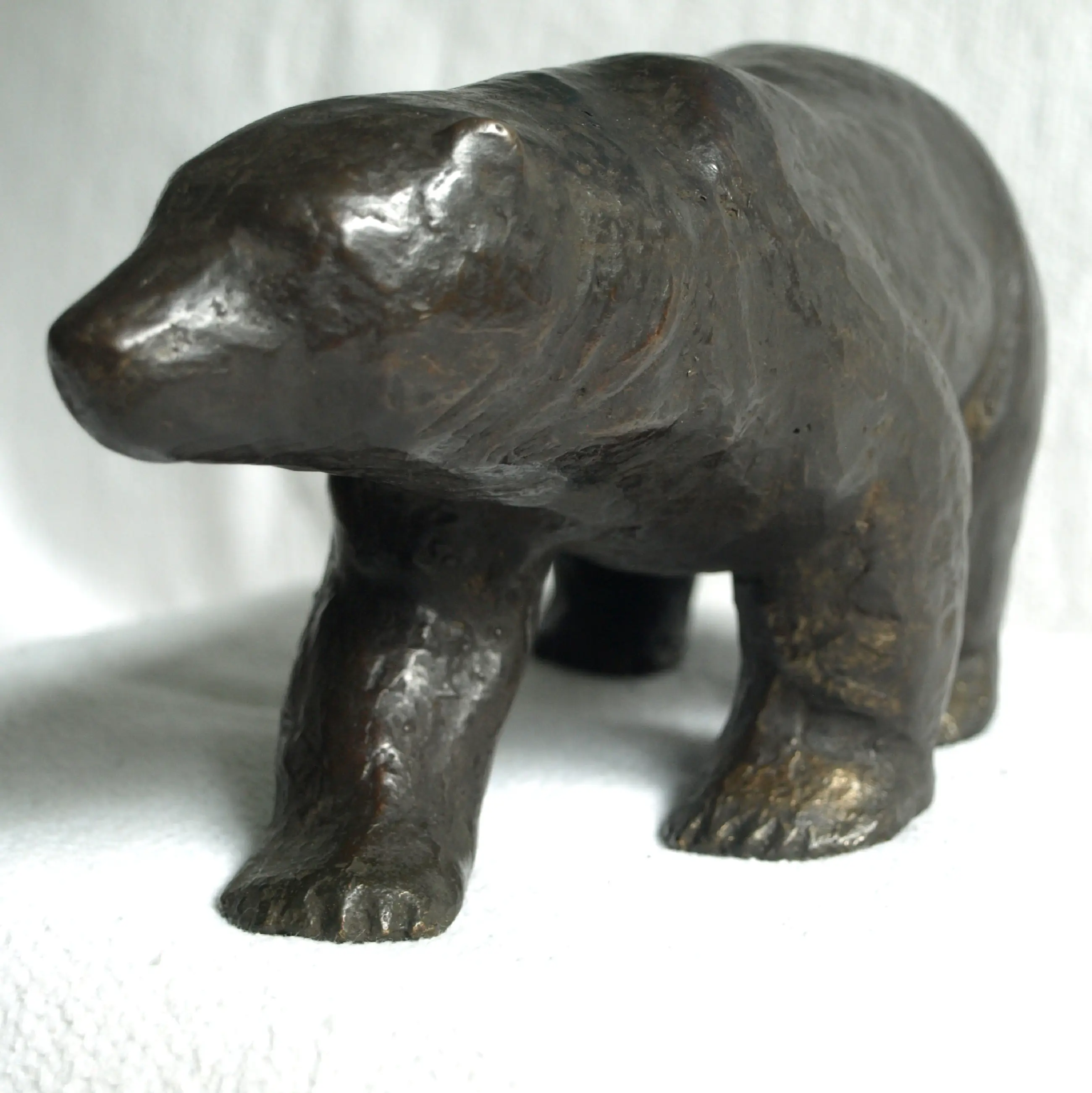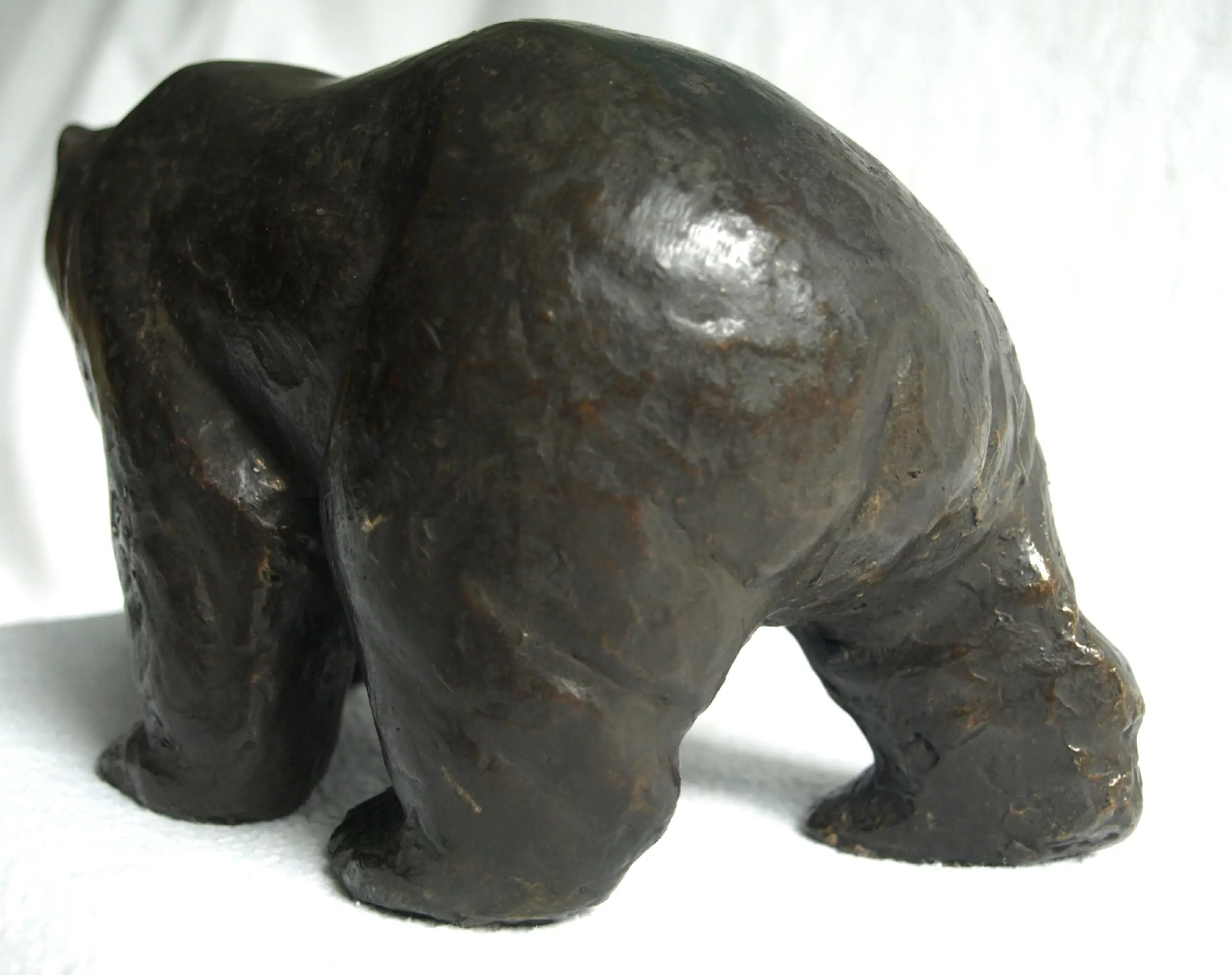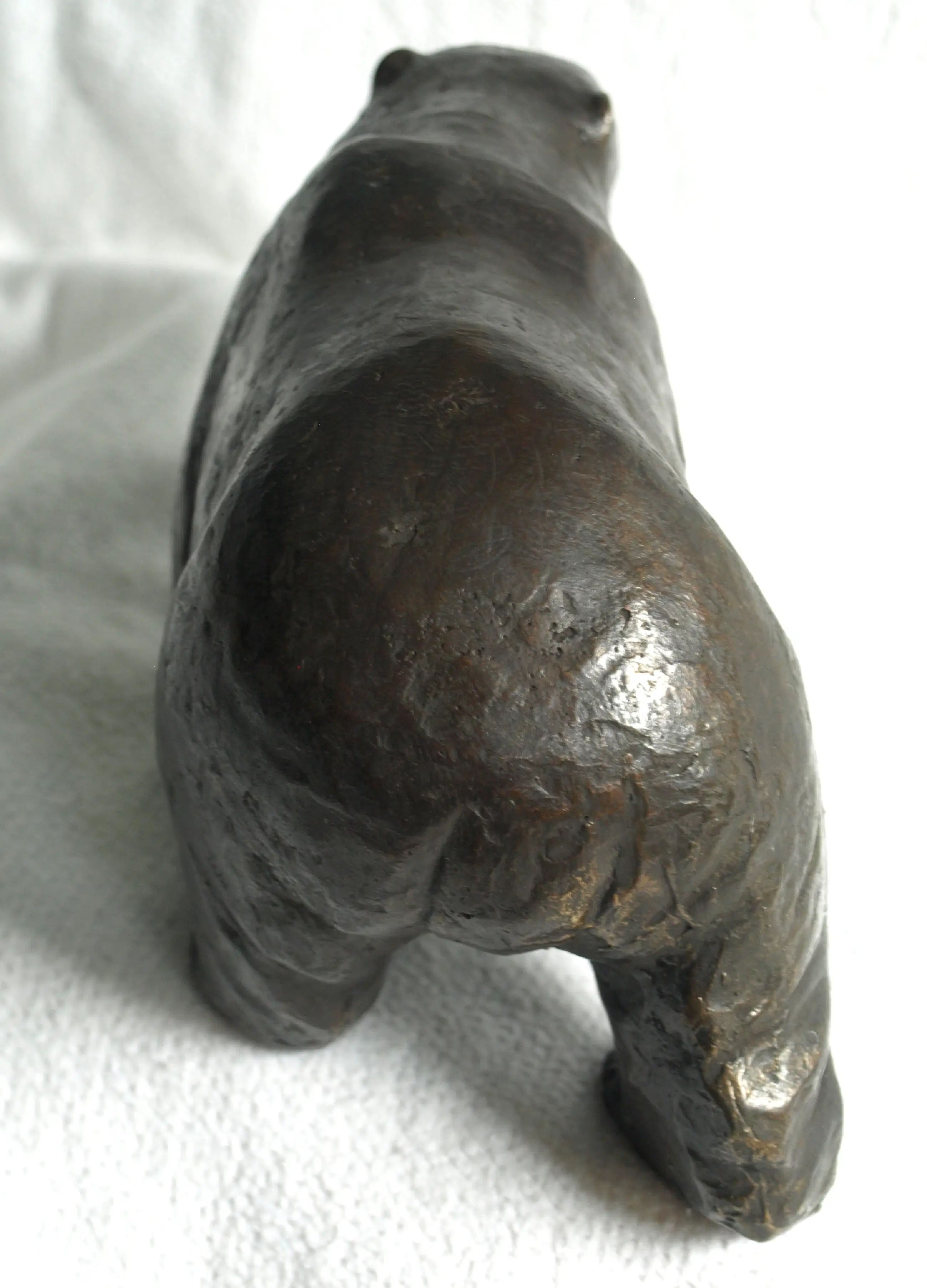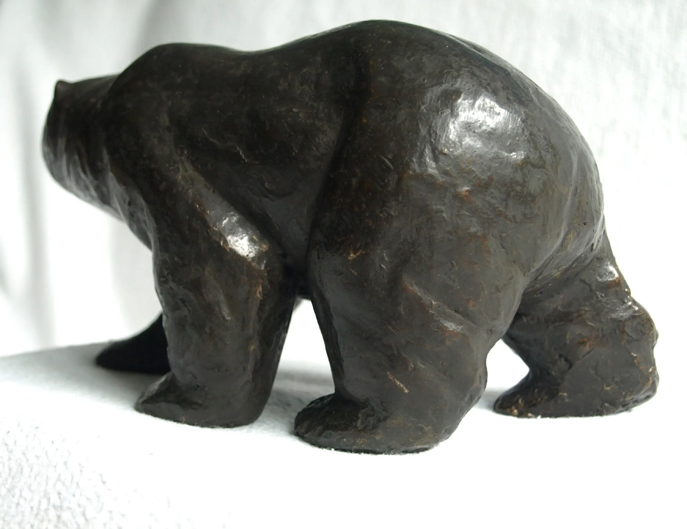 Een bronzen beeld uit 1987 van de, inmiddels 89-jarige, Nederlandse beeldhouwster Nelli Verdonk (1934-), voorstellende ‘een op alle vier poten lopende beer’. Met certificaat (zie de 16e foto; op de foto is de naam van de koper onleesbaar gemaakt i.v.m. de privacy). -Techniek: Ceroplastiek (wasboetseerkunst, geboetseerd in was). -Materiaal: Brons. -Gesigneerd aan de onderkant van het beeld. Ook gesigneerd op het certificaat. -Gemaakt in een oplage van 5, tweede gietsel. -Afmetingen: 11 x 23 x 10 cm (hoogte x breedte x diepte). -Gewicht: 2529 gram. -Herkomst: Uit een inboedel. -Conditie: In zeer goede staat. Met een certificaat dat is gemaakt en gesigneerd door Nelli Verdonk. Zie ook de foto’s voor een eigen indruk.