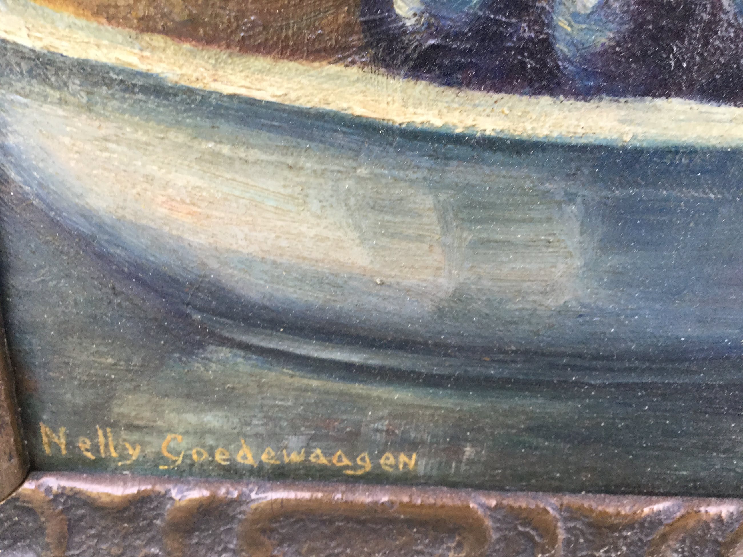 | Het werk bevat oppervlaktevuil en verkleurde vernis door de tijd, lijst bevat oppervlaktevuil en slijtschade door de tijd. | |