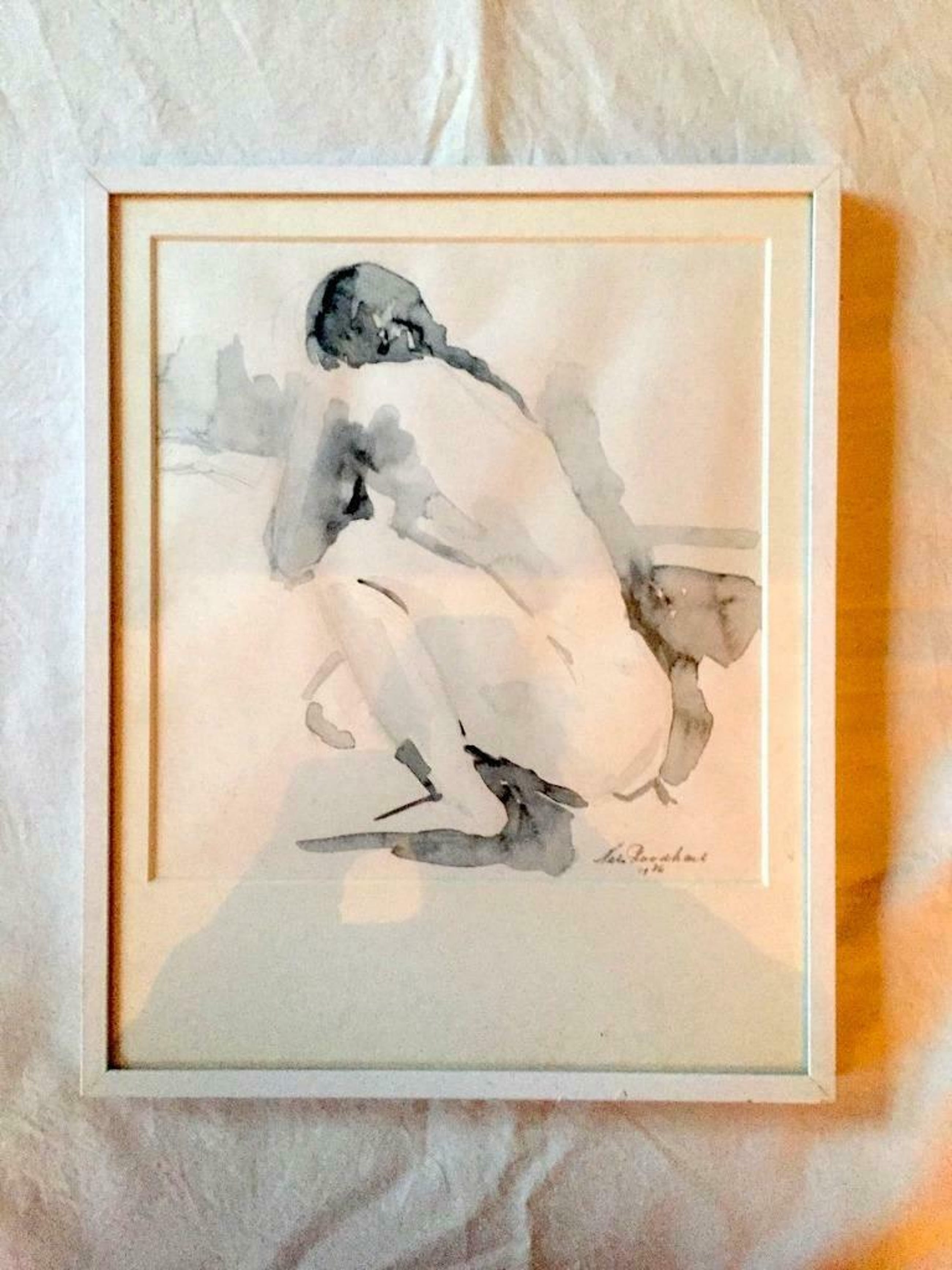 JC444 5 Nels Bock - Roodhart Naakte dame Aquarel 1986 31 x 25,5 cm