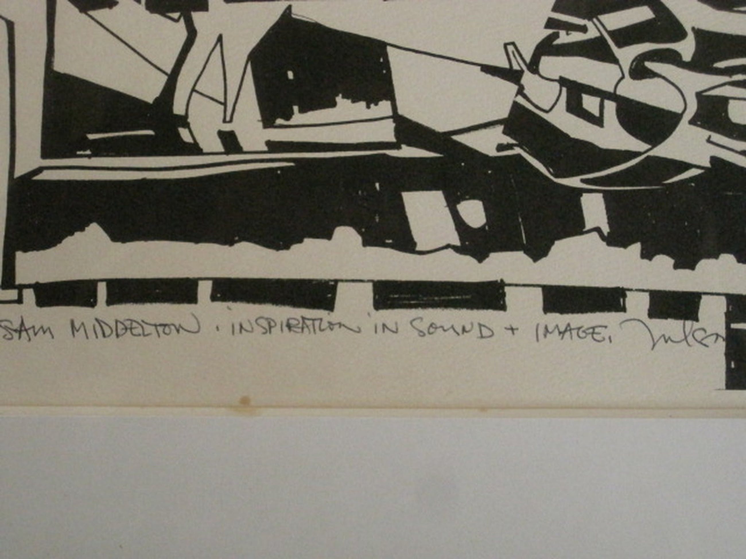 Gesigneerd : rechtsonder met persoonlijke opdracht aan Sam Middleton (1928-2015)