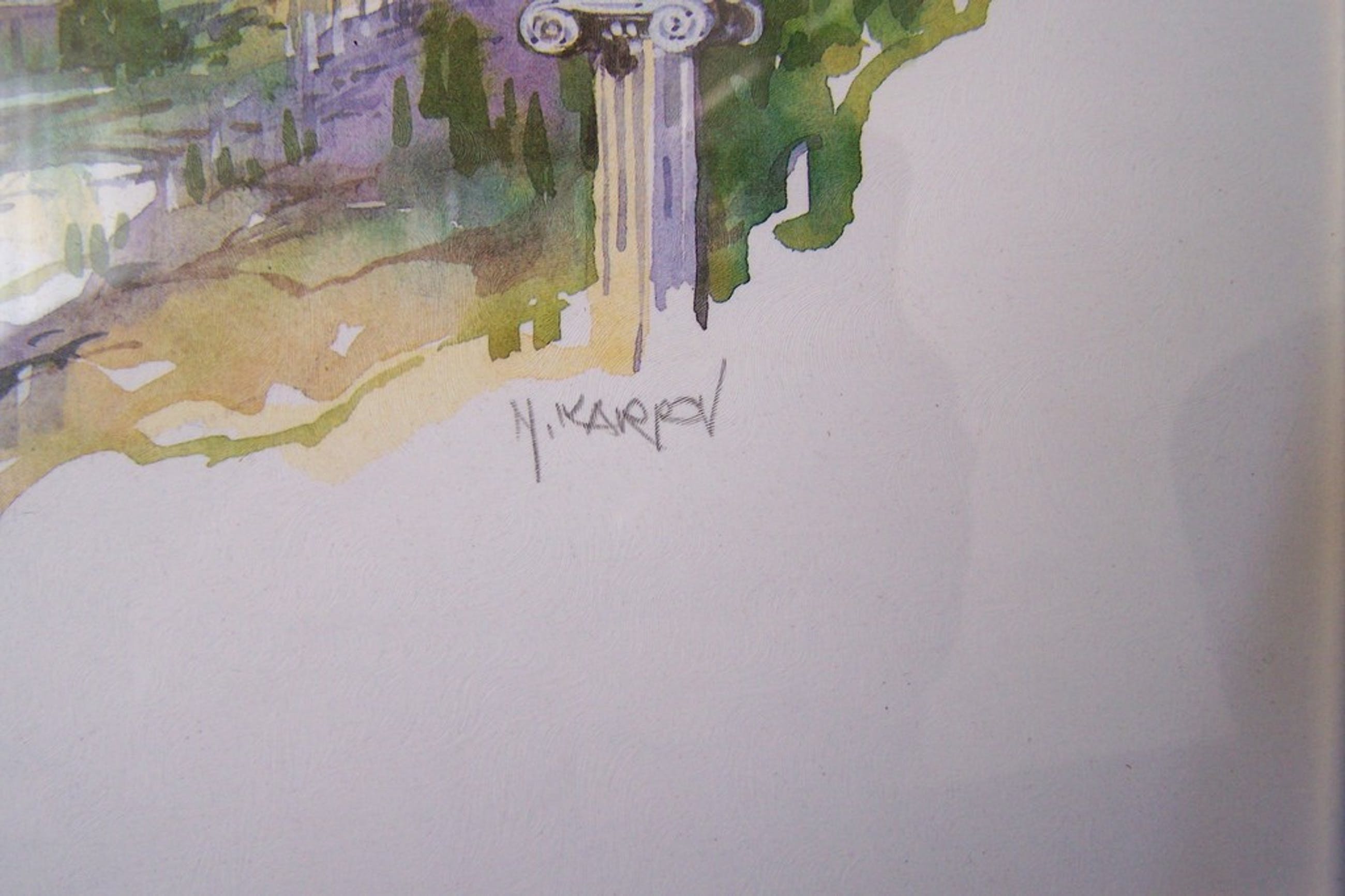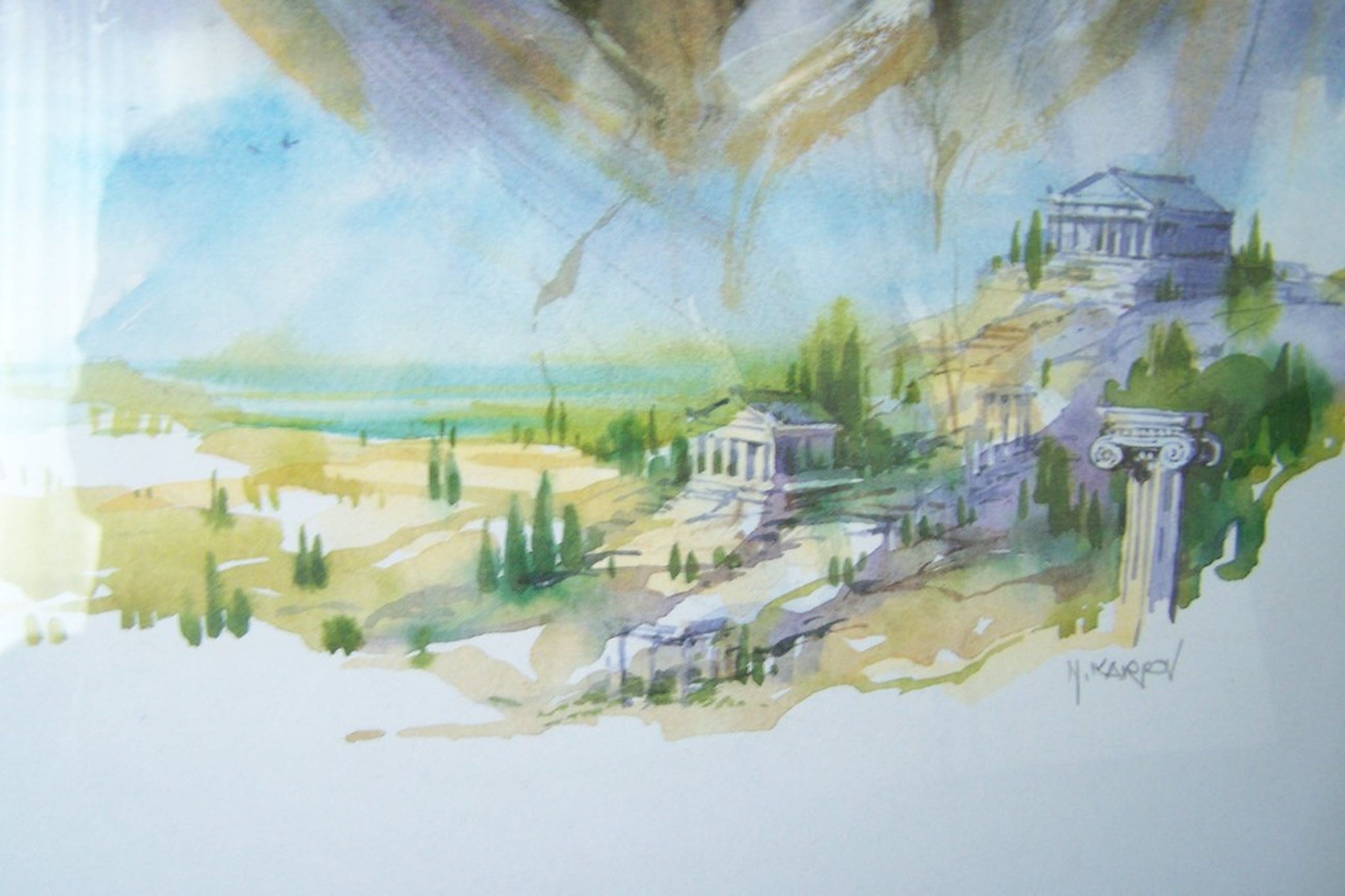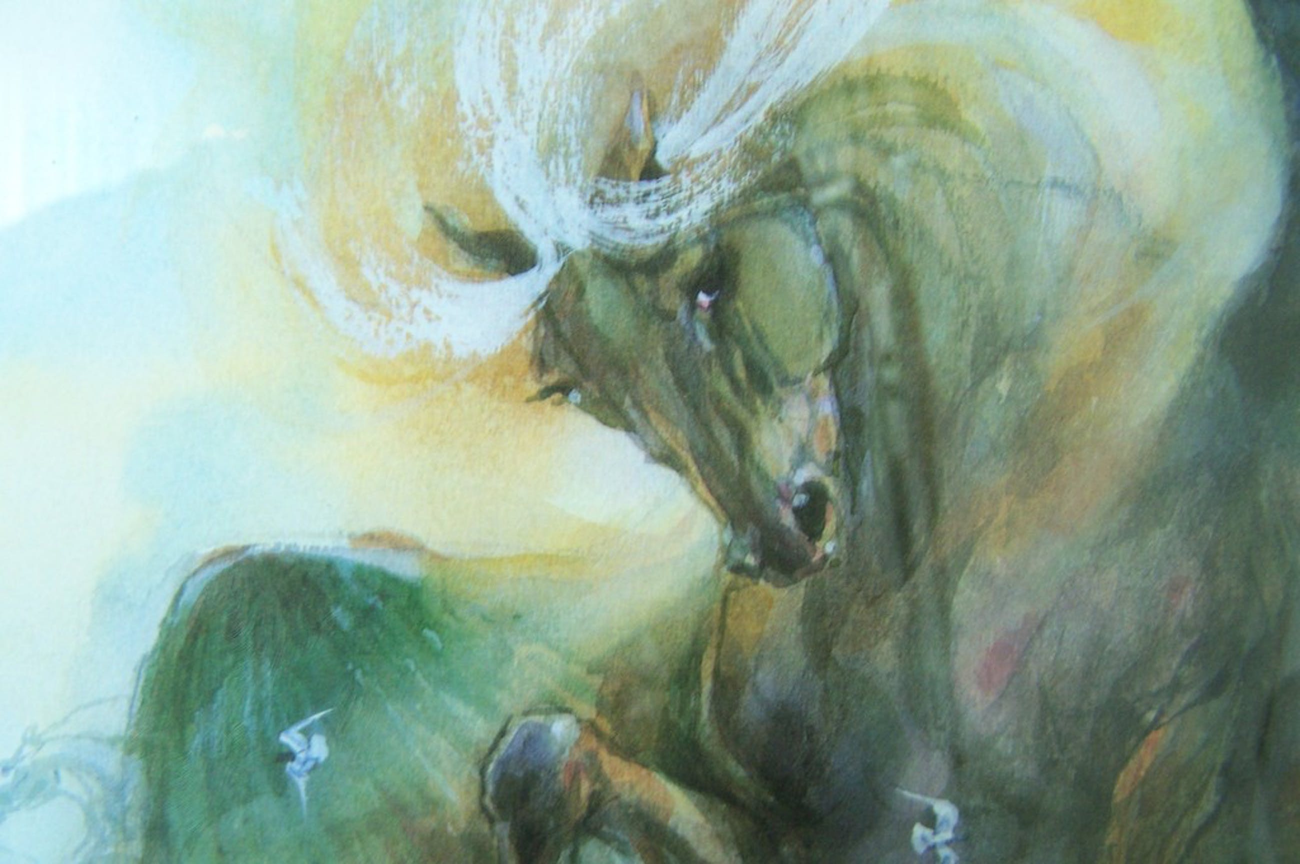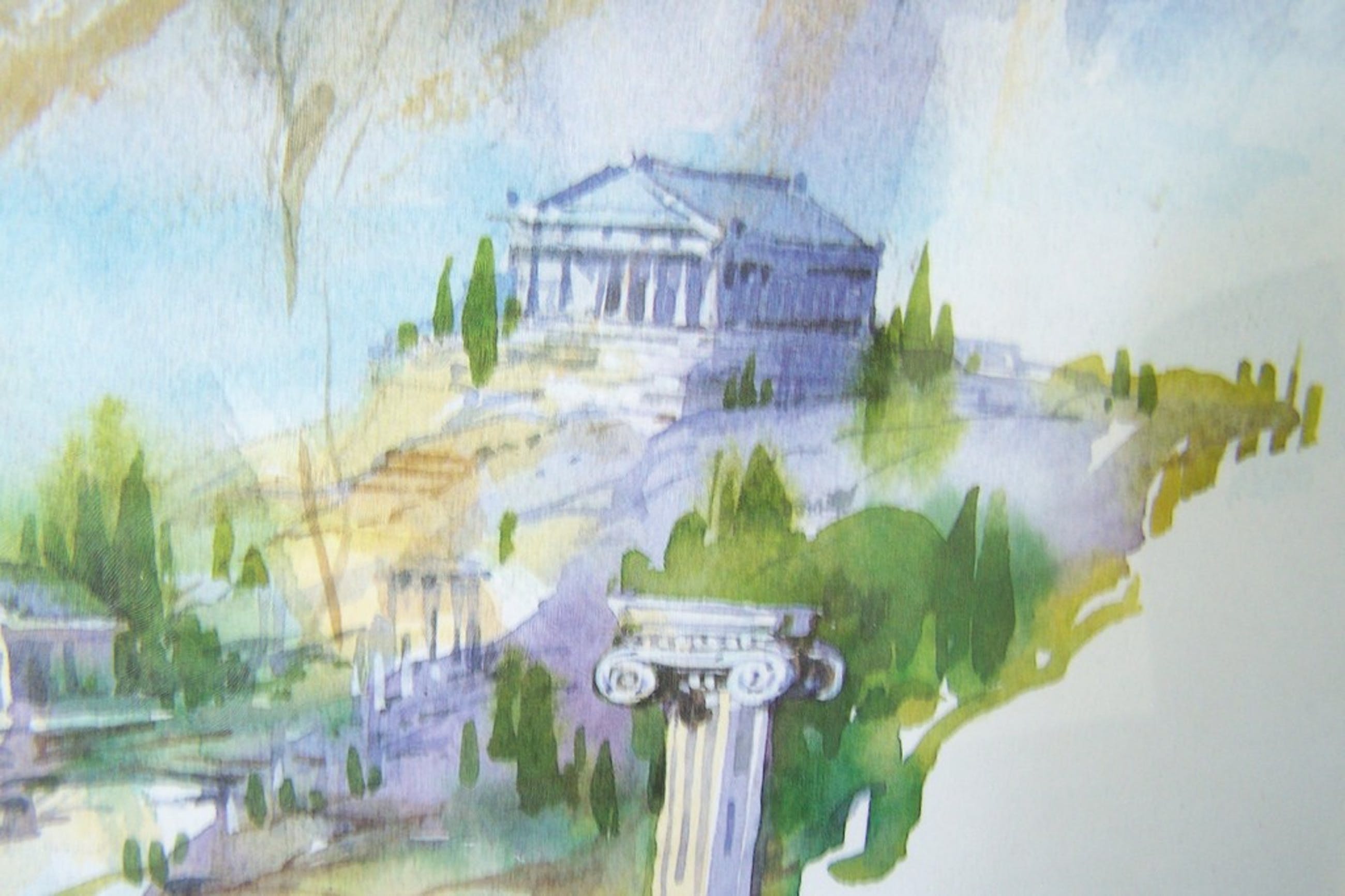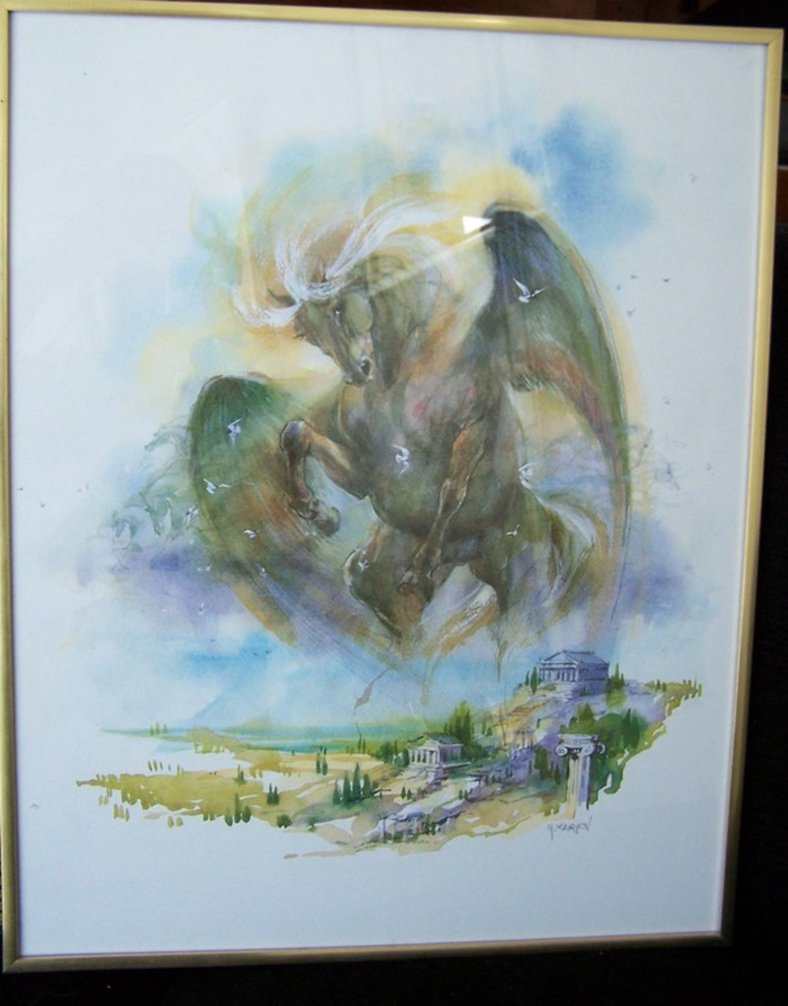 Zeefdruk - ongenummerd - allegorische voorstelling ( Vliegend paard boven Grieks landschap)
