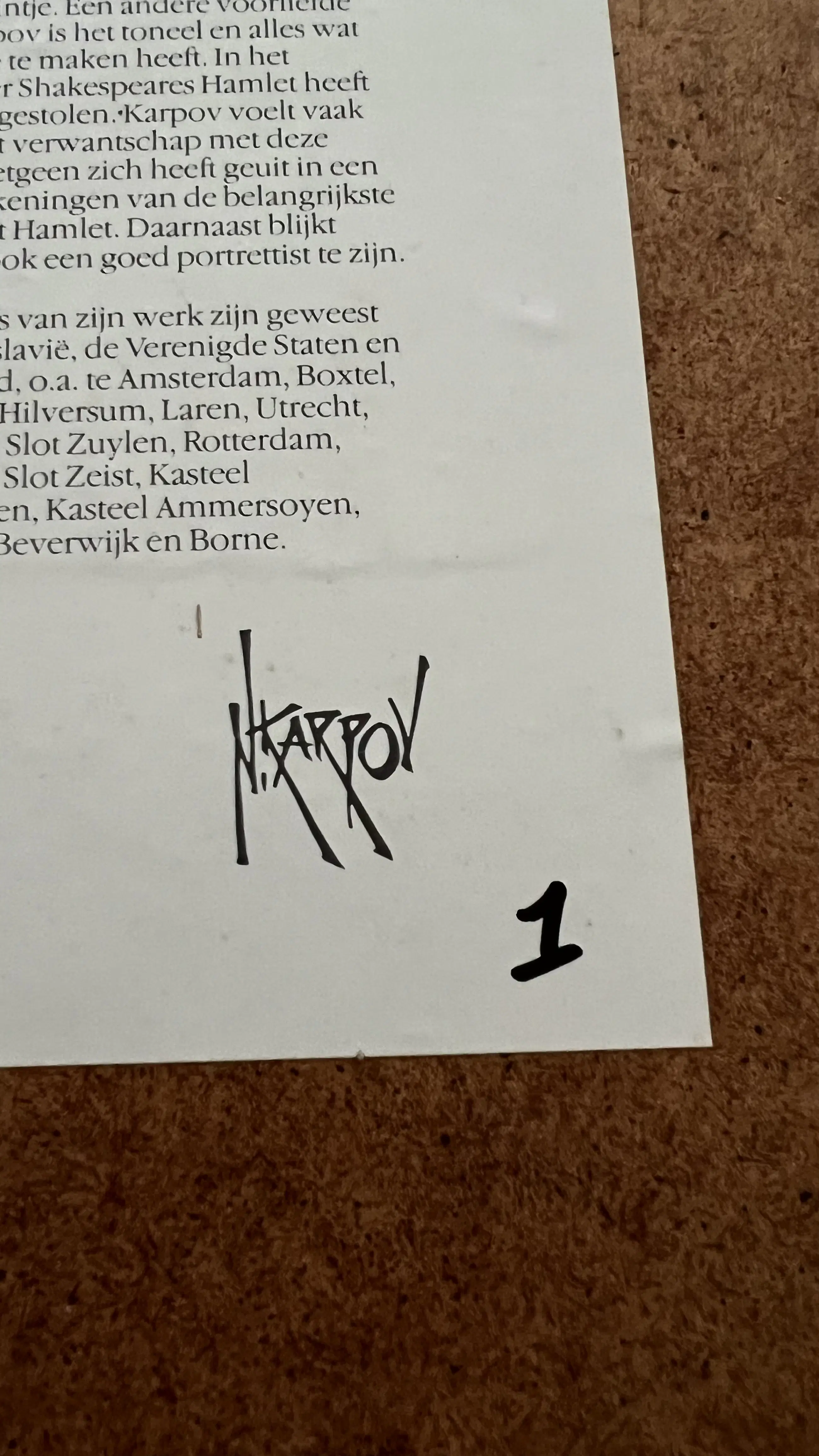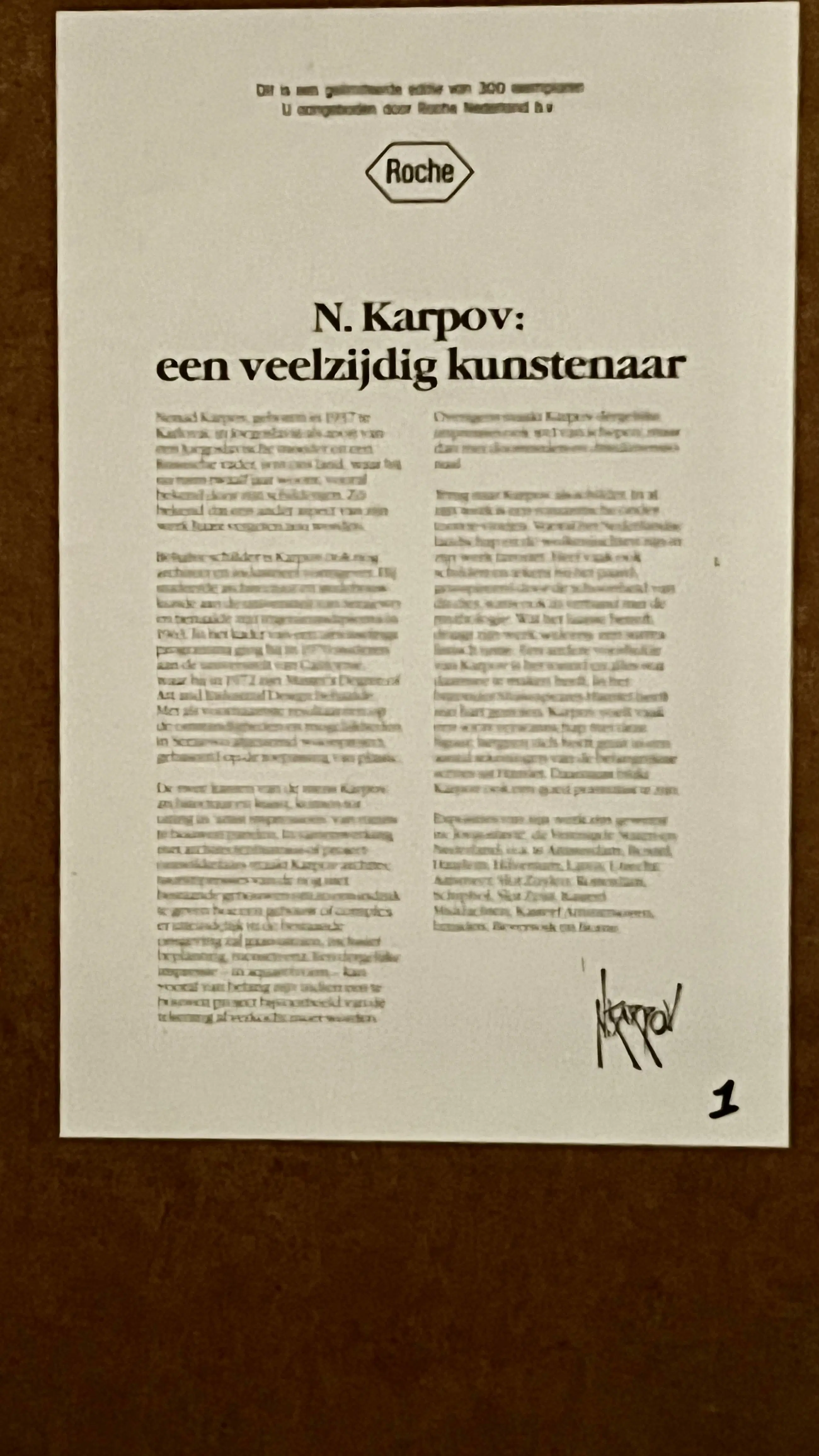 Nenad Karpov geboren in Joegoslavië in 1937 Dit is een gelimiteerde editie van 300 exemplaren Dit is de eerste druk Een relatie geschenk van La Roche Nederland B.v.