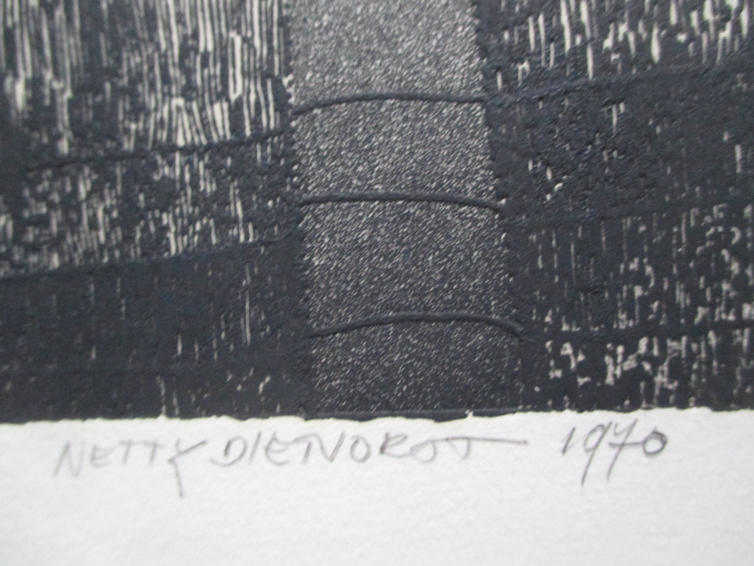 Fraaie ets van netty Dietvorst, gesigneerd, gedateerd en genummerd in potlood. Verzending tussen twee platen, 8,25, aangetekend 10,20