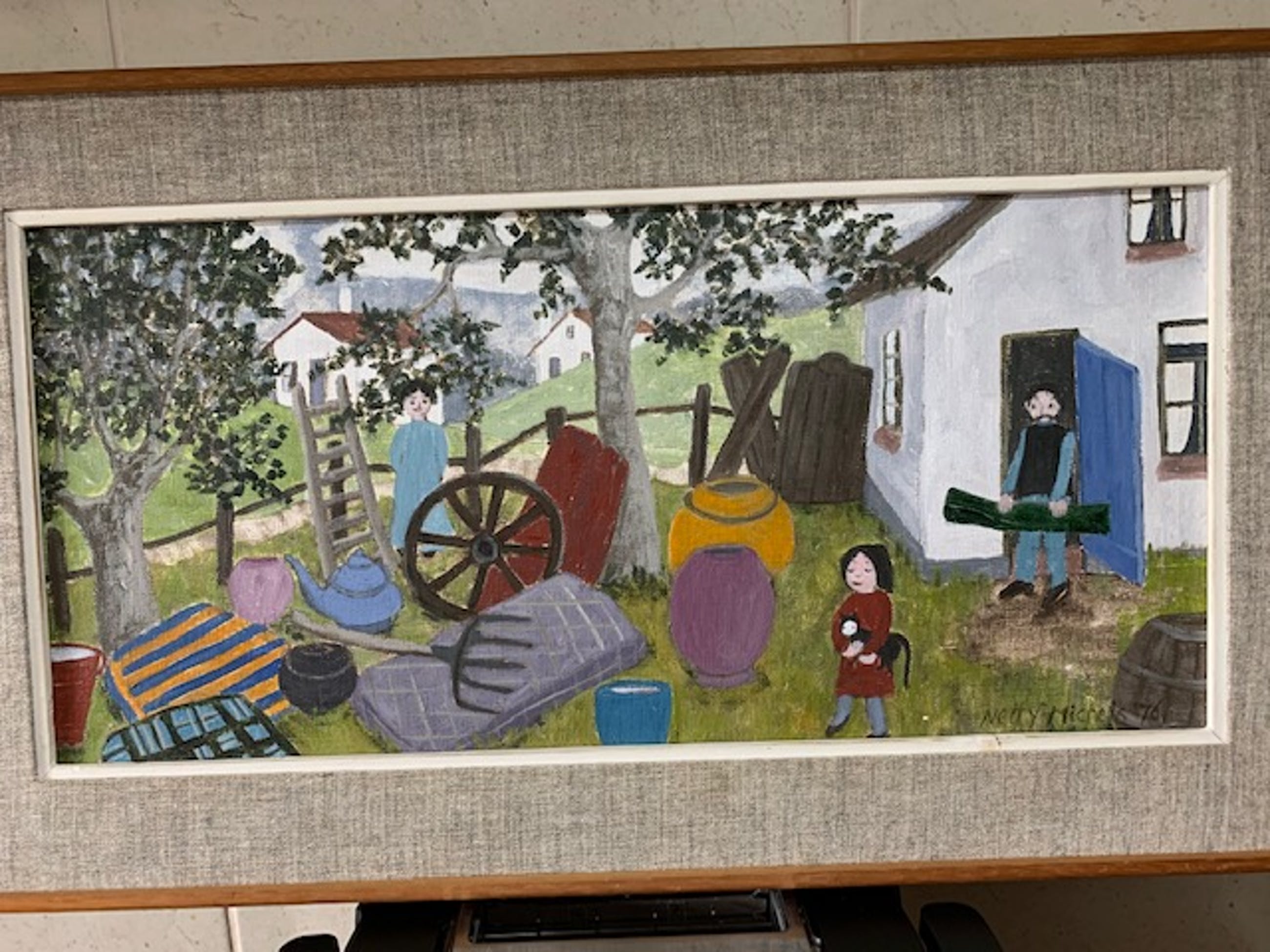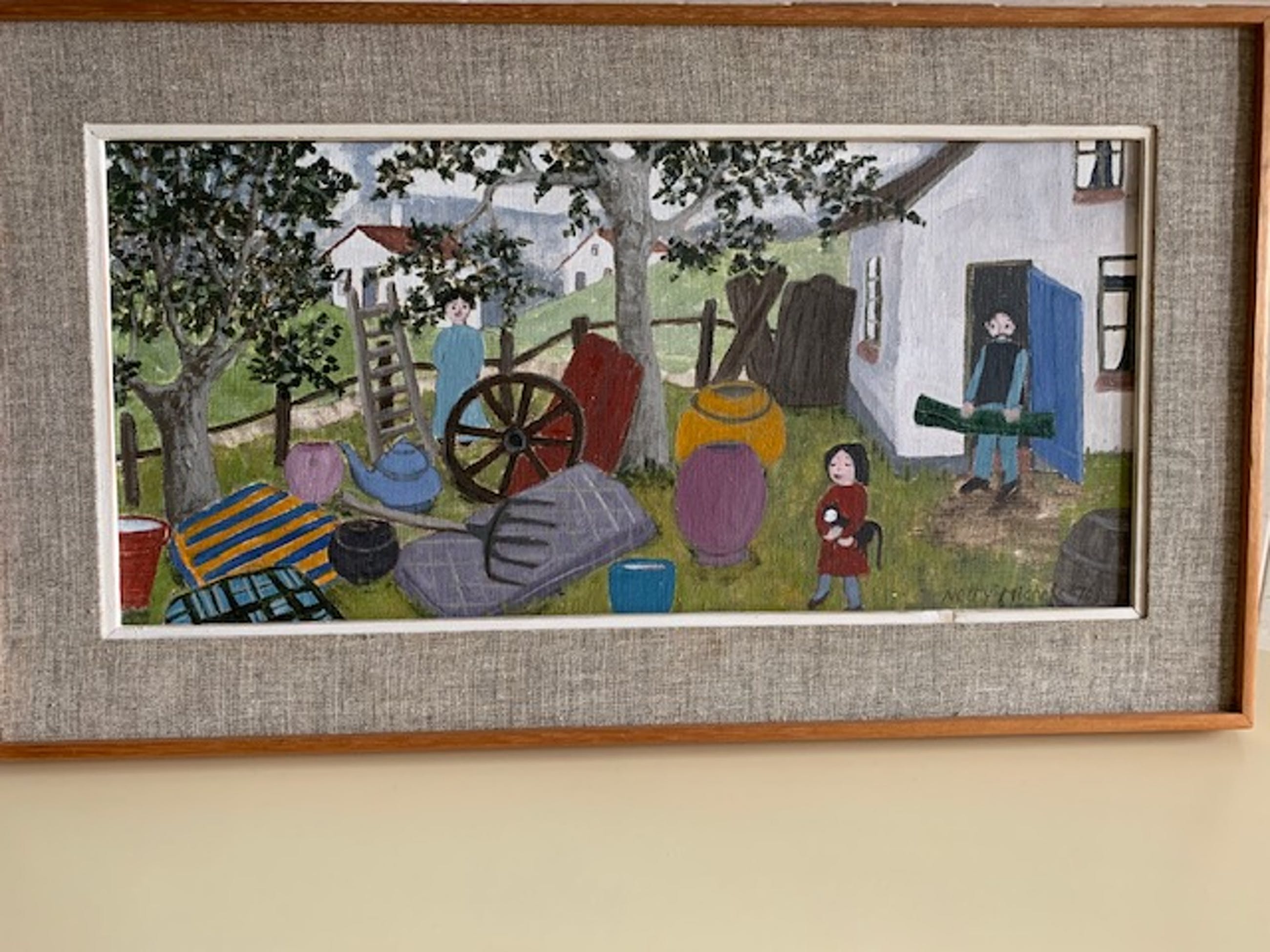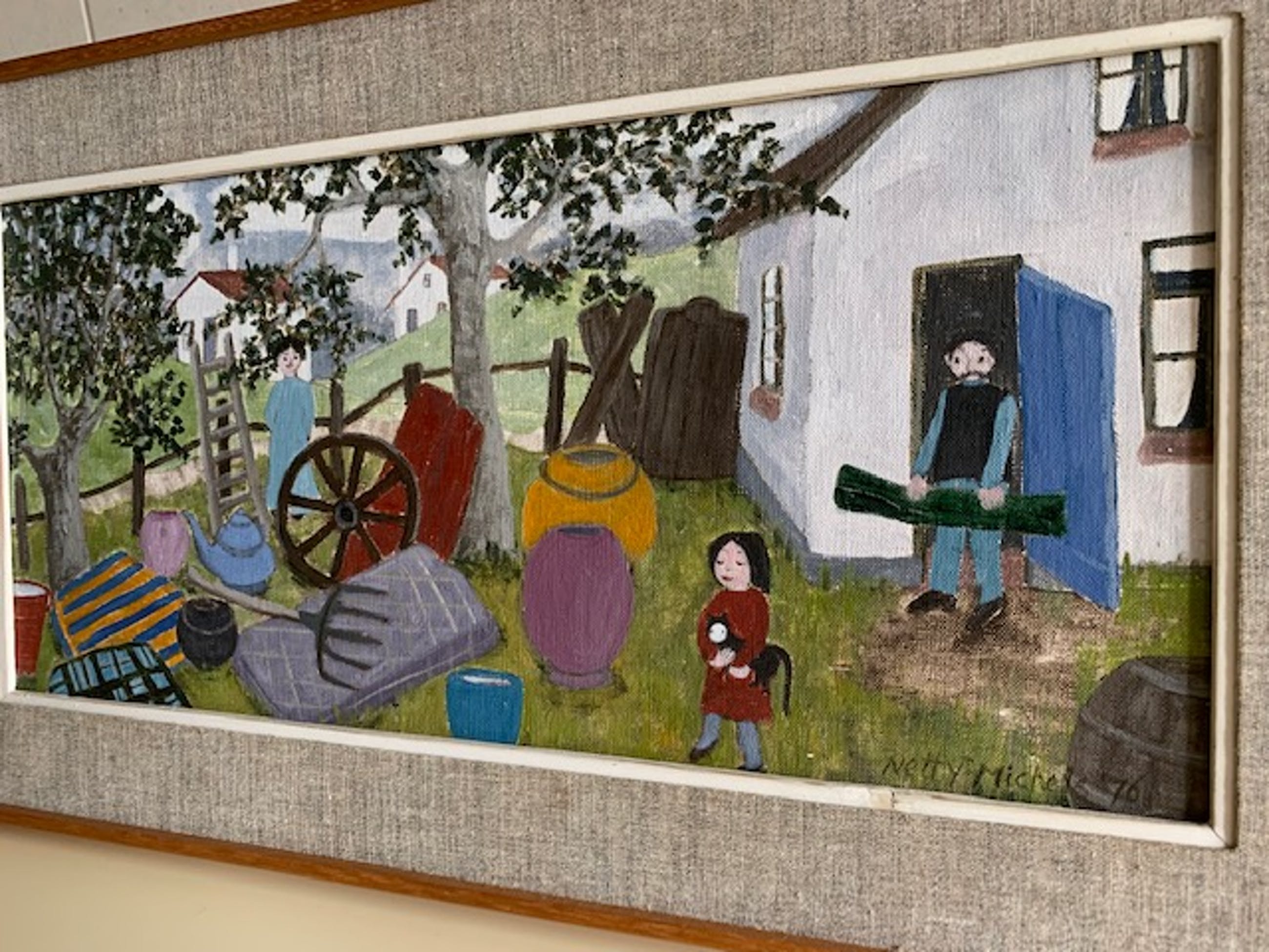 Olieverf op linnen uit 1976 met lijst 61 bij 35 cm goede staat . Michels , Netty vrouw van Harry Maas geboren in 1919 in de gelderse achterhoek .