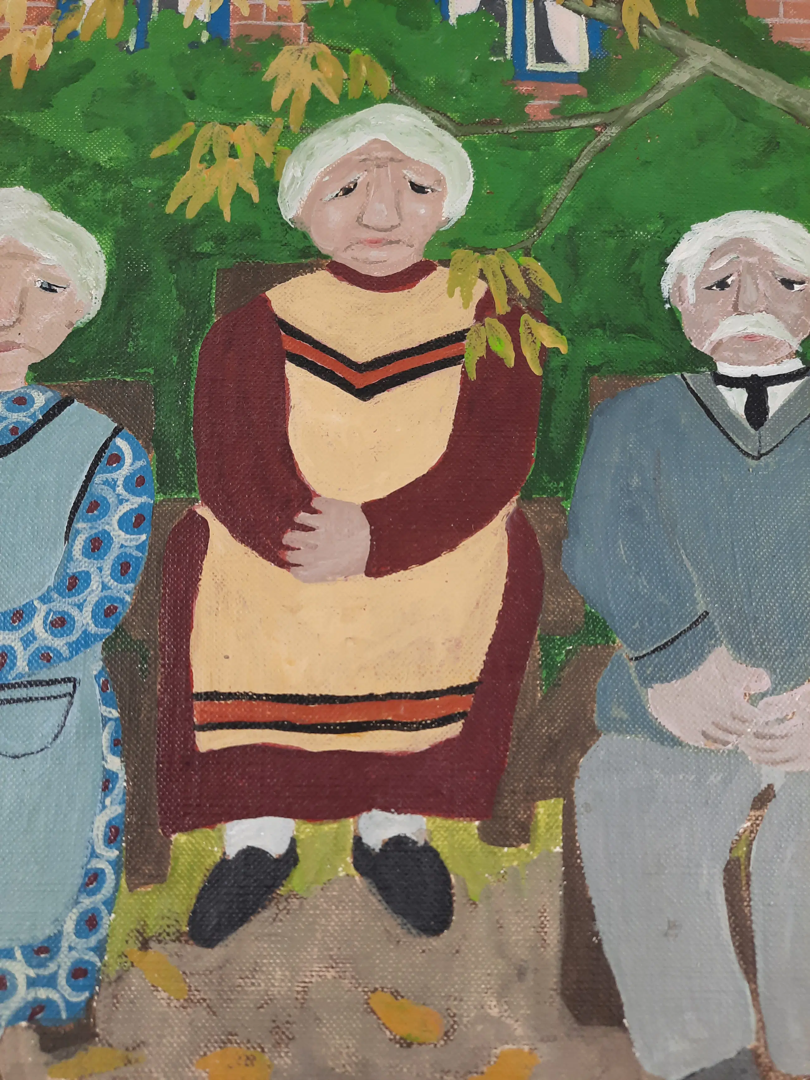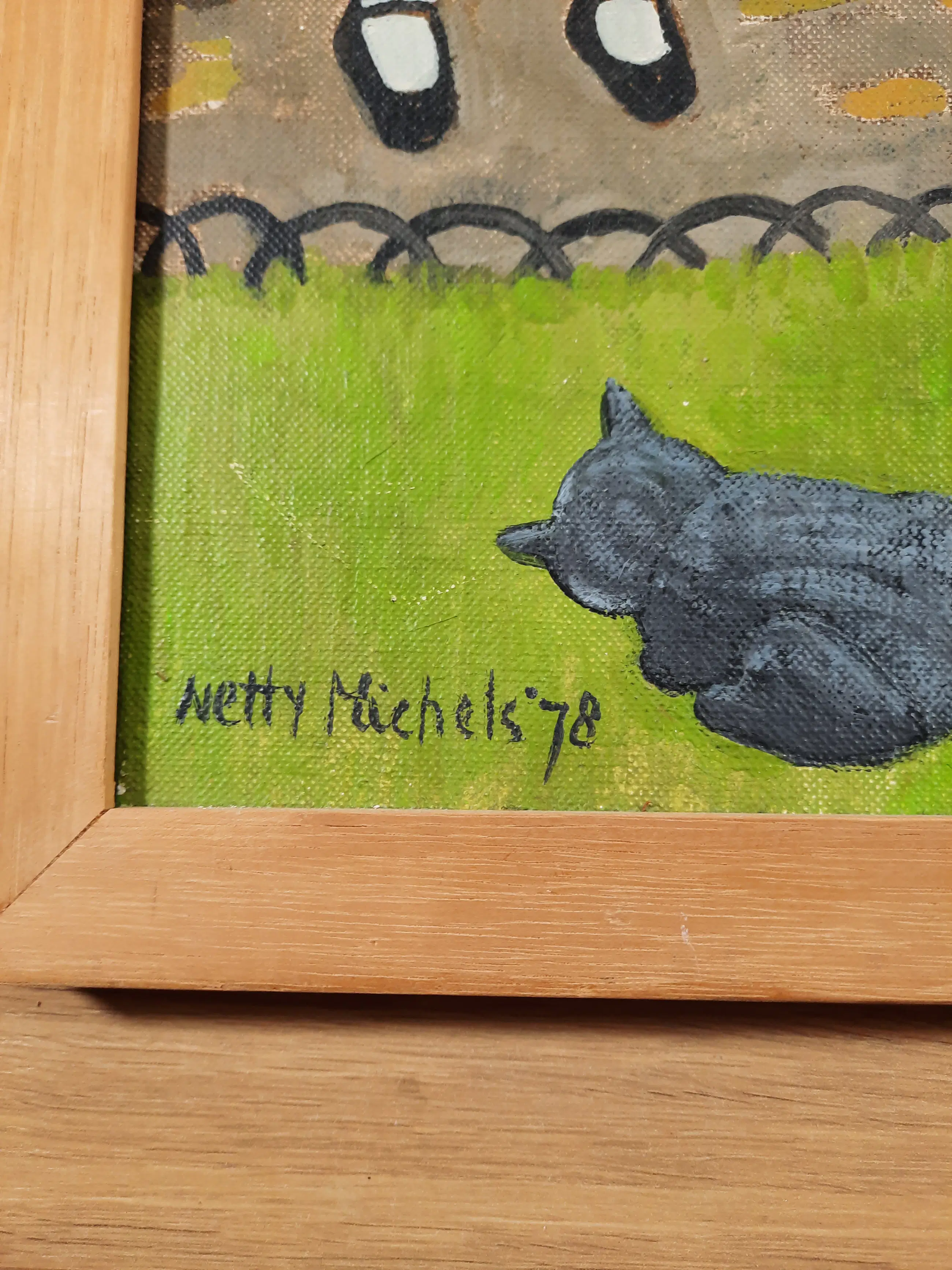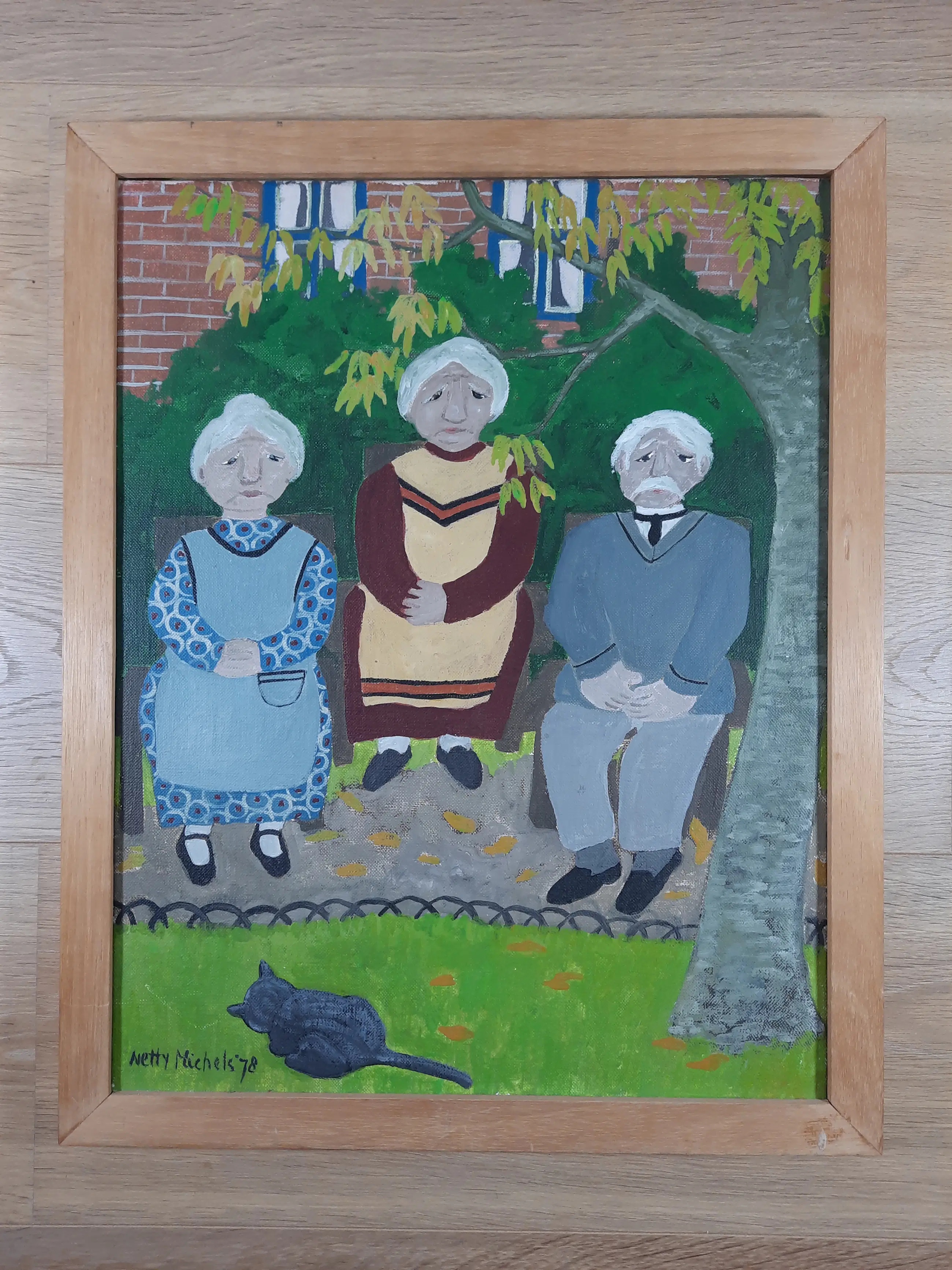Netty Maas Michels - Zij hadden hun schaapjes op het droge 1978 Olieverf op doek Ingelijst in houten frame, zonder glas