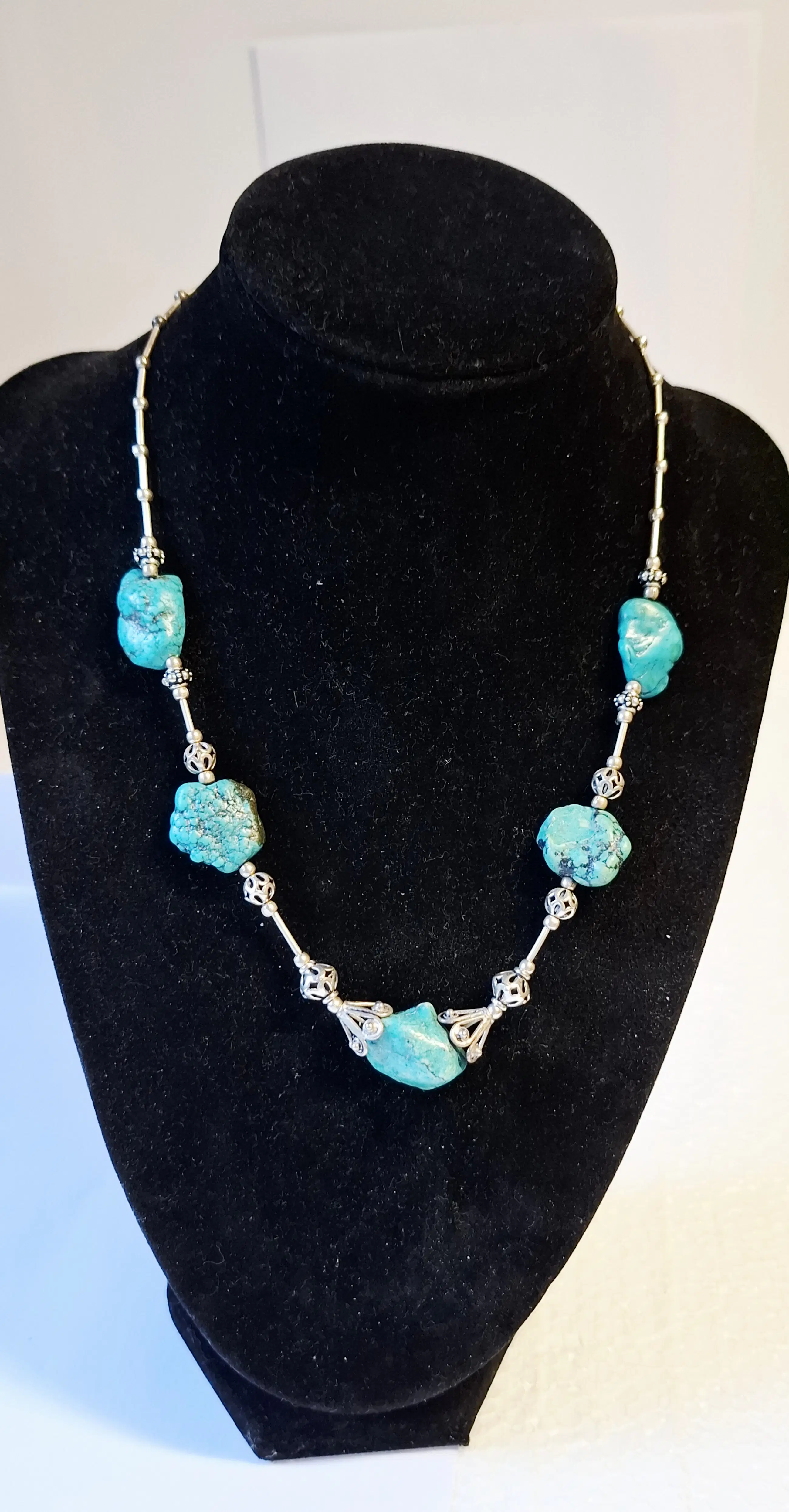Grote ruwe turquoise stenen ketting, circa 1980 Moederdagcadeau, verjaardagsketting december.