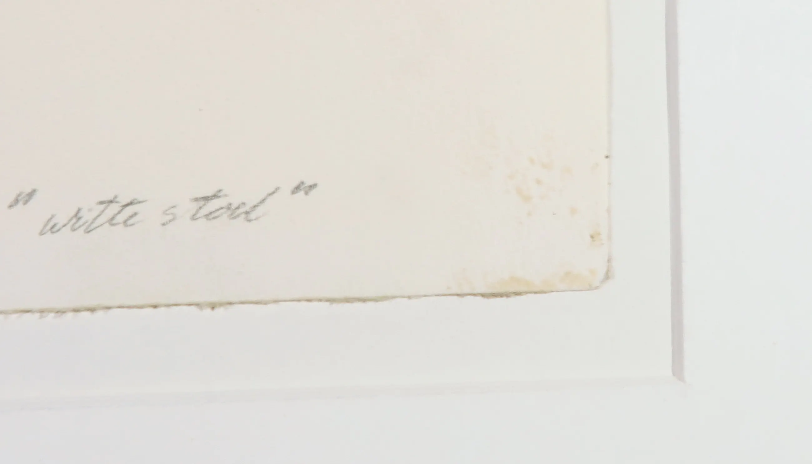 Passe-partout/lijsten: Beschadigingen aan lijsten worden niet beschreven. Indien een werk achter glas is ingelijst en het glas kapot is, zal dit wel vermeld worden. Passe-partouts worden op geen enkele manier gegarandeerd en ook niet altijd meegezonden.
