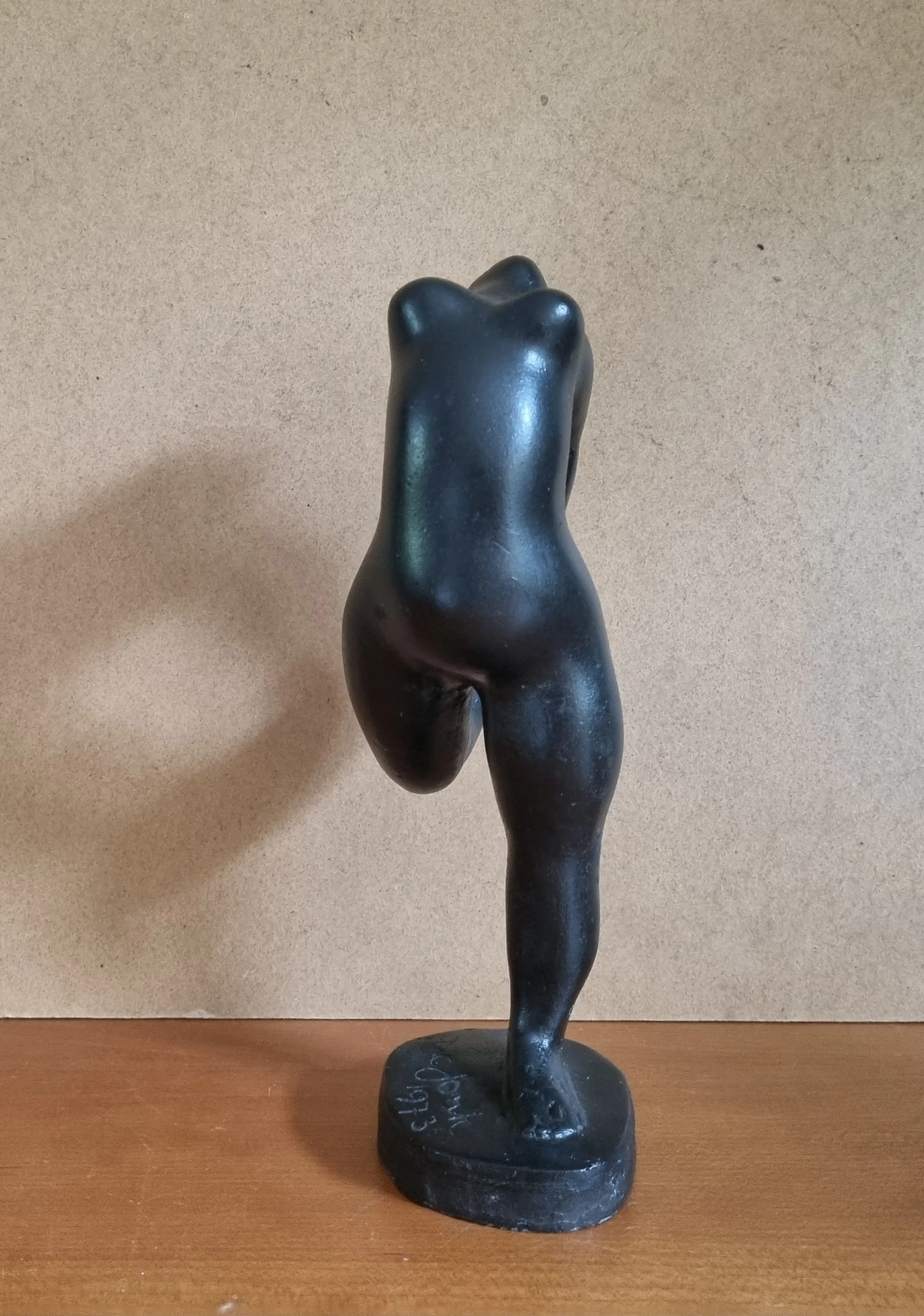 Beeld dat op mooie wijze Jonk's voorliefde voor vrouwen, ballet en gymnastiek tot uitdrukking brengt. Ik ben niet zeker over het materiaal. Gepatineerd, zou een soort van gips maar ook keramiek kunnen zijn. In ieder geval geen kunststof