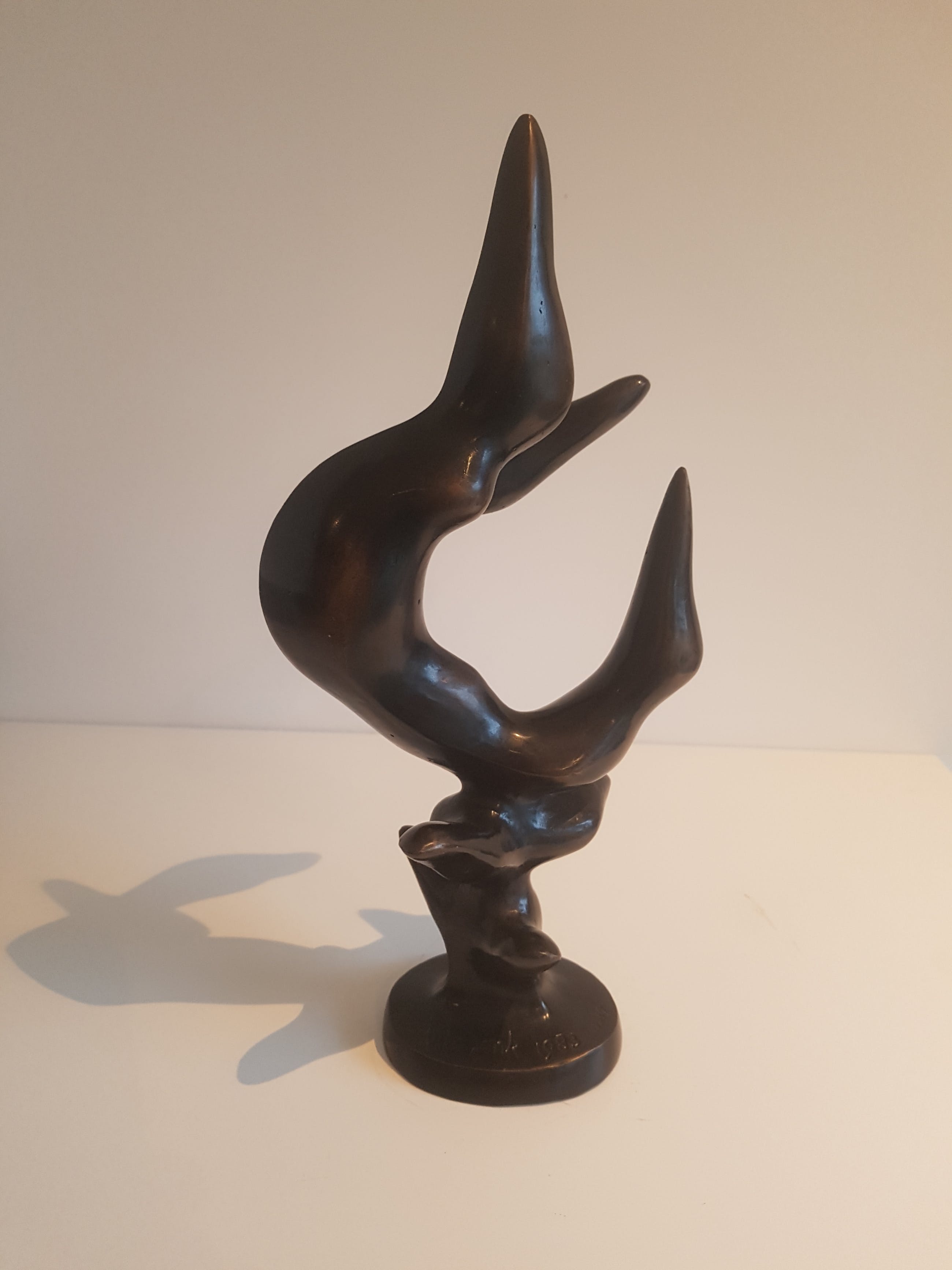 Bronzen sculptuur van Nic JonkNaam: levensvreugdJaar: 1983Afmeting: 32 cmOplage 12Editienummer:1-12Gekocht bij een veiling van het museum en beeldentuin nic jonk uit de Grootschermer