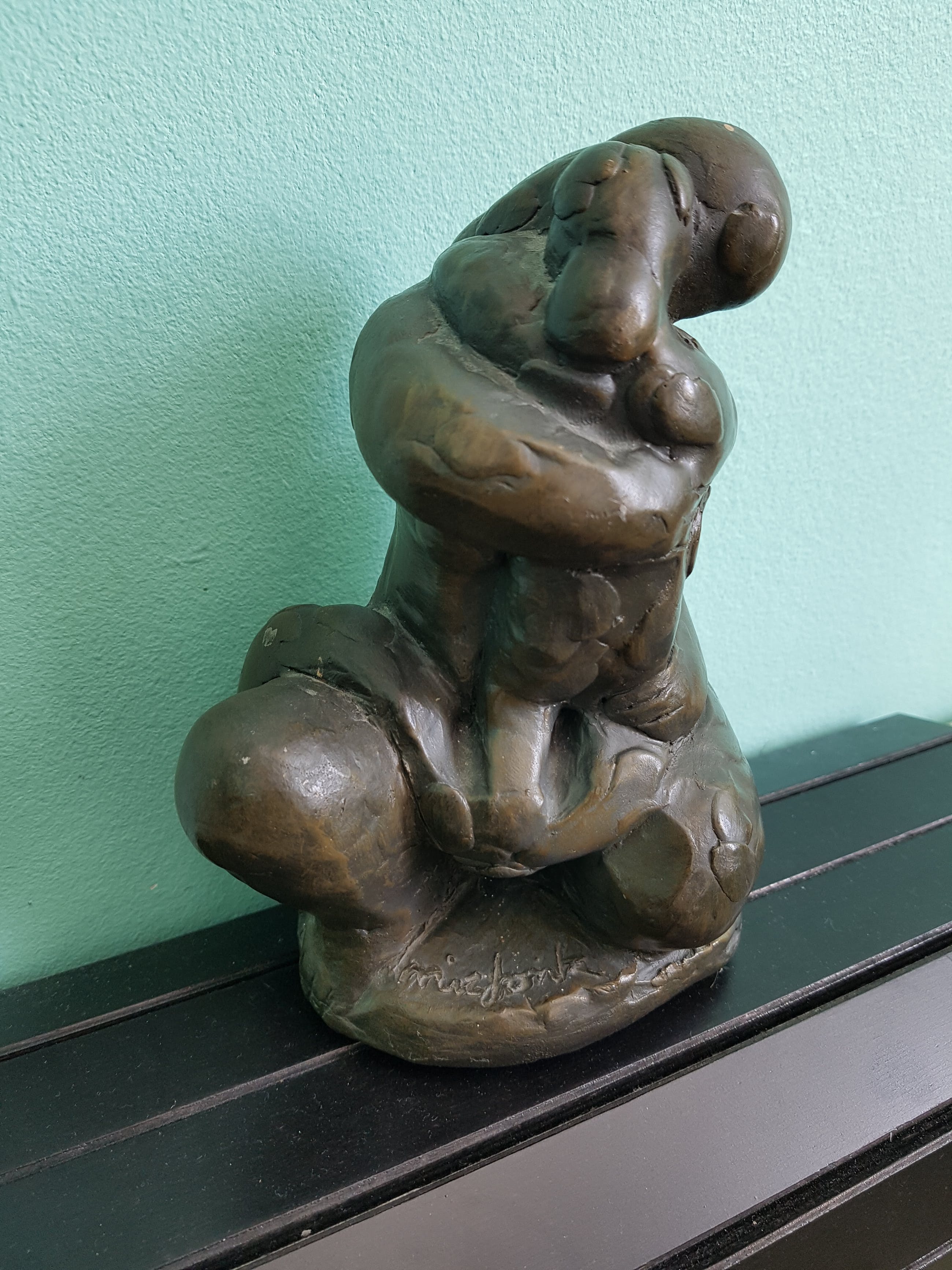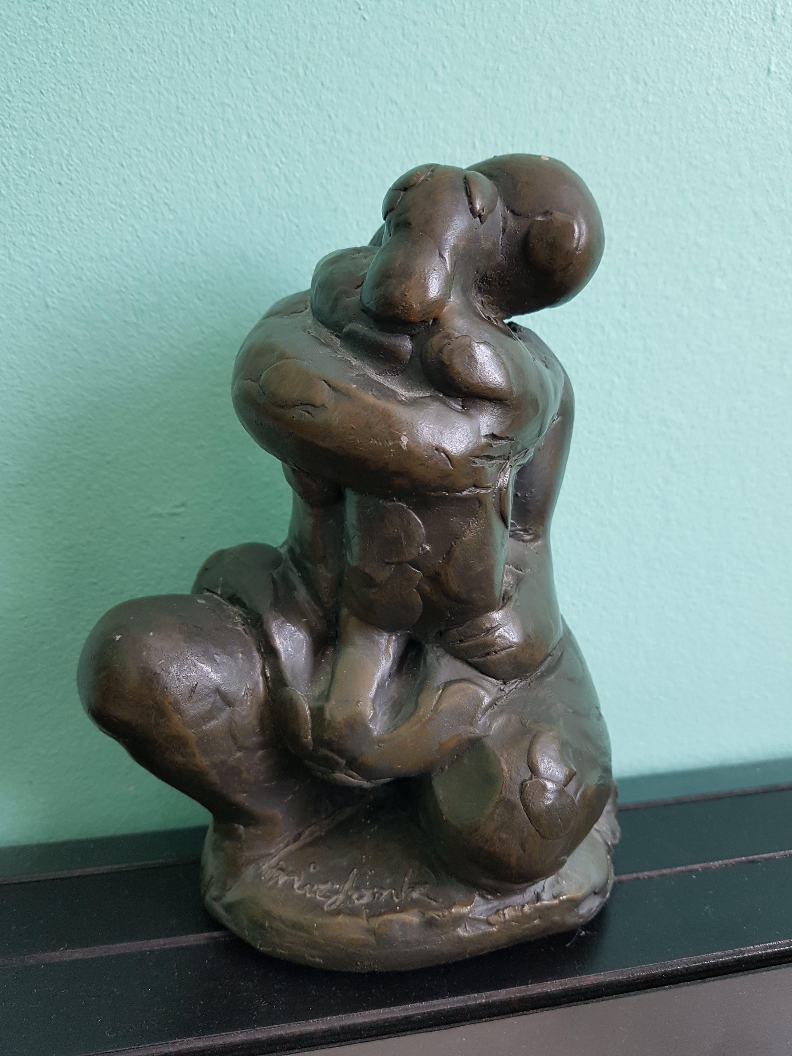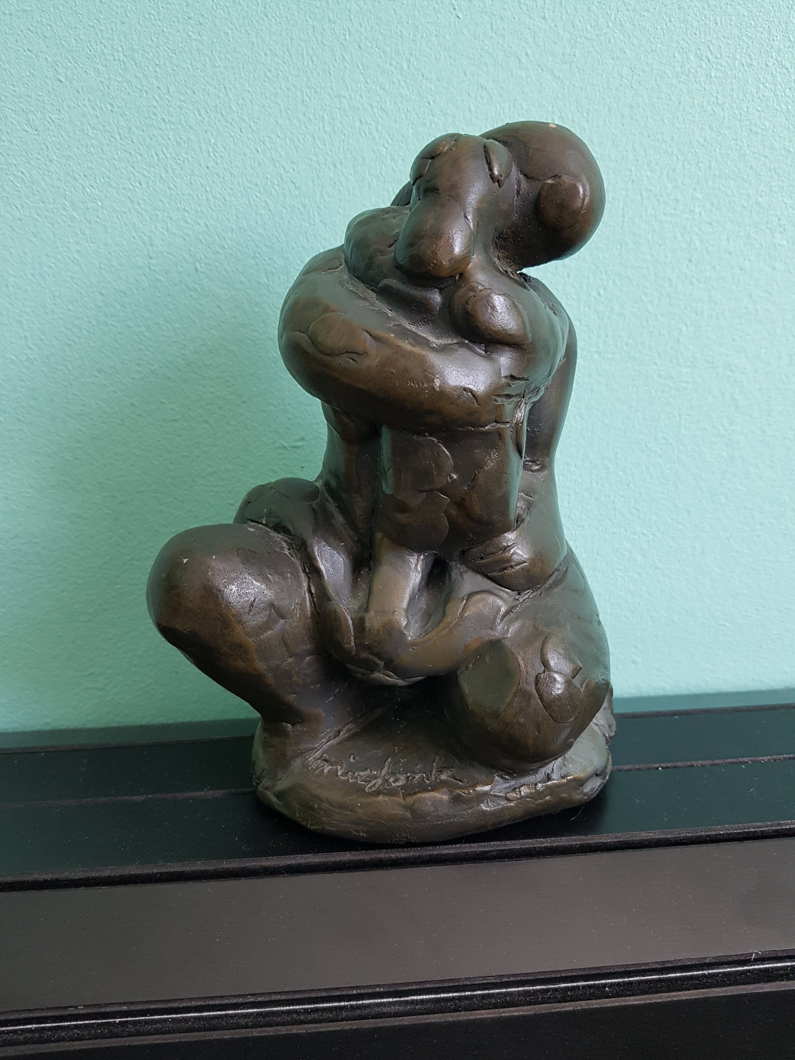 Prachtig beeldje van de bekende kunstenaar Nic Jonk, getiteld: Moeder met kind. In hele goede staat. Word zorgvuldig verzonden.
