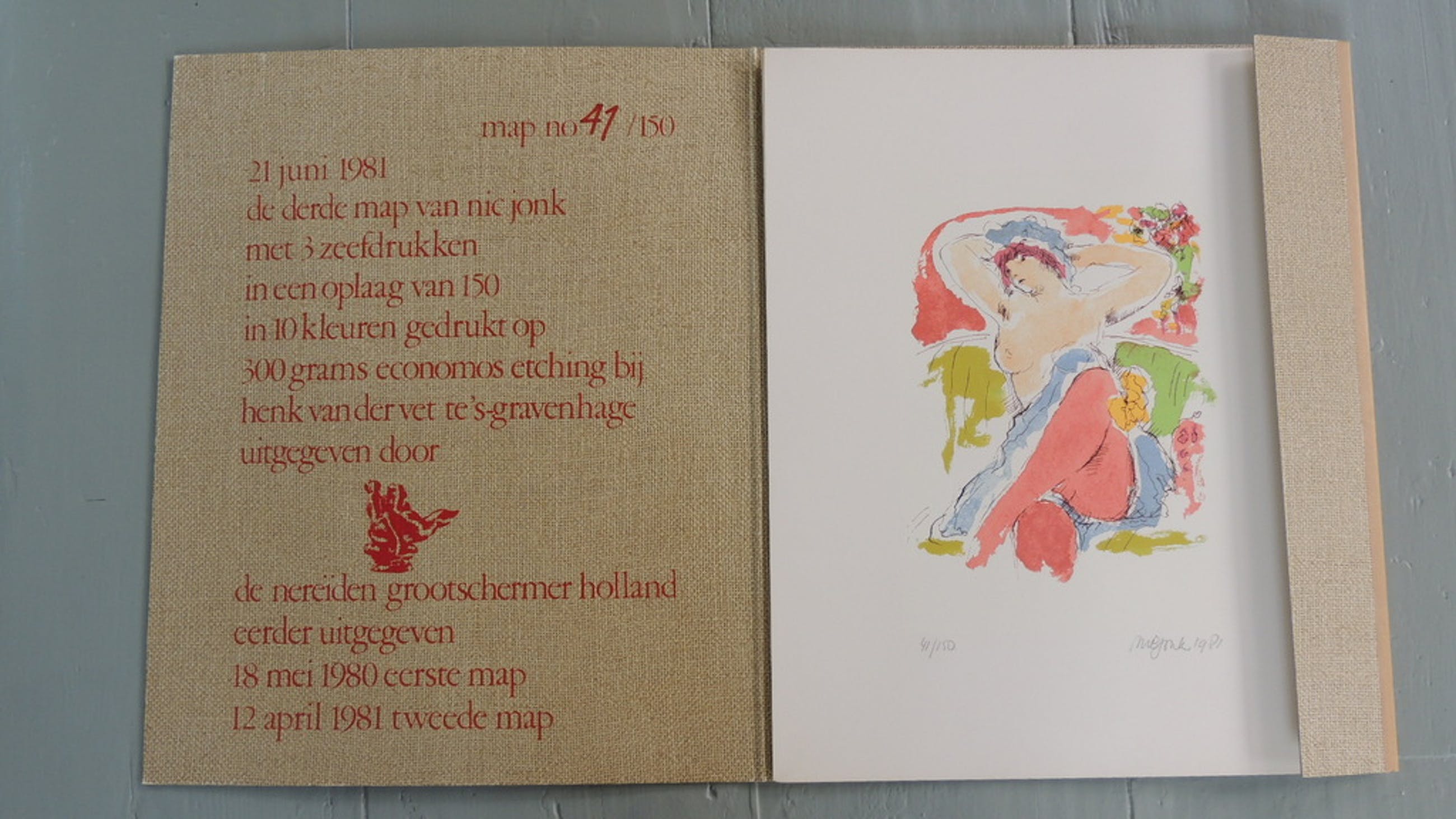 28 juni 1981, de derde map van Nic Jonk met 3 zeefdrukken in 10 kleuren in een oplage van 150 gedrukt op 300 grams economos etching.