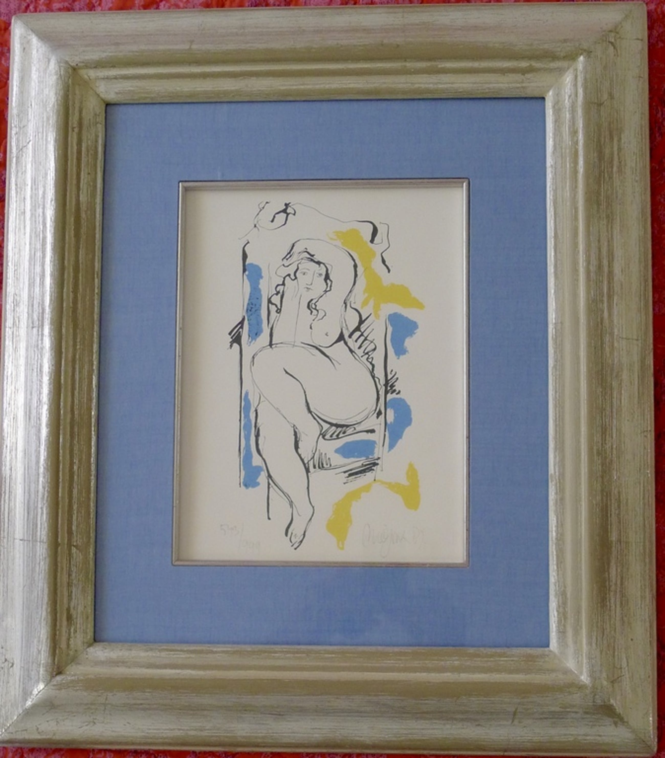 Afmeting lijst : 46 x 45 cm. Afmeting litho binnen lichtblauw passe-partout : 26 x 19.5 cm