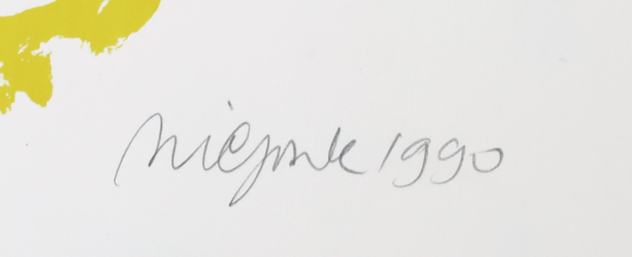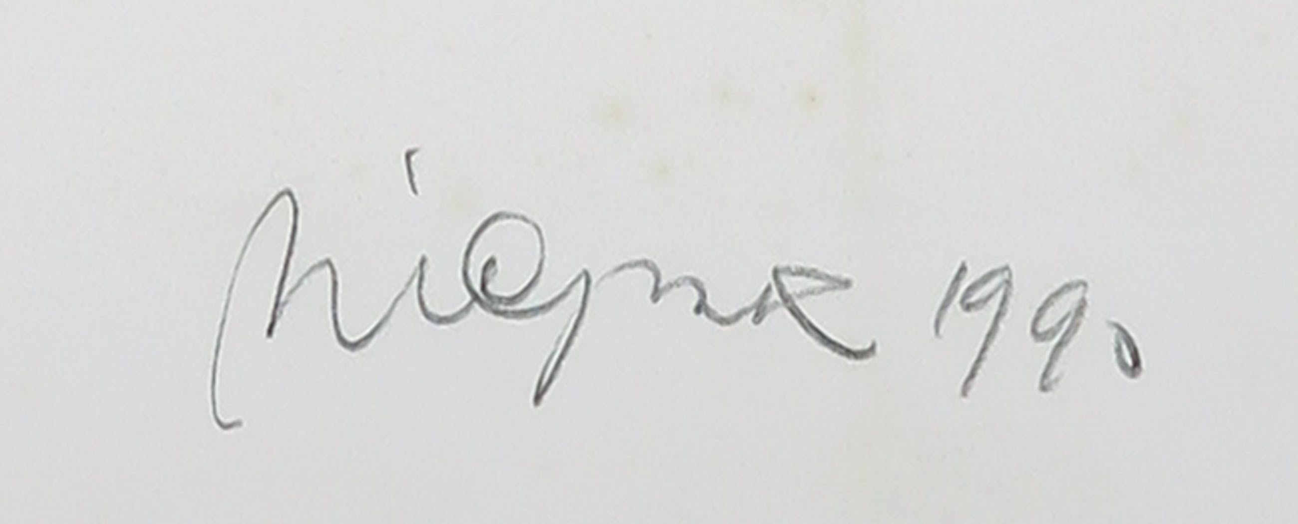 Zowel het schutblad als iedere afzonderlijke zeefdruk zijn gesigneerd, genummerd en gedateerd