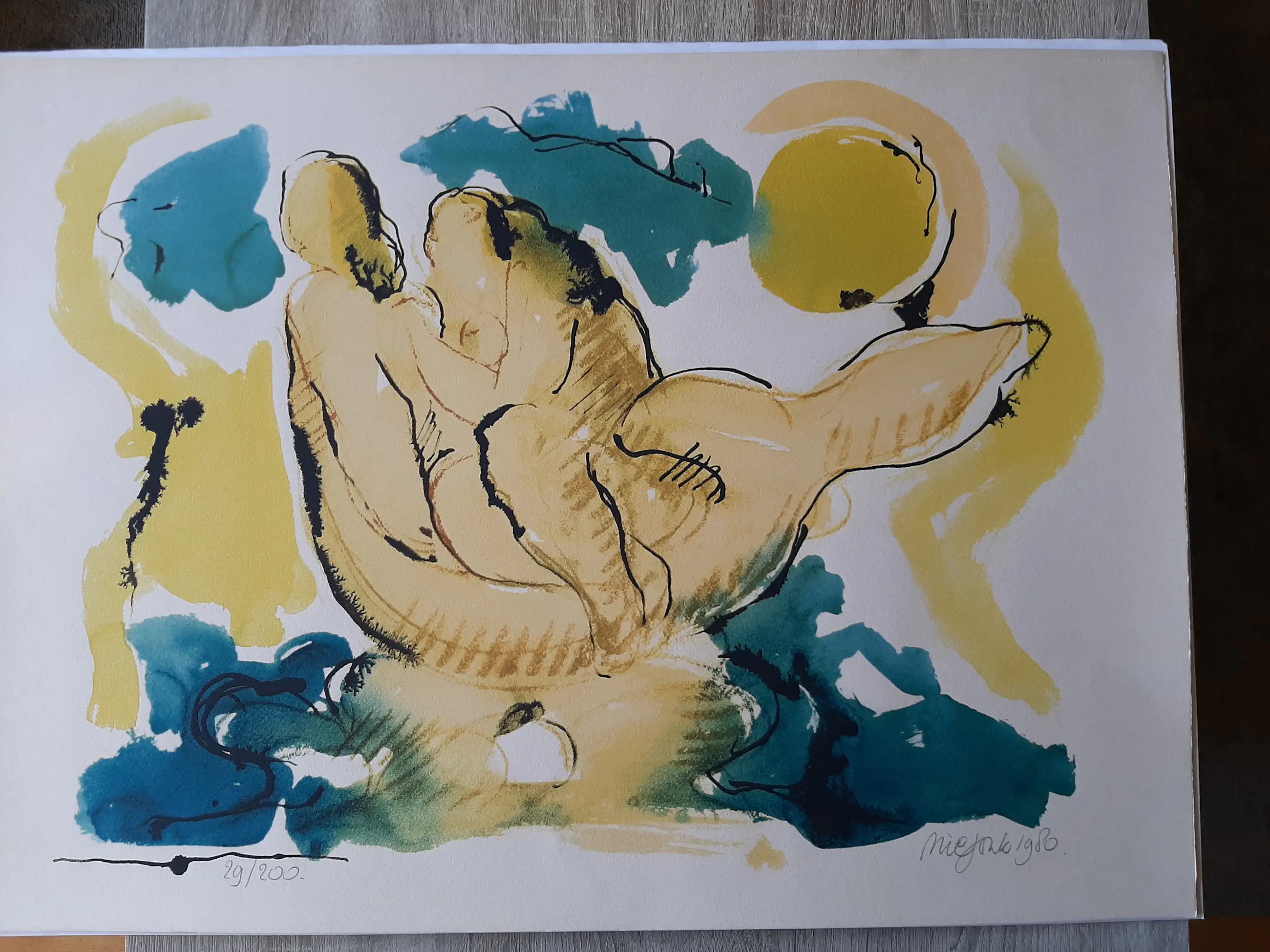 Maar ook gracieuze dieren zoals zwanen en paarden worden met ogenschijnlijk simpele lijnen in een kleurrijk geheel neergezet. De felle expressionistische en vooral monumentale doeken roepen een associatie op met schilders als Rubens, Renoir en Matisse.