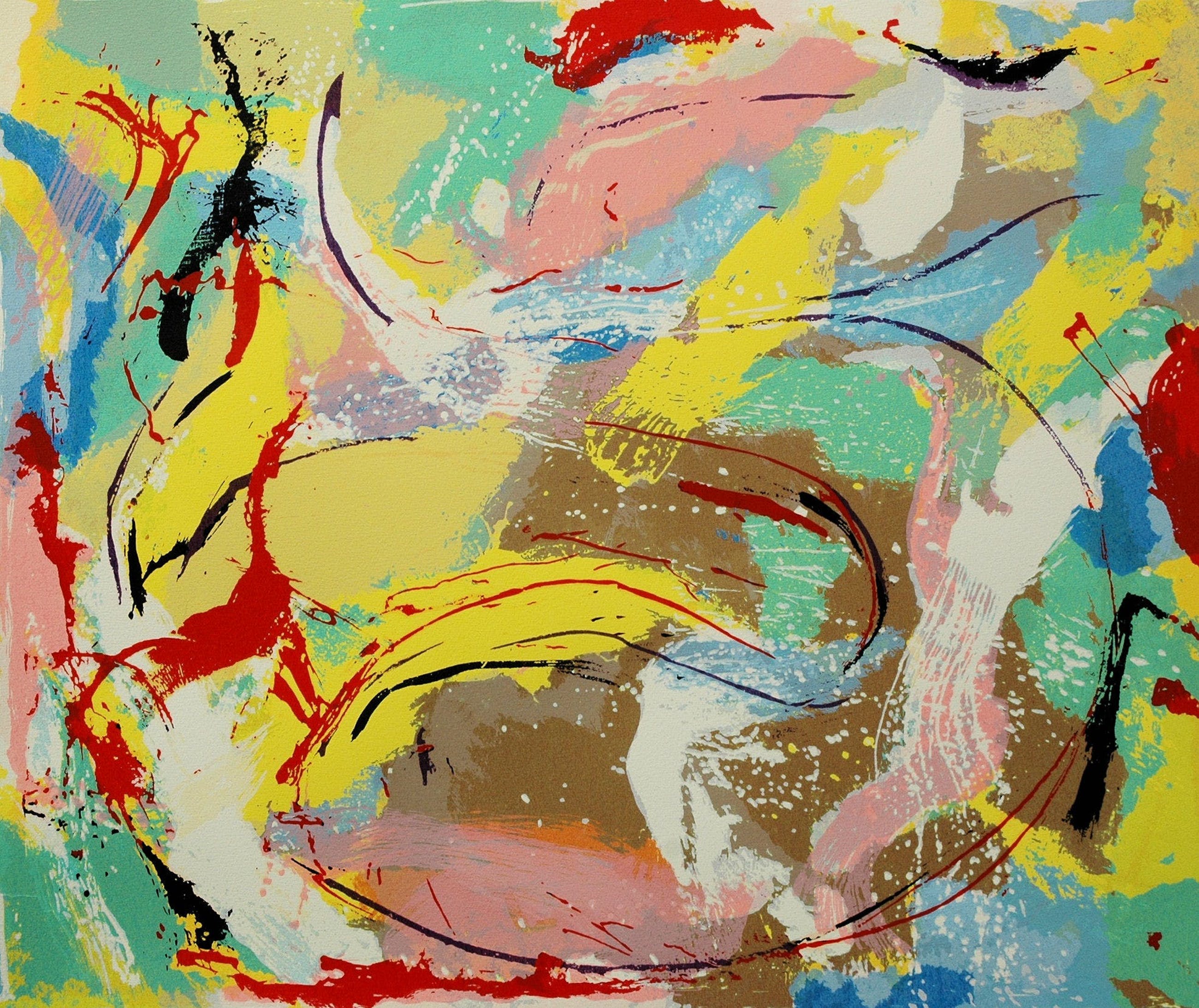 De zeefdruk is met de hand gedrukt door Wout van der Vet op geschept papier en met potlood gesigneerd door de kunstenaar!