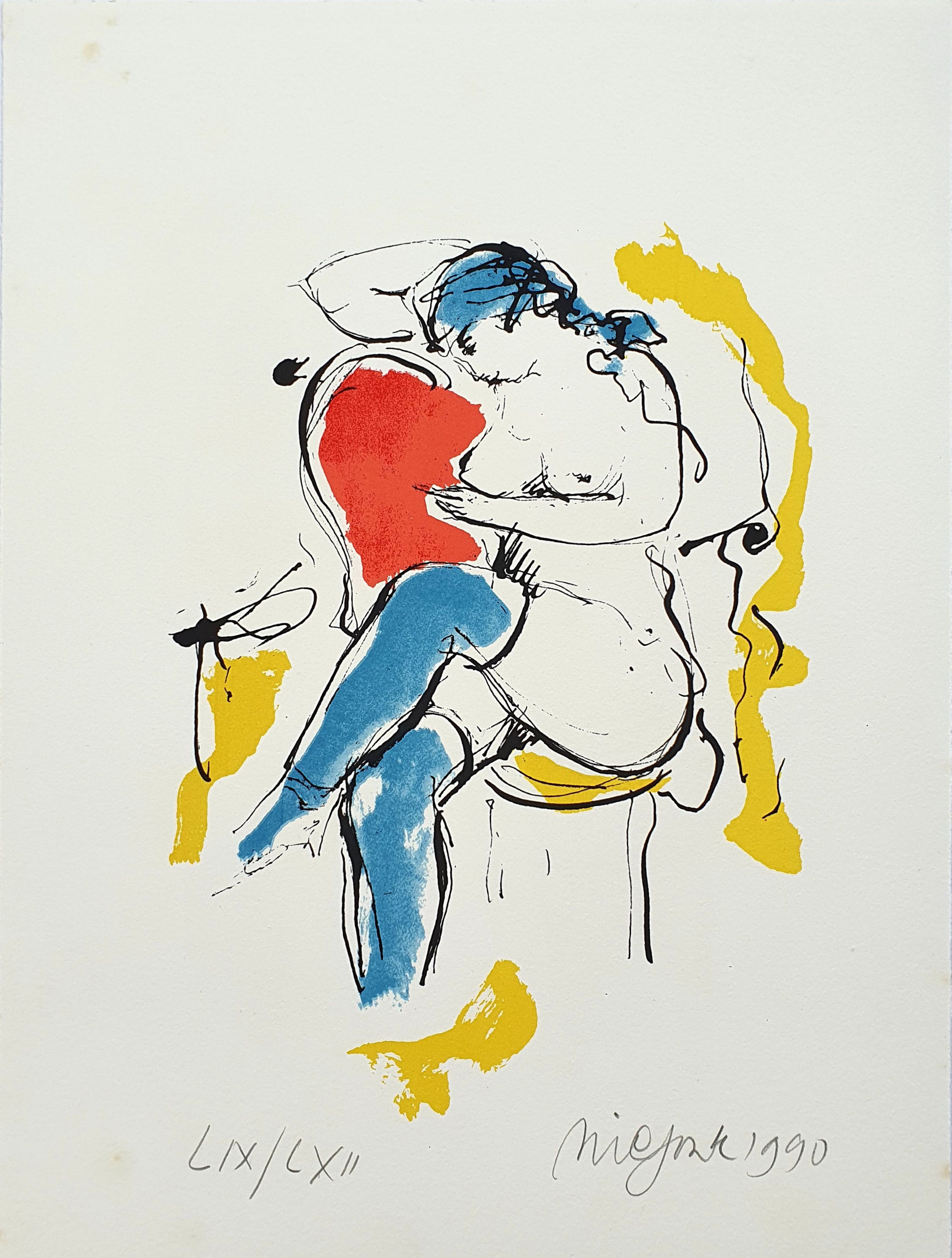 Prachtige zeefdruk van Nic Jonk. Met potlood gesigneerd, gedateerd (1990) en genummerd (LIX/LXII).