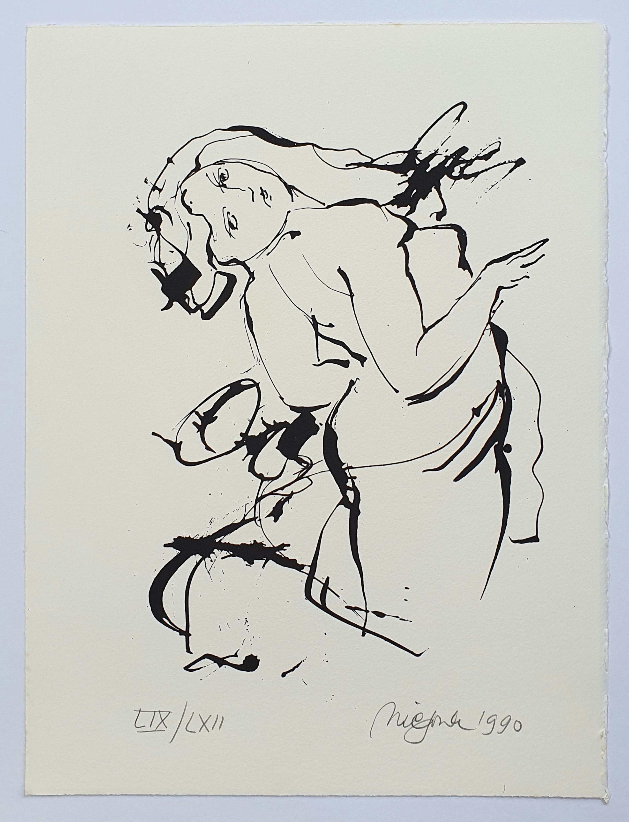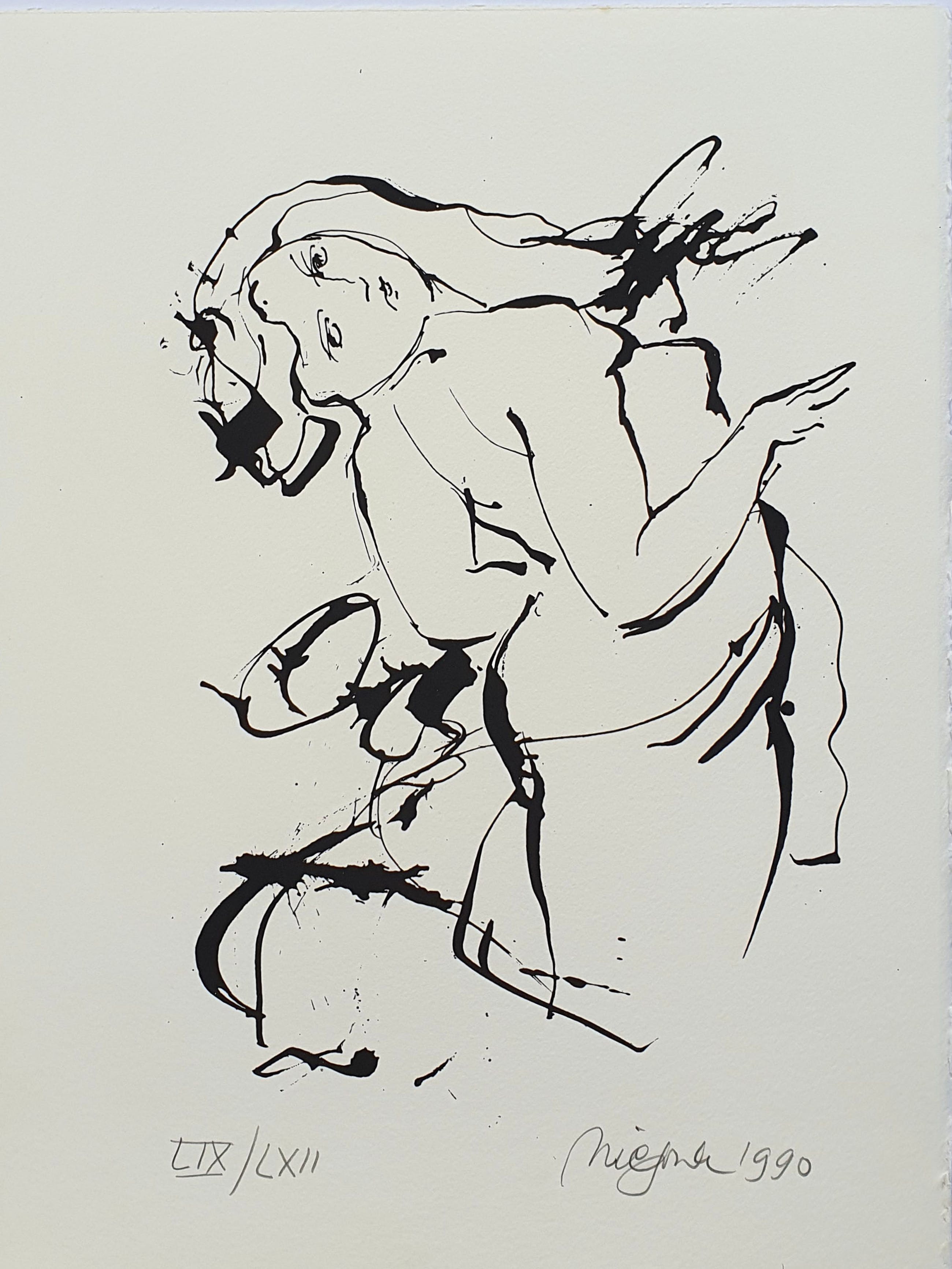Prachtige zeefdruk van Nic Jonk. Met potlood gesigneerd, gedateerd (1990) en genummerd (LIX/LXII).