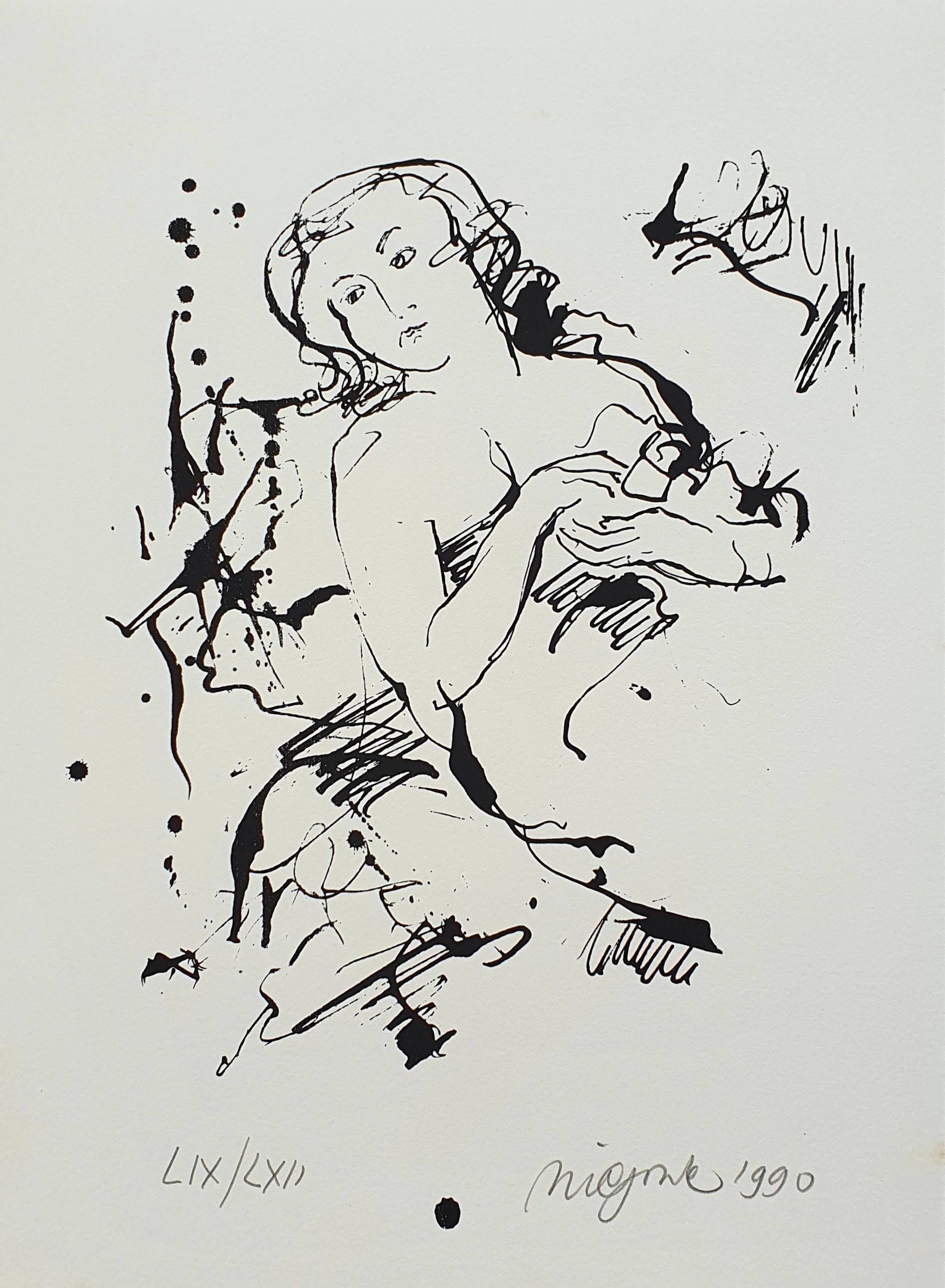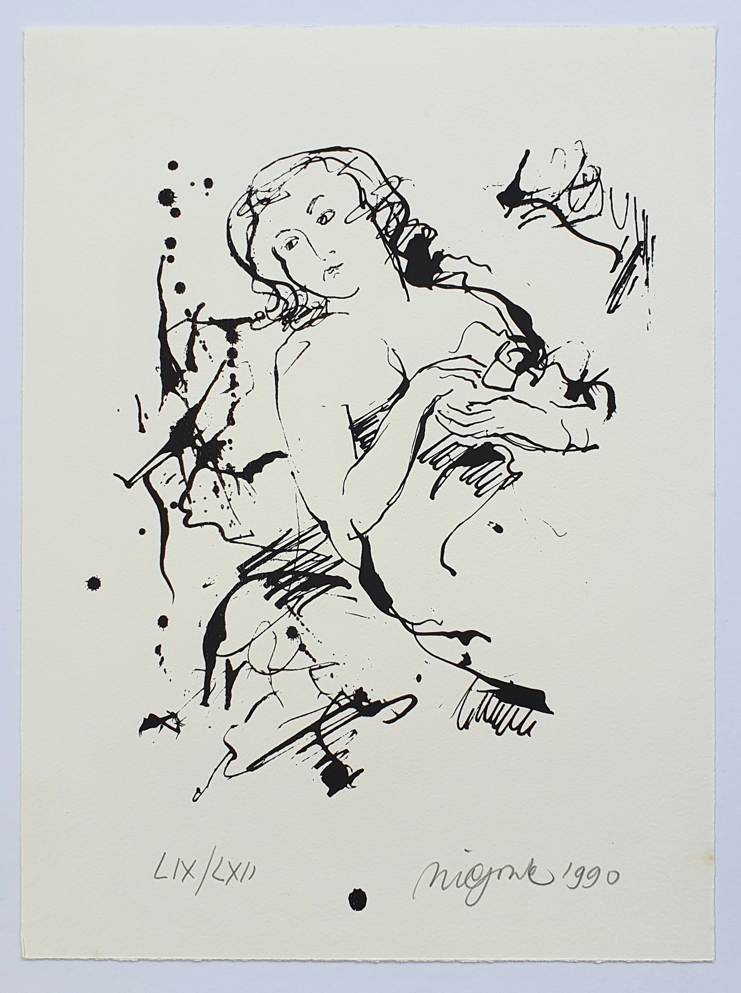 Prachtige zeefdruk van Nic Jonk. Met potlood gesigneerd, gedateerd (1990) en genummerd (LIX/LXII).