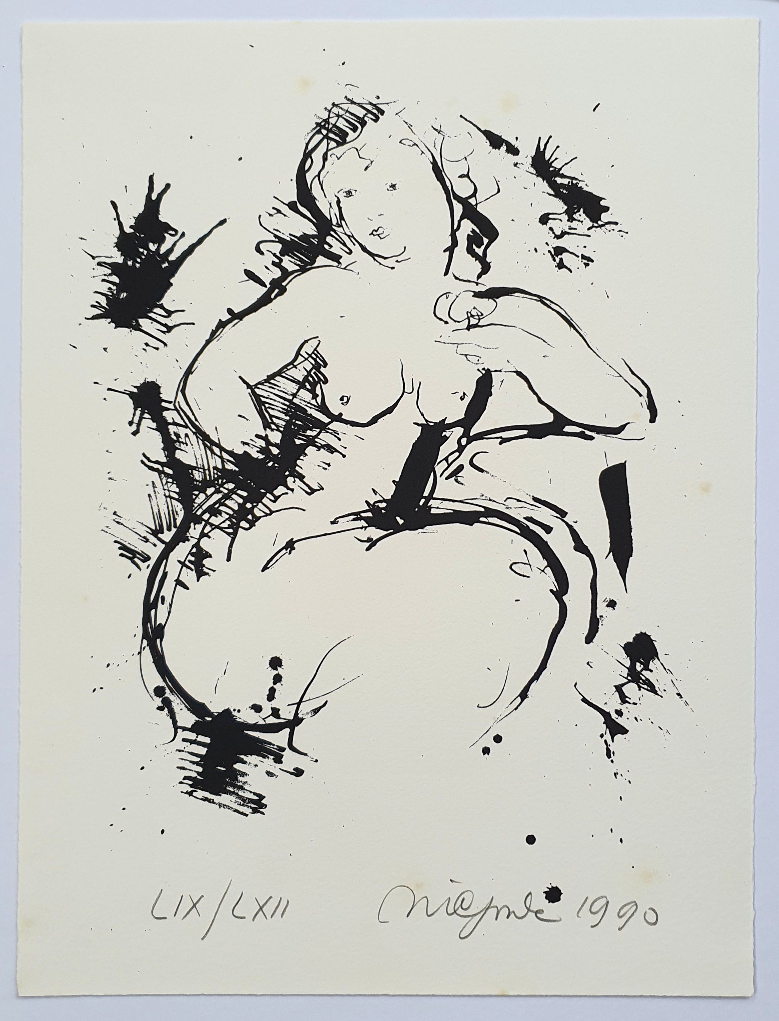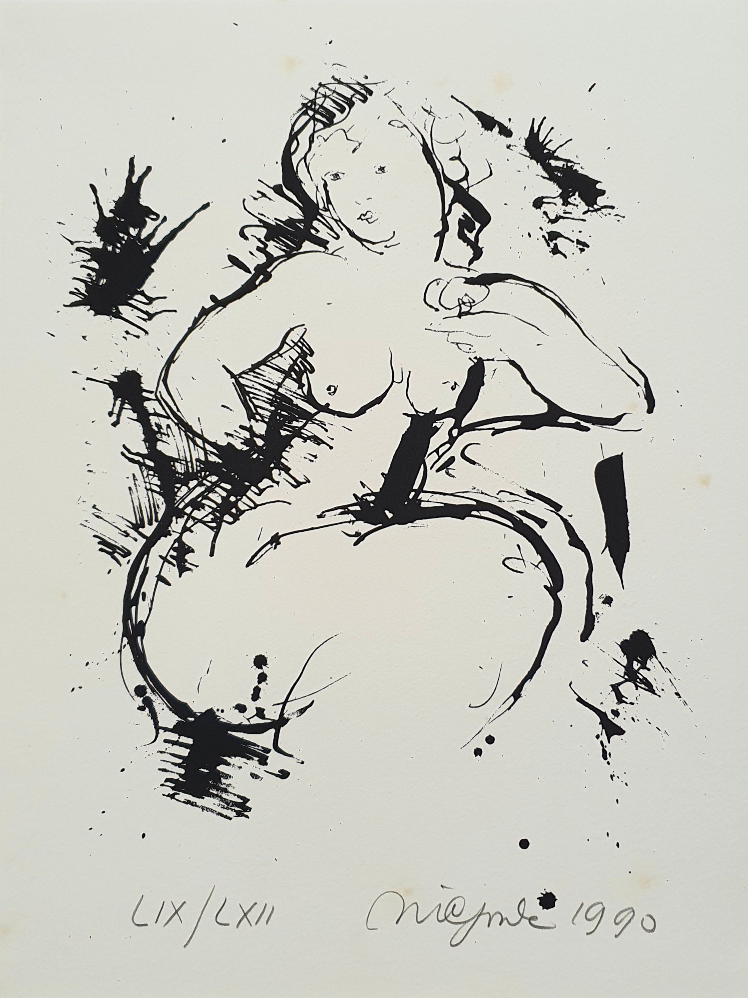 Prachtige zeefdruk van Nic Jonk. Met potlood gesigneerd, gedateerd (1990) en genummerd (LIX/LXII).