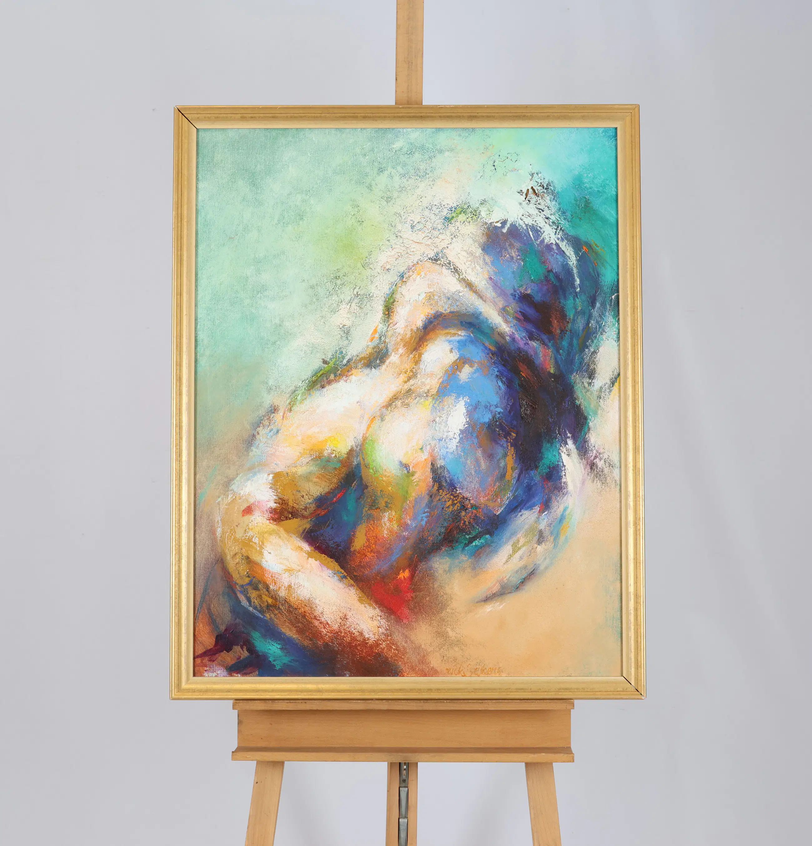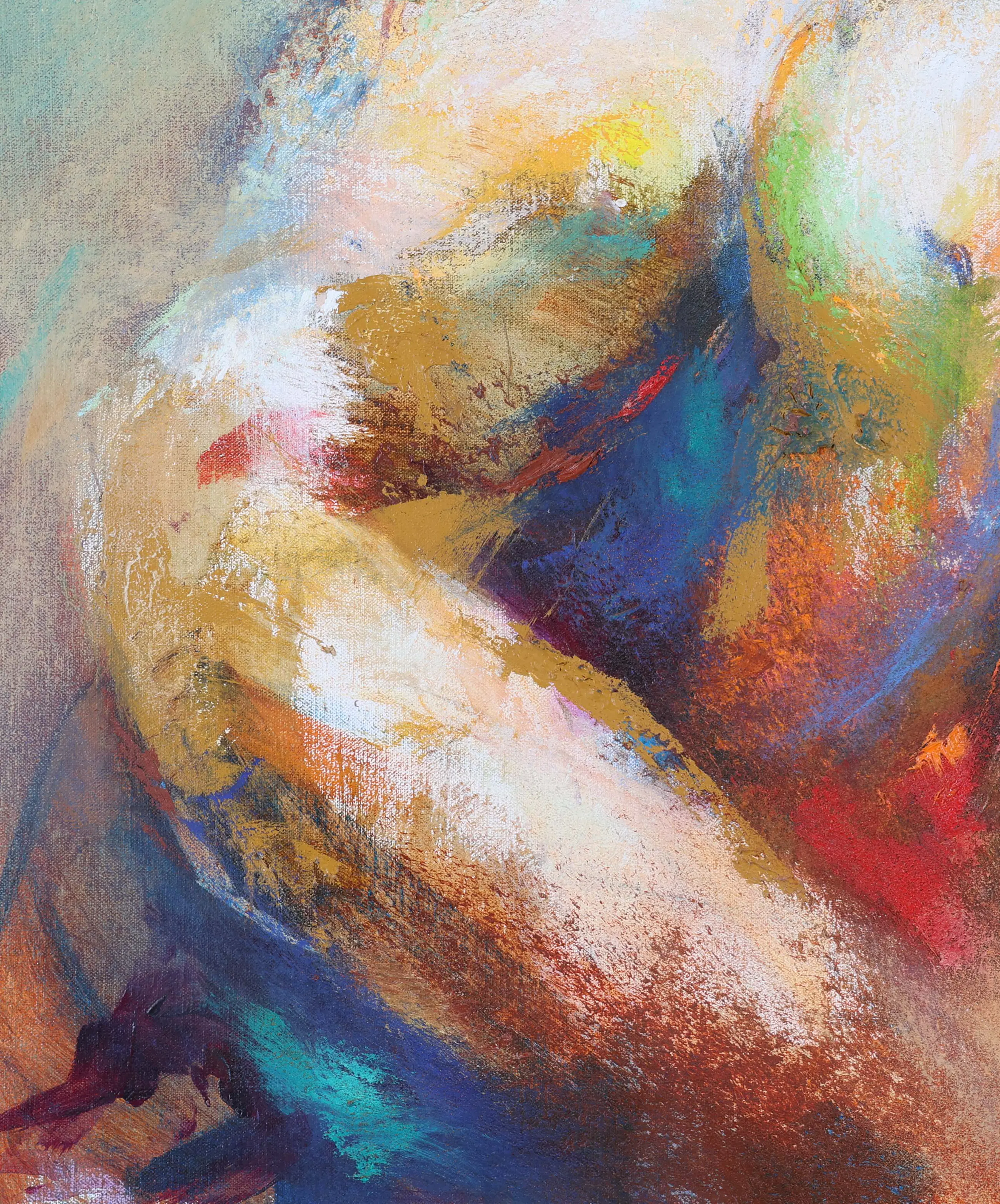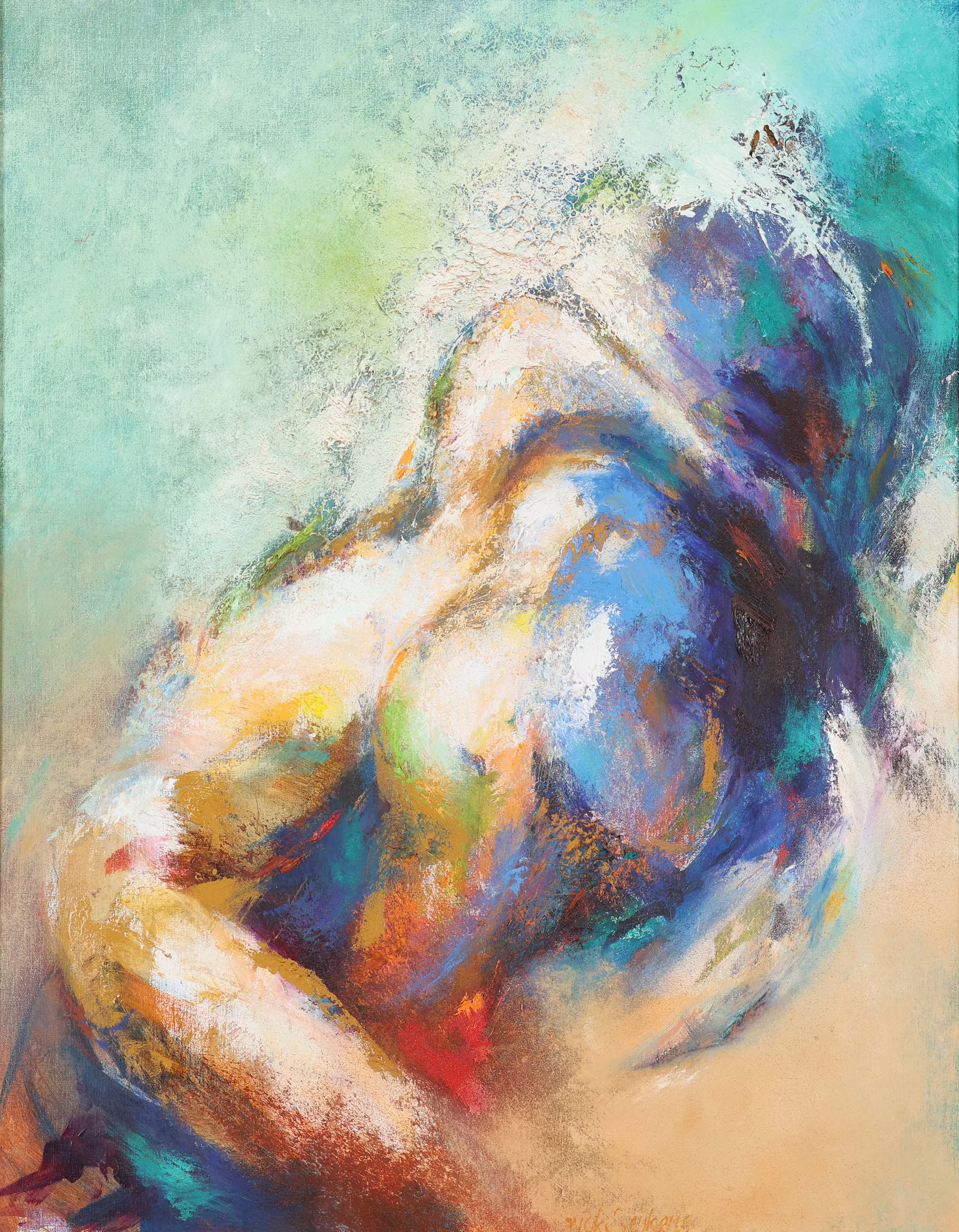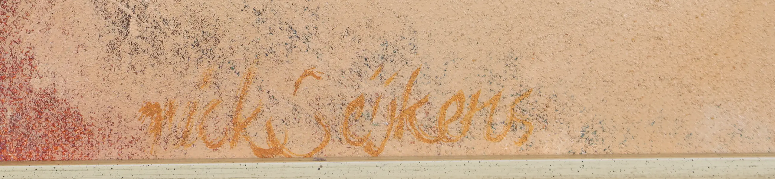 Dit abstracte werk van Nick Seijkens is een kleurrijke compositie met vormen die bijna menselijk aandoen. Seijkens is een hartstochtelijk schilder die zijn kunstenaarschap voortdurend opnieuw uitvindt in een onophoudelijke zoektocht naar verwondering. Voor hem staat het proces van schilderen — het experimenteren met nieuwe technieken en het vinden van creatieve oplossingen — vaak centraal, misschien zelfs meer dan het eindresultaat.