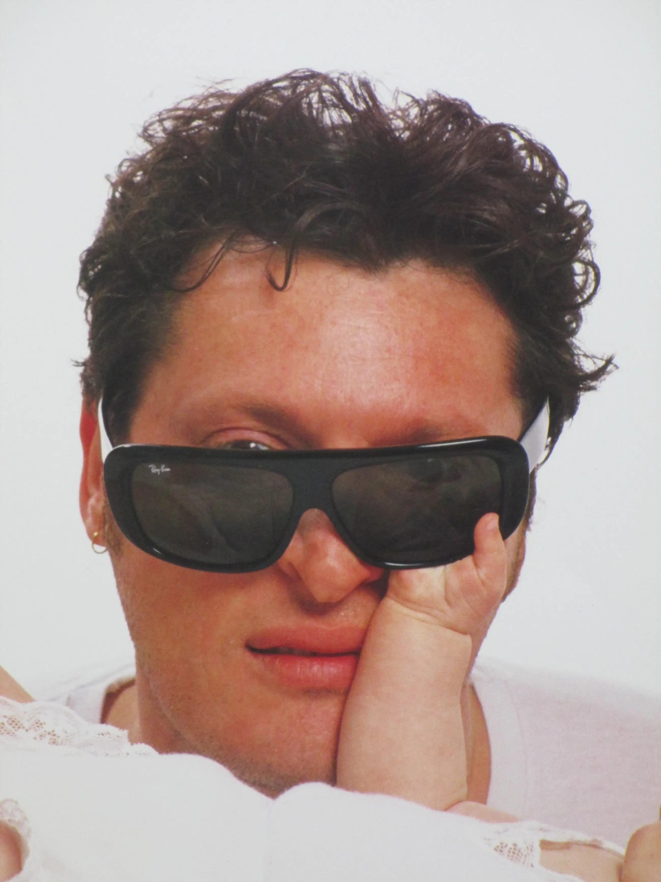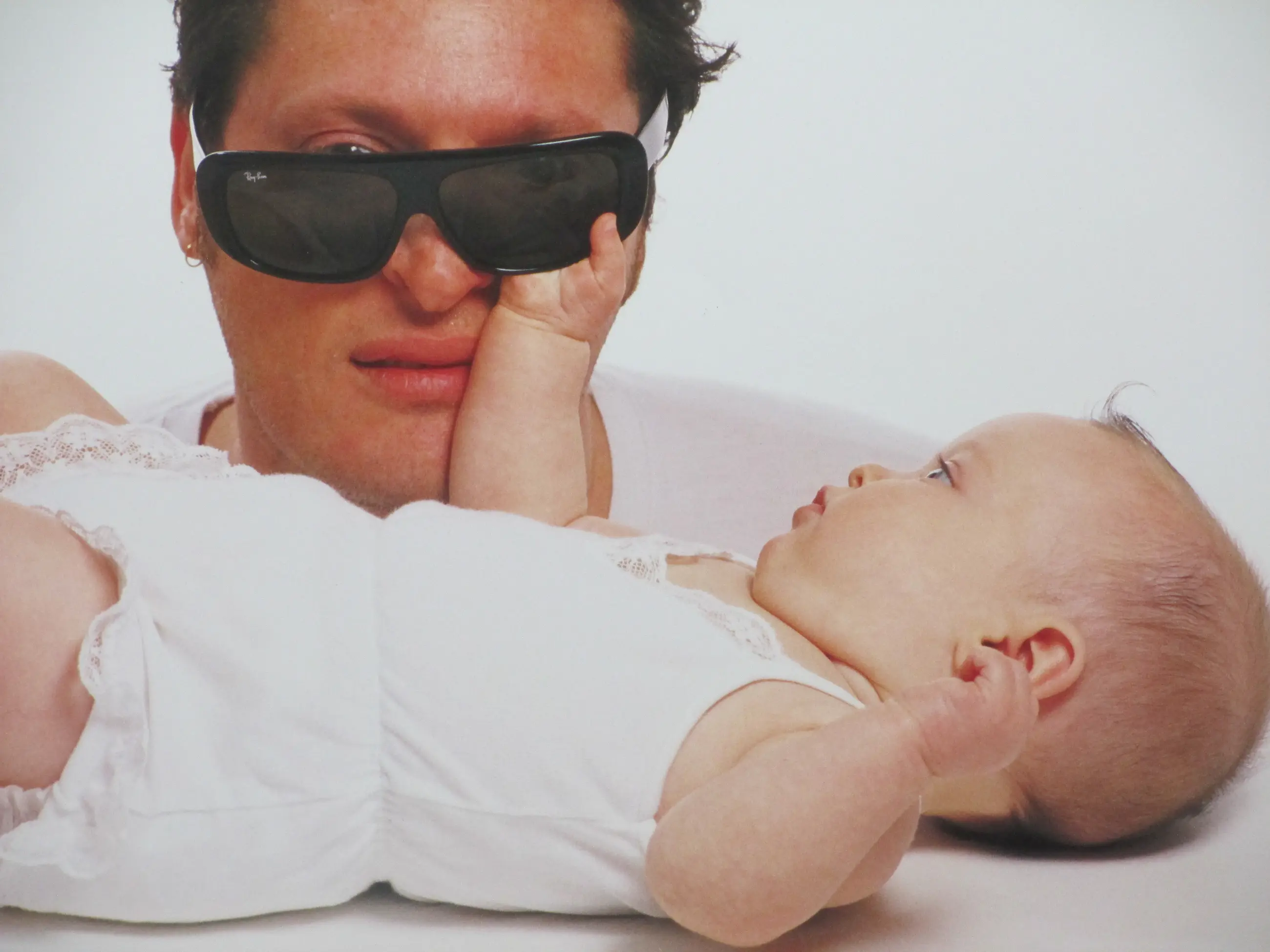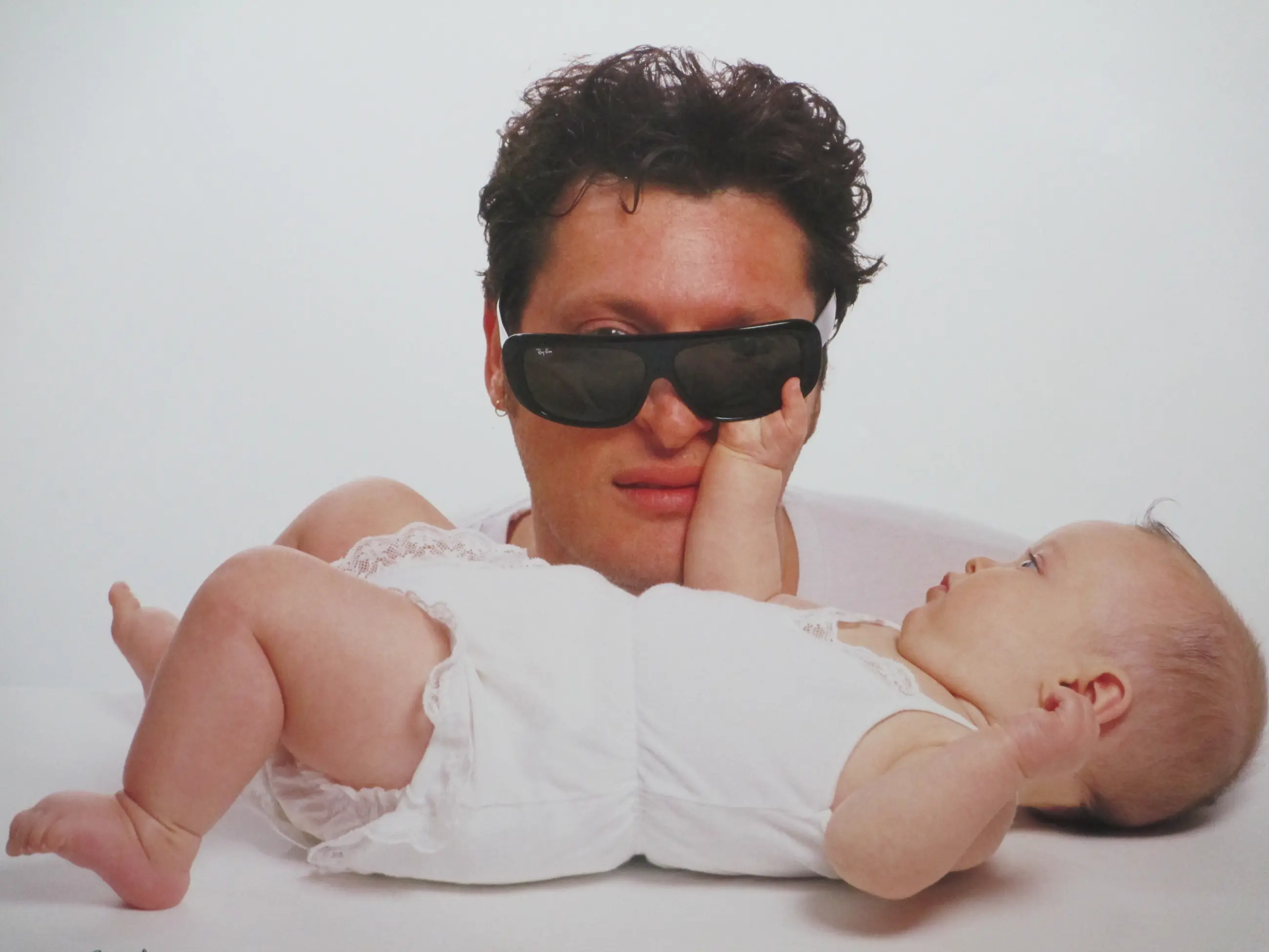 Originele C-print door Nick van Ormondt Foto van Barry Hay en zijn baby uit 1992 Losbladig, beeldmaat 60x50 Genummerd en gesigneerd in stift l.o.: '305/500' en 'Nick van Ormondt' Foto destijds gepubliceerd in het tijdschrift Aktueel