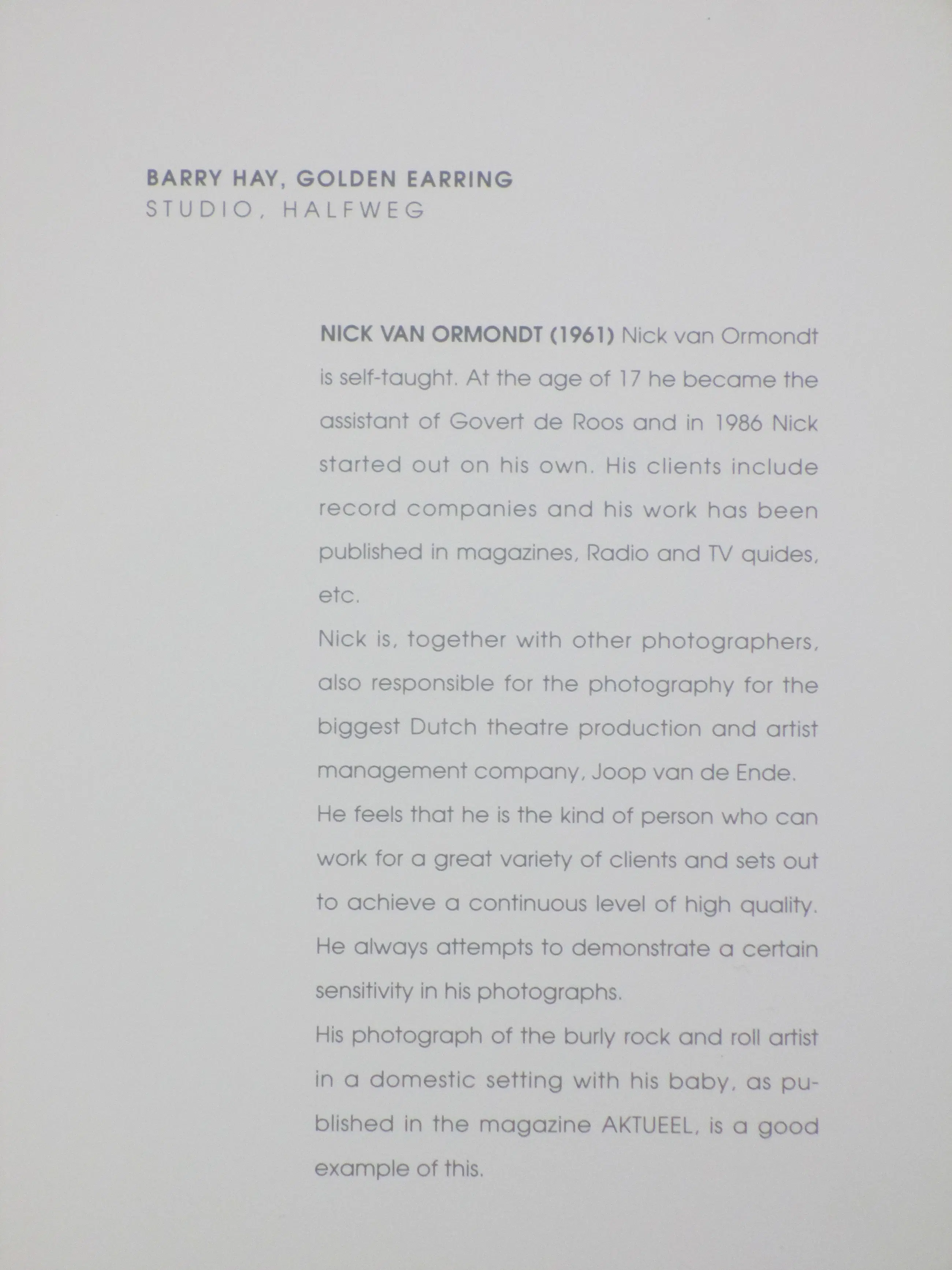 Herkomst: portfolio Photography Sony Music Authenticiteit volledig gegarandeerd