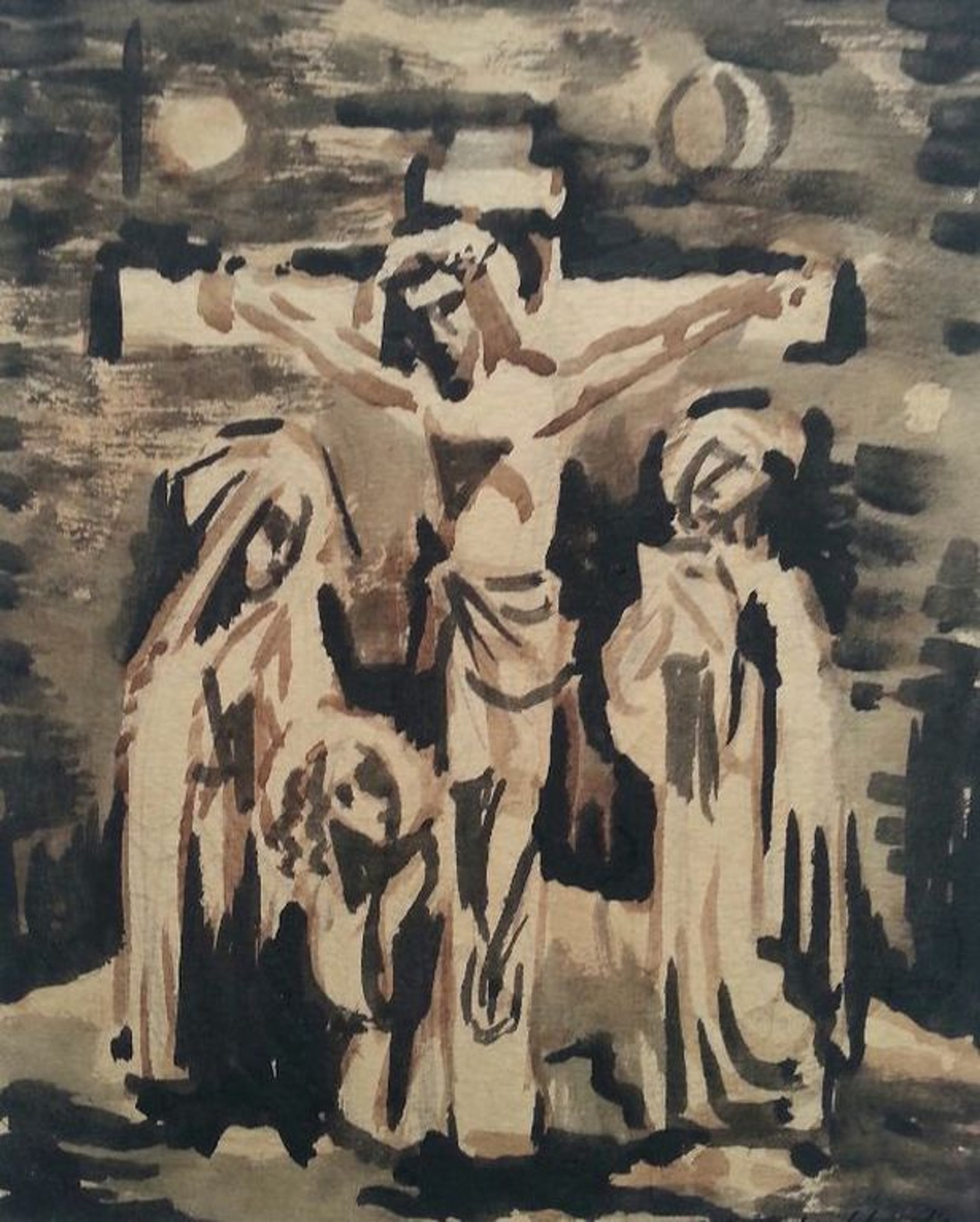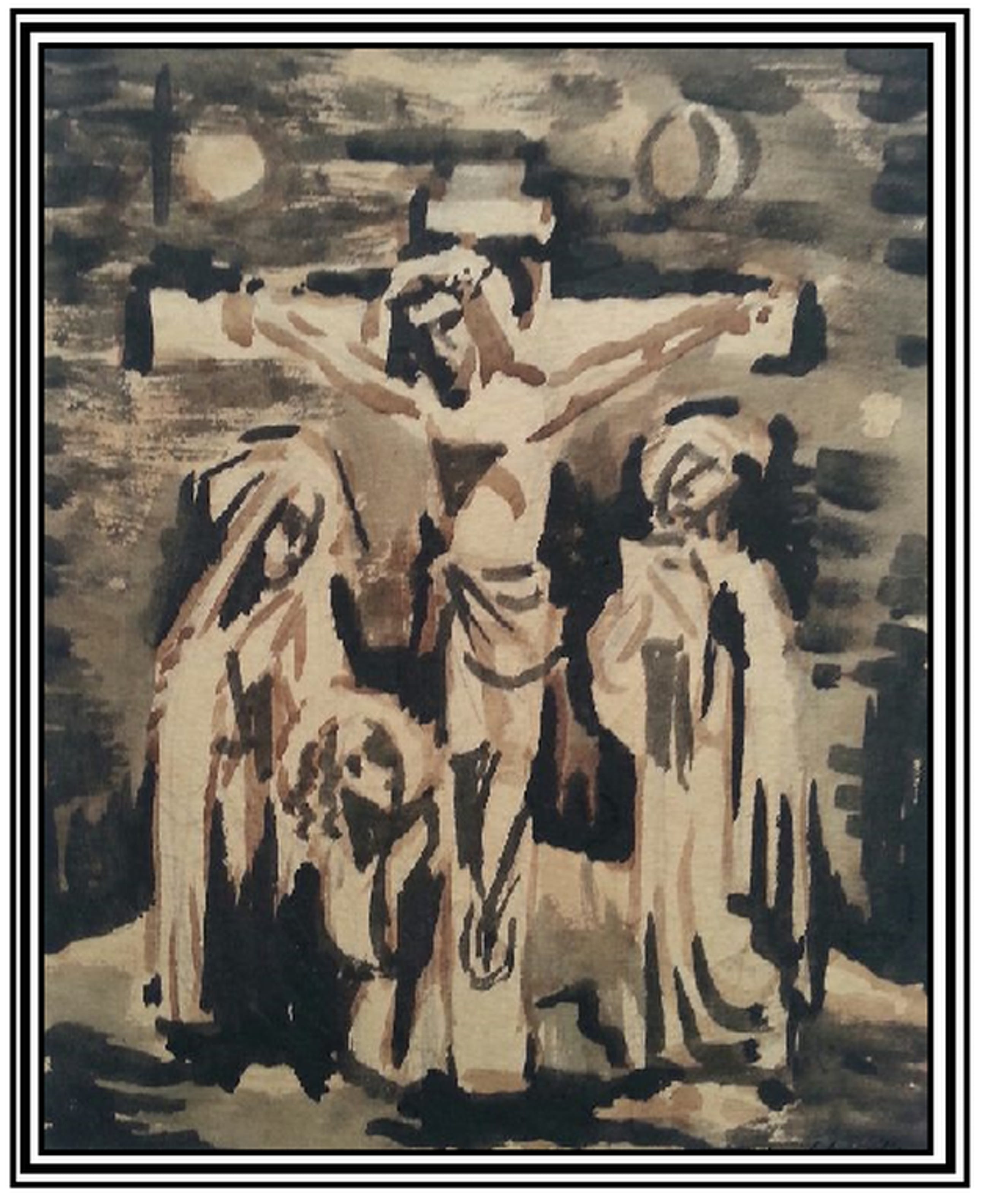 Gemengde techniek/inkt tekening van Nico g Berkhout " Christus aan het kruis "