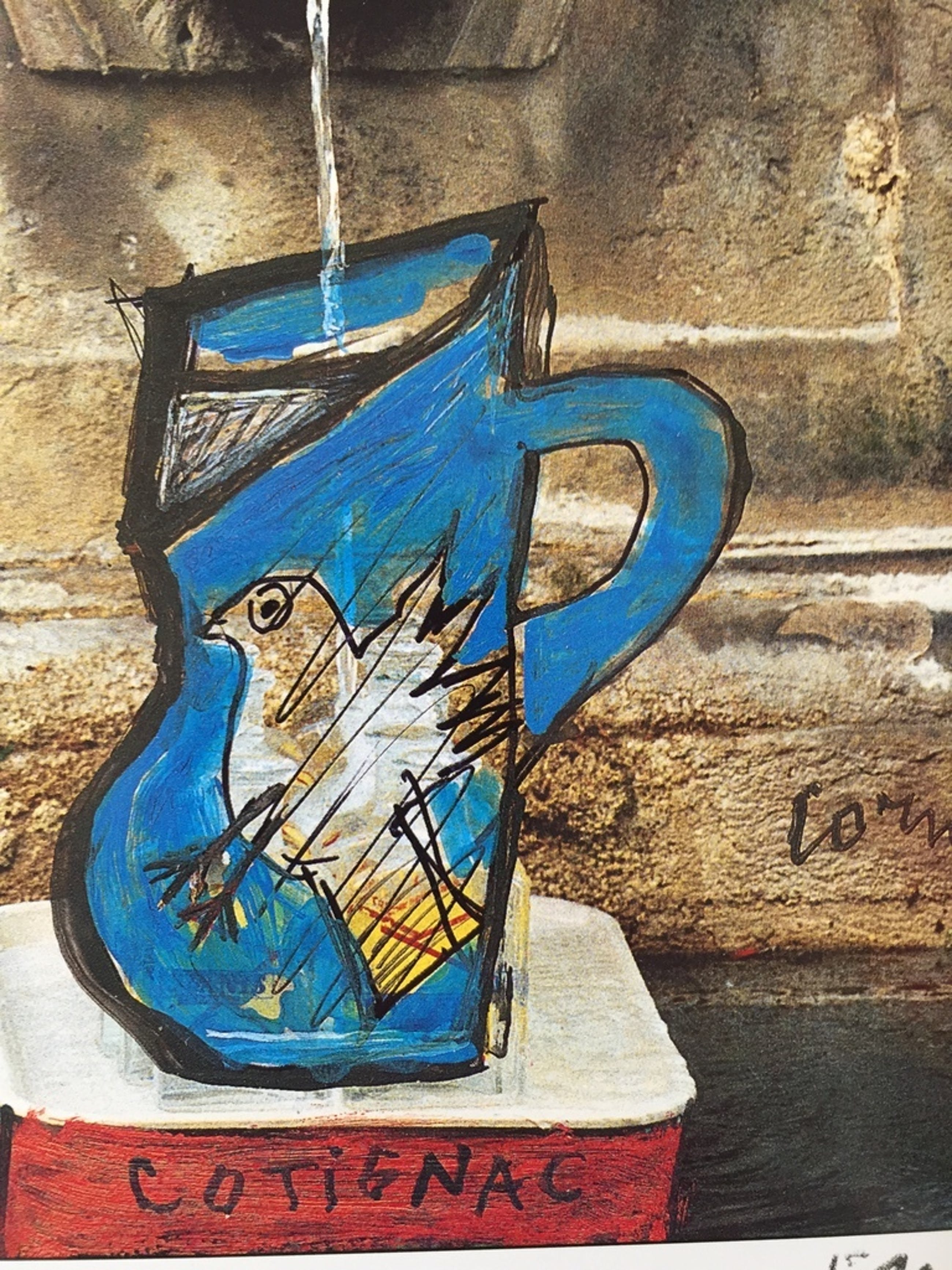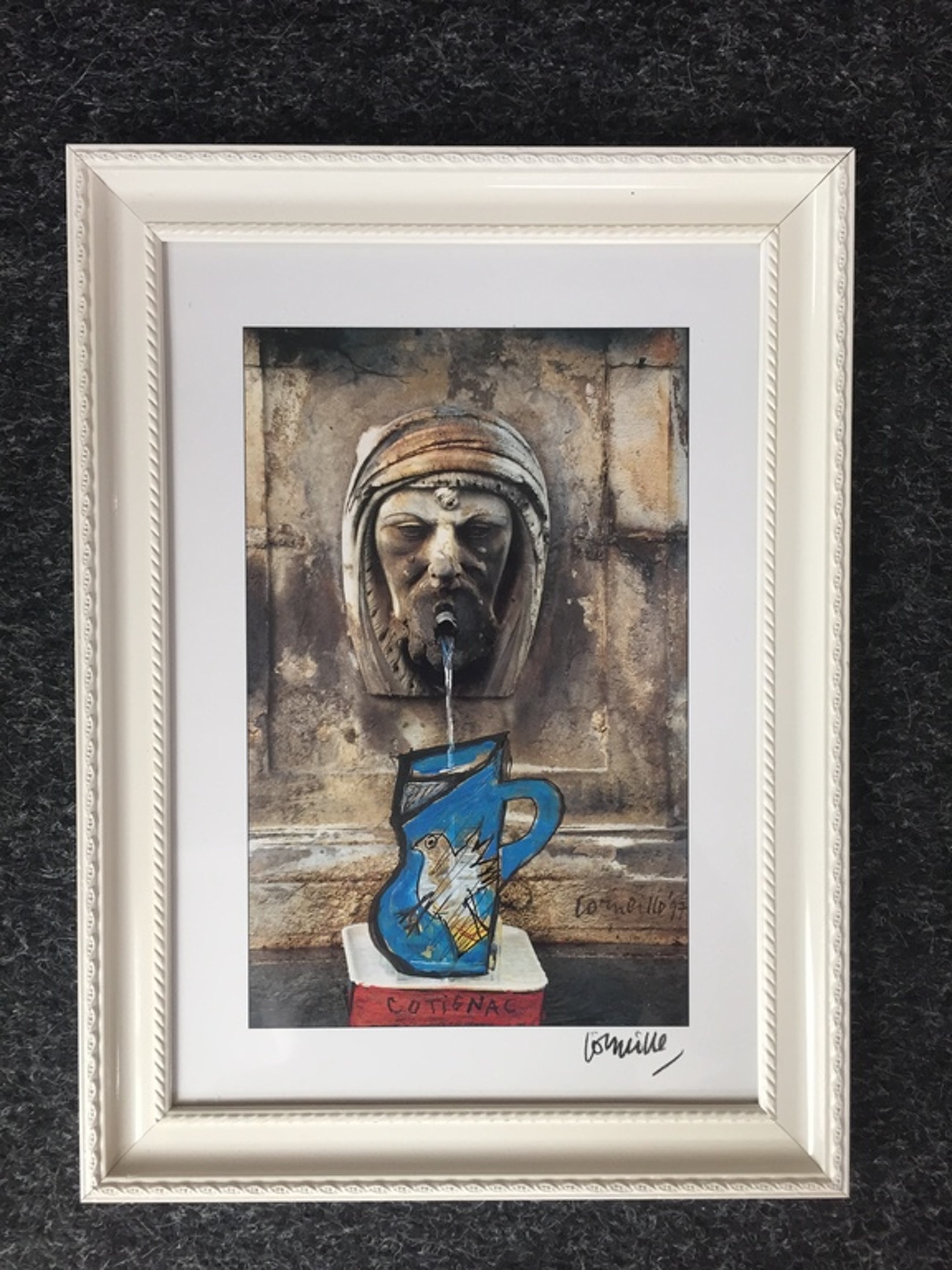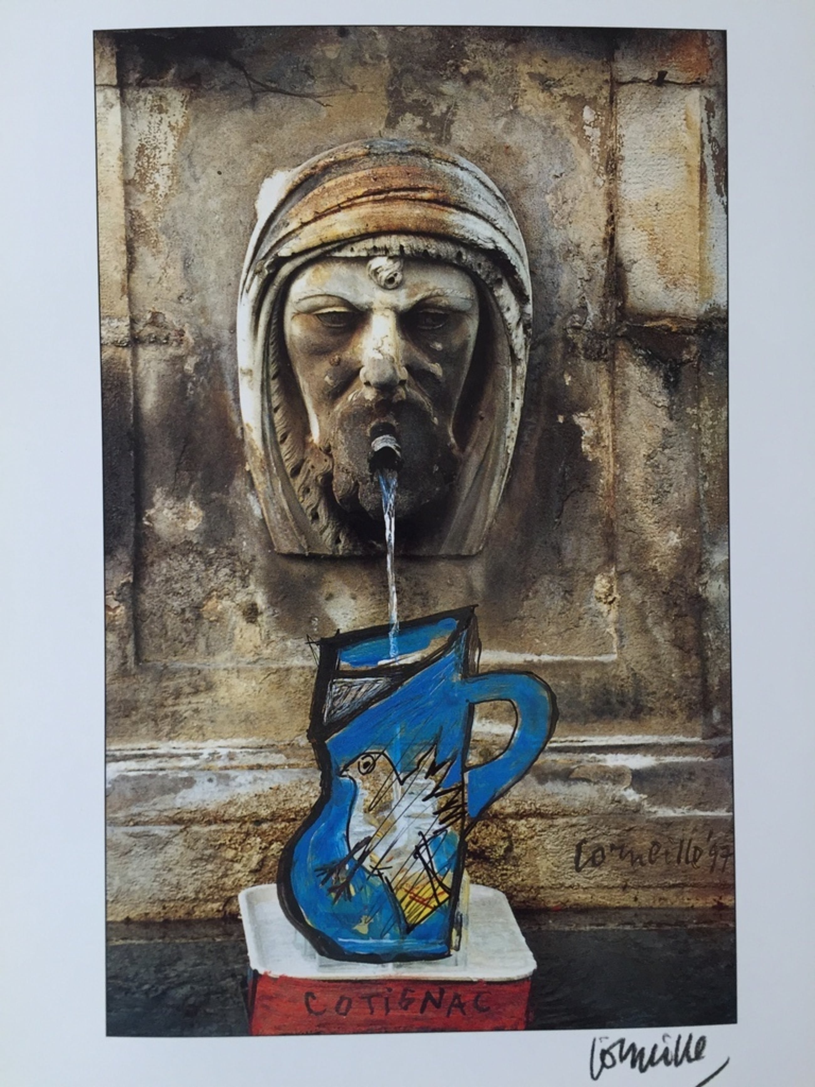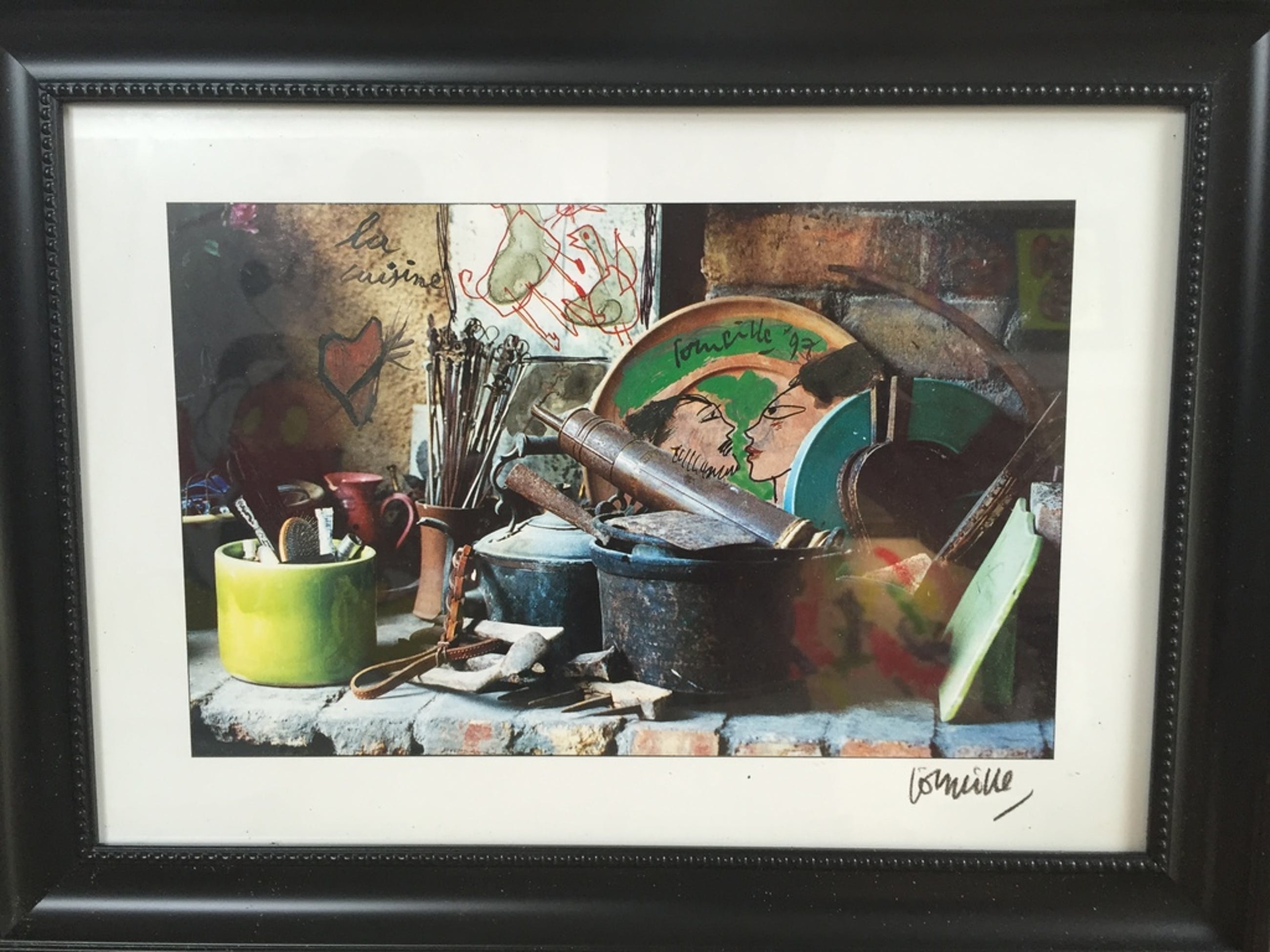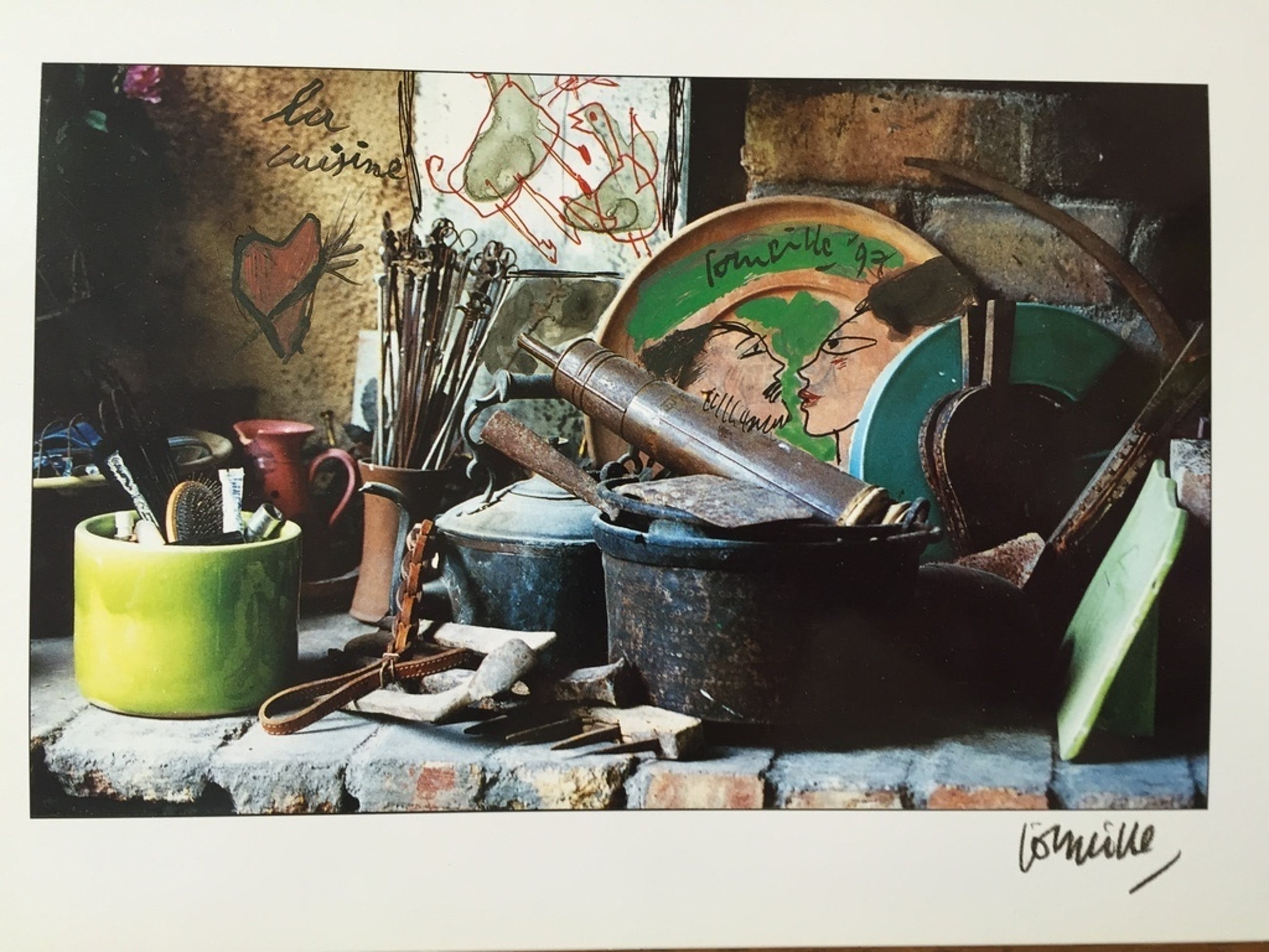 Nico Koster heeft de foto gemaakt, Corneille heeft deze vervolgens ingekleurd. Dit is een reproductie waarbij de handtekening is meegedrukt. E.e.a. t.b.v. een kookcursus in de provence, ca 20 jaar geleden. De foto's zijn gemaakt in Contignac.