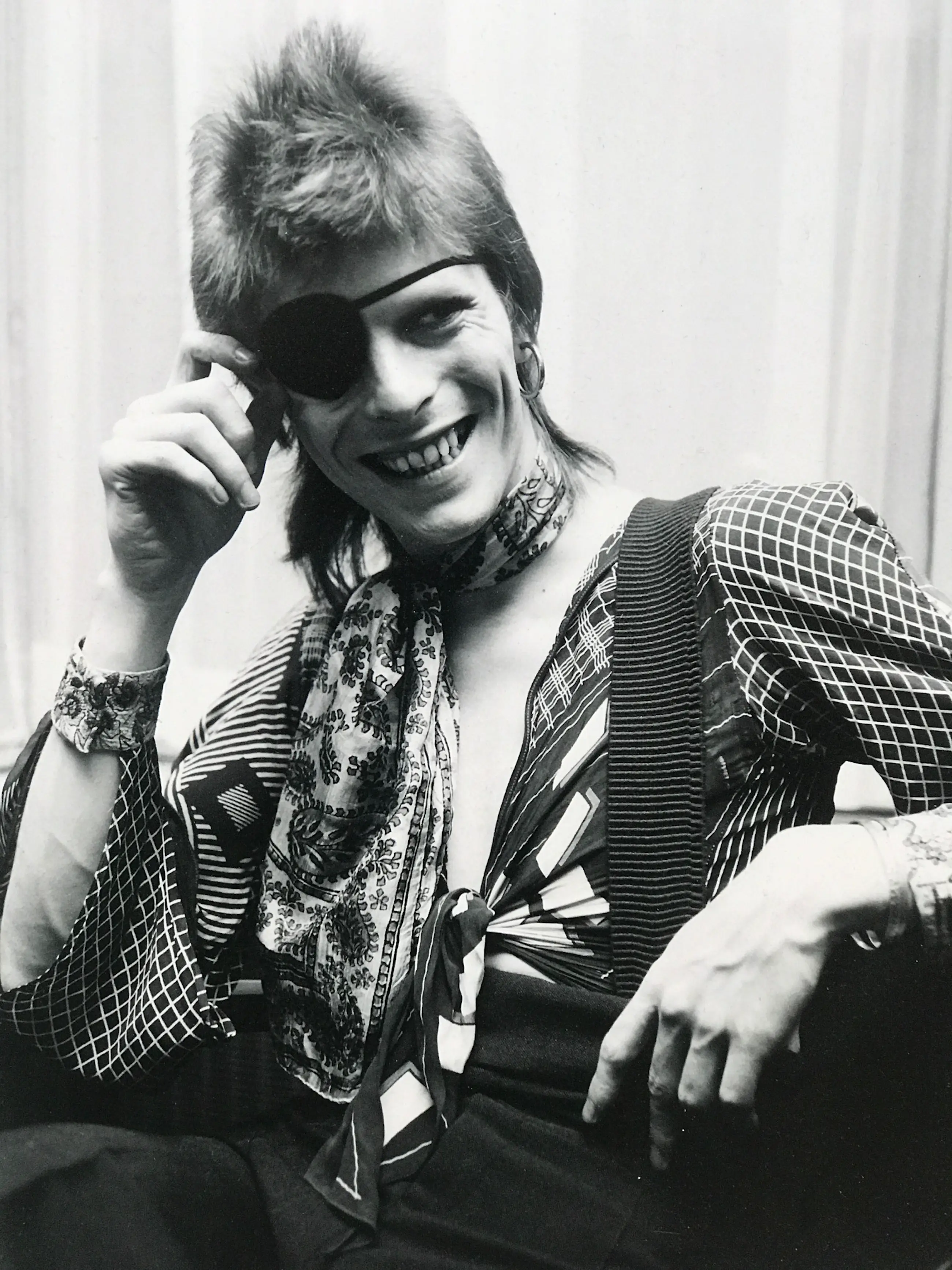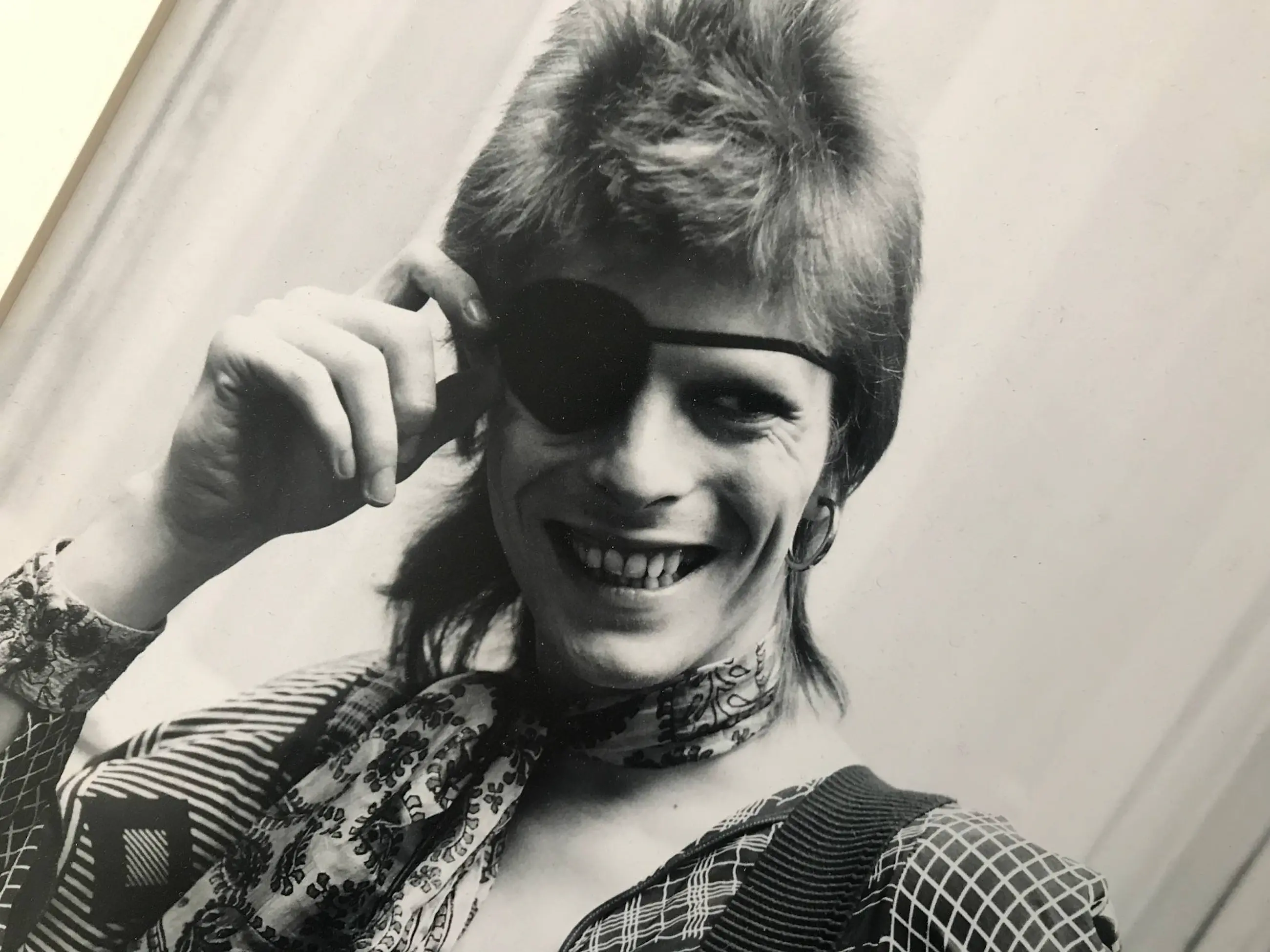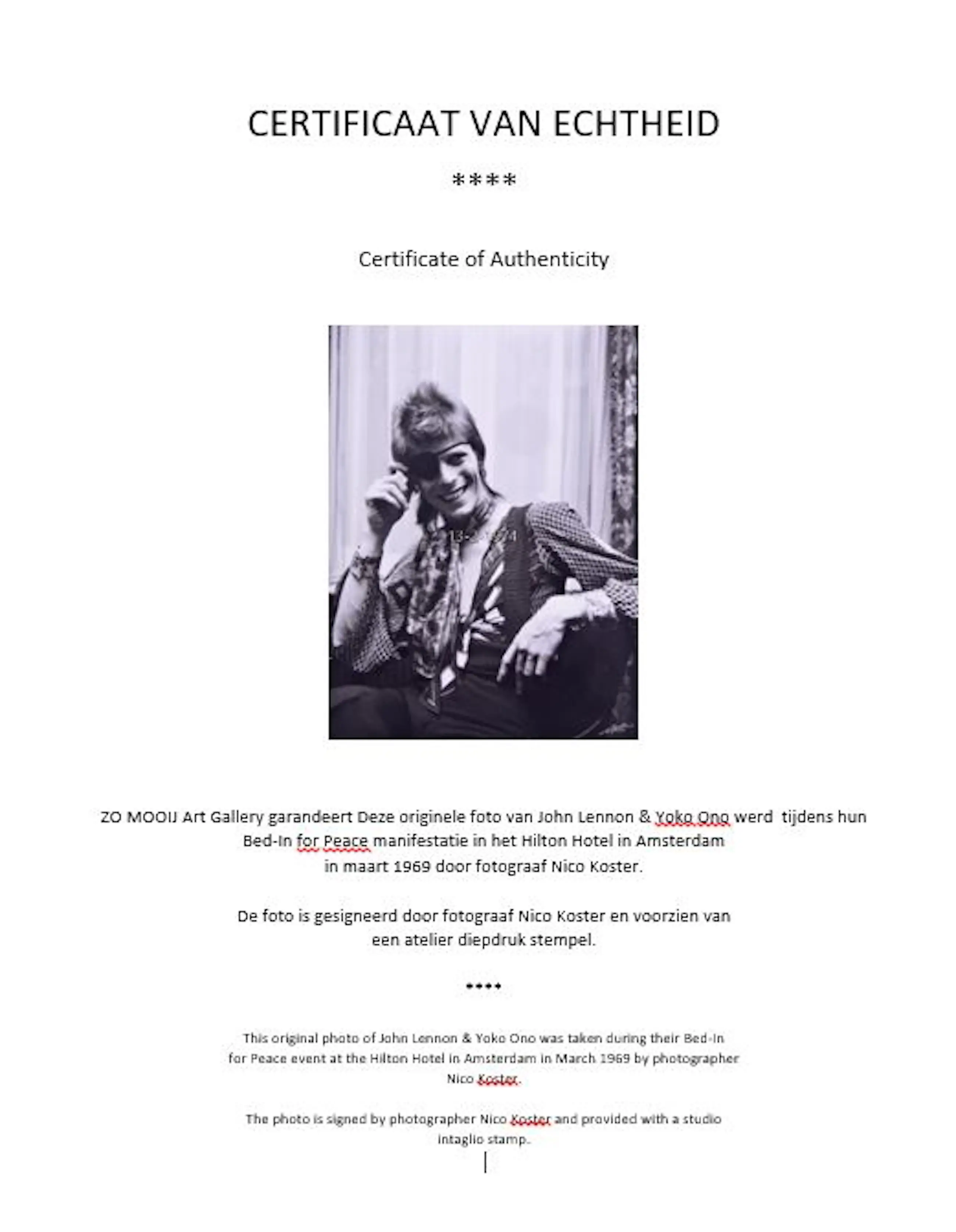 Nico Koster fotografeerde David Bowie in het Amstelhotel tijdens zijn bezoek aan Amsterdam. De foto is gesigneerd en voorzien van preegstempel.