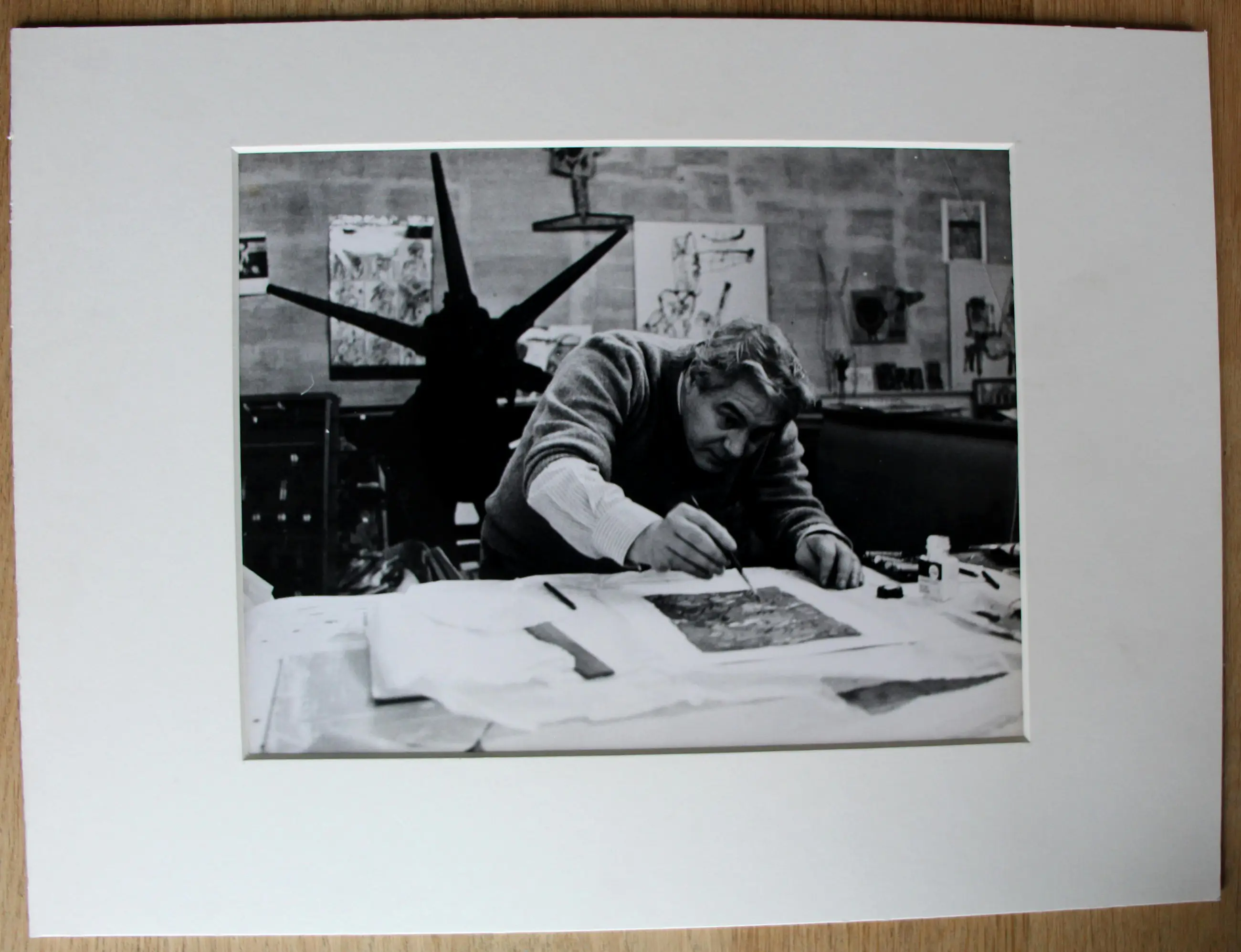 Foto van Nico Koster. Voorstelling van Lucebert. Afmetingen incl passe-partout: H29.5 x b39.5cm. Afmetingen voorstelling: H19.5 x b25cm. Het werk is achterop voorzien van een atelier stempel. De authenticiteit van het aangeboden werk wordt volledig gegarandeerd. Een certificaat van echtheid kan, op aanvraag, worden gemaild.