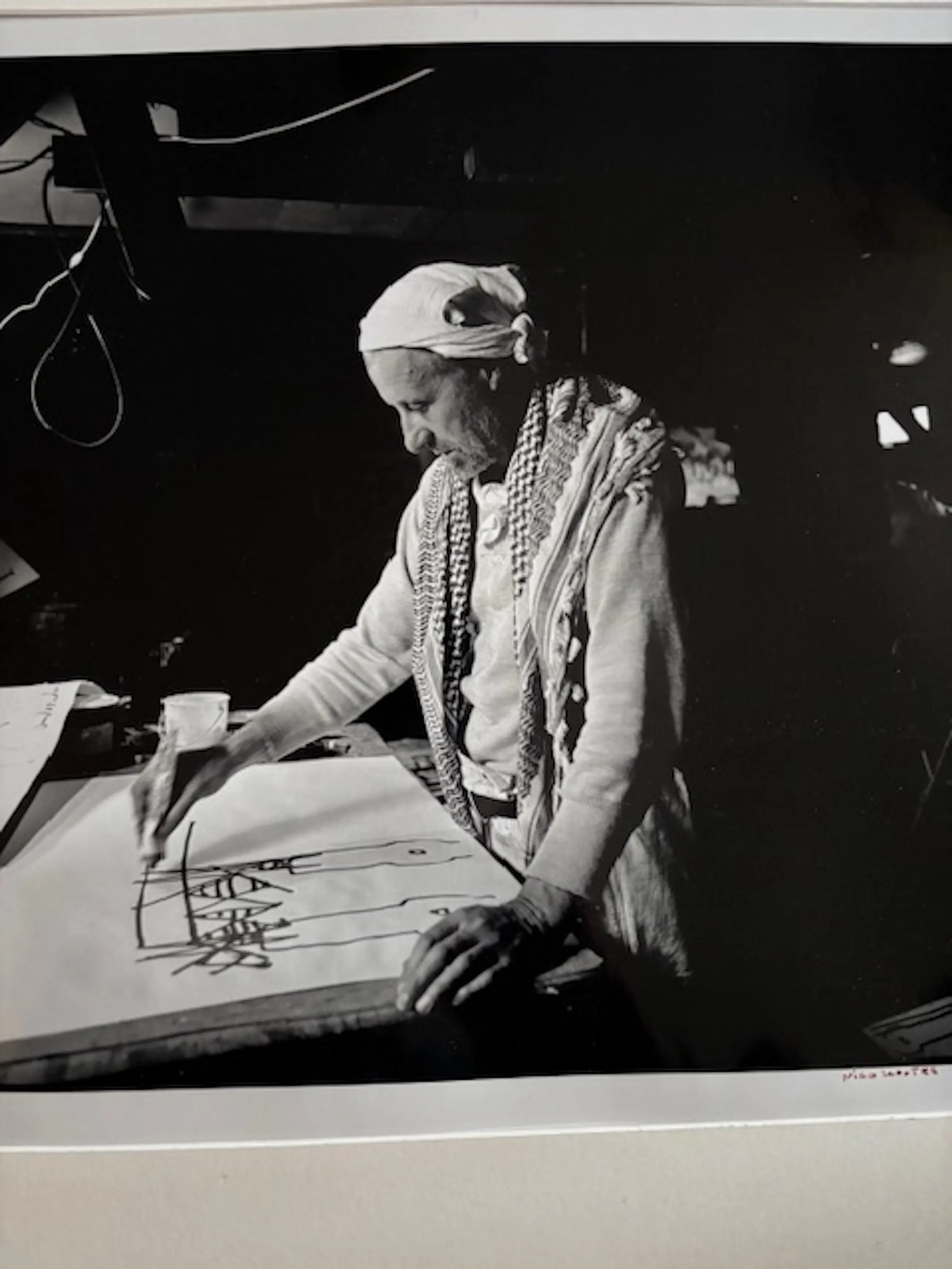 Nico Koster - Nico Koster, foto: Anton Heyboer in zijn atelier, handgesigneerd