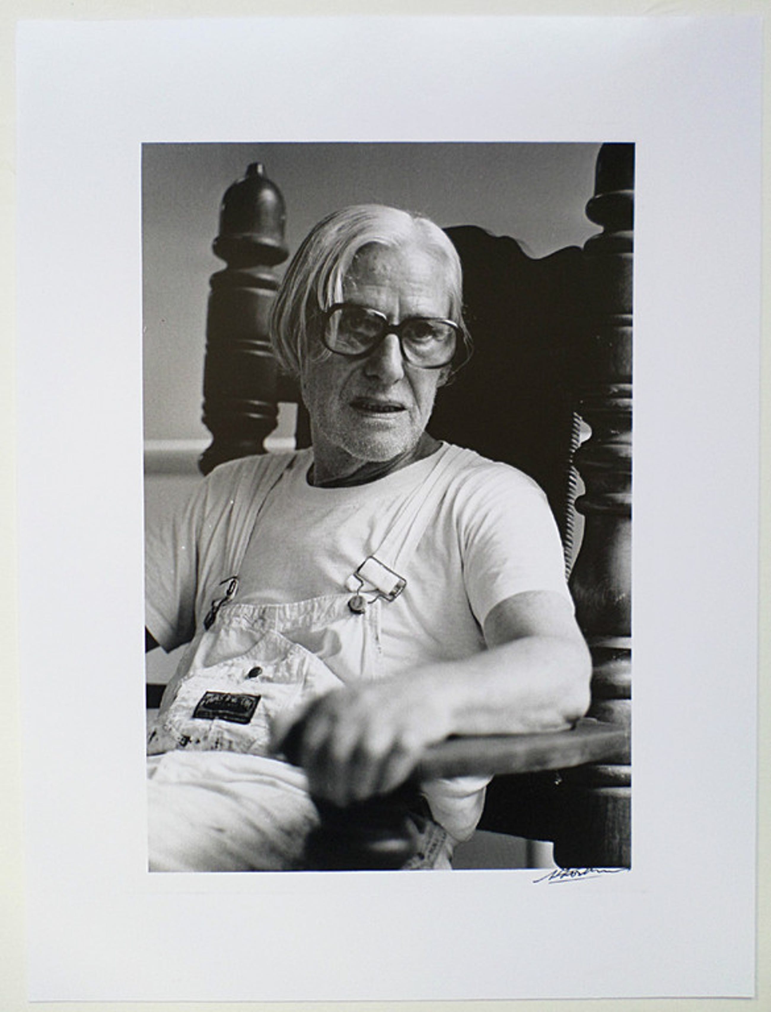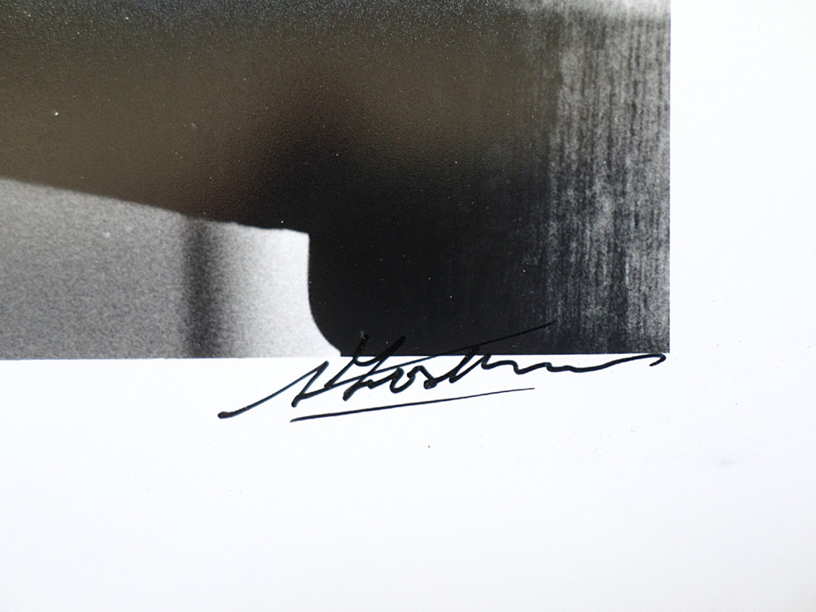 Ingetogen foto van een fragiele Willem de Kooning. Handgesigneerd, in passe-partout. Niet gedateerd, maar op basis van de geschatte leeftijd van De Kooning in deze foto denk ik jaren 90. Als deze foto internationaal geveild wordt (NY, Londen) dan brengt hij echt meer op!