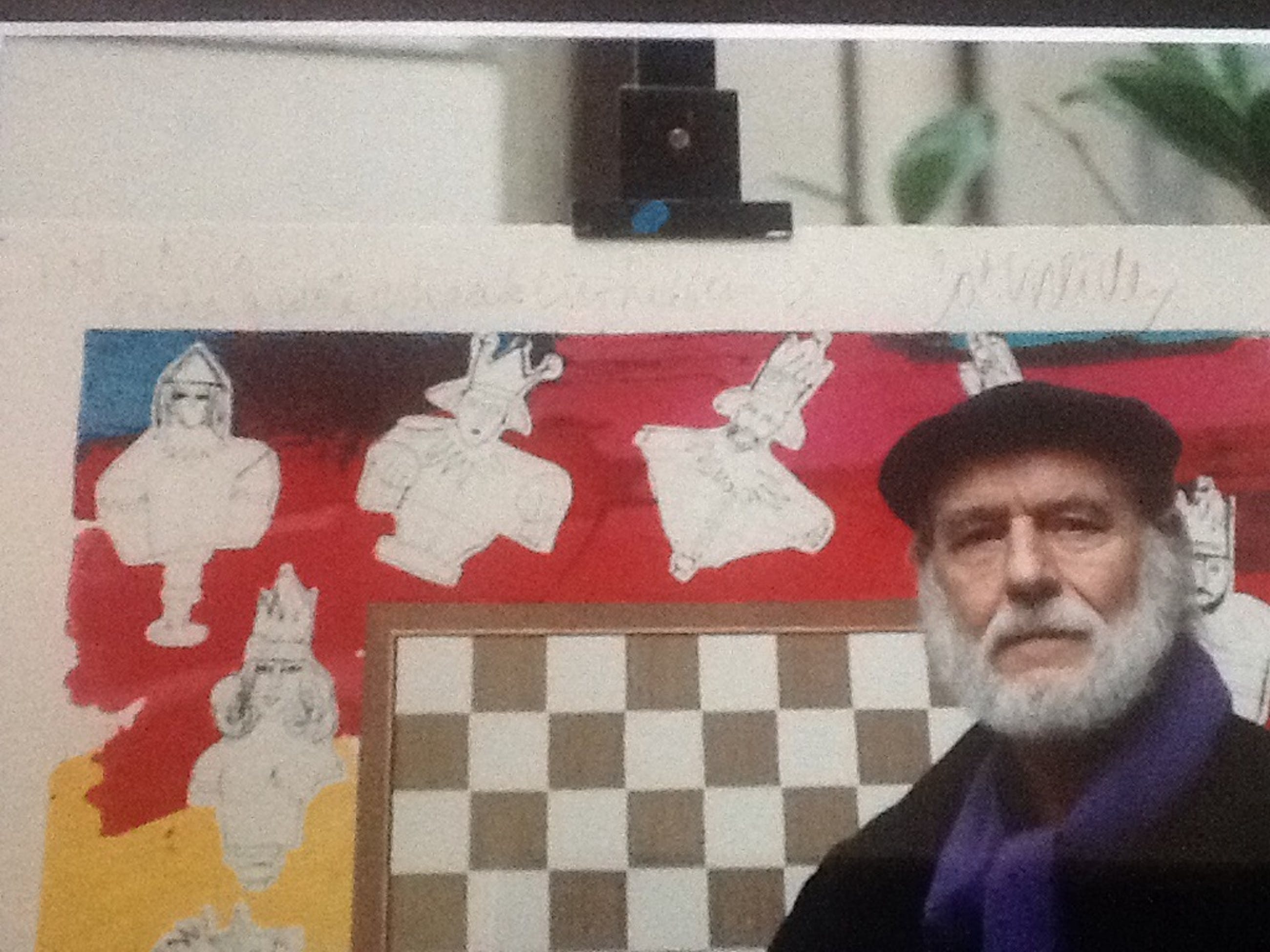 Unieke foto met tekst : Voor Nico onze schaakliefhebber. Corneille