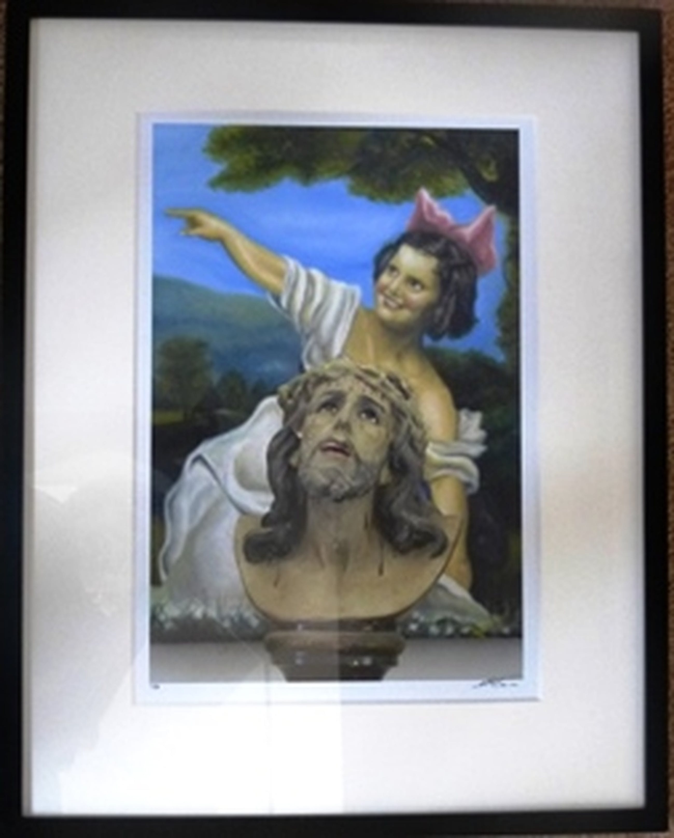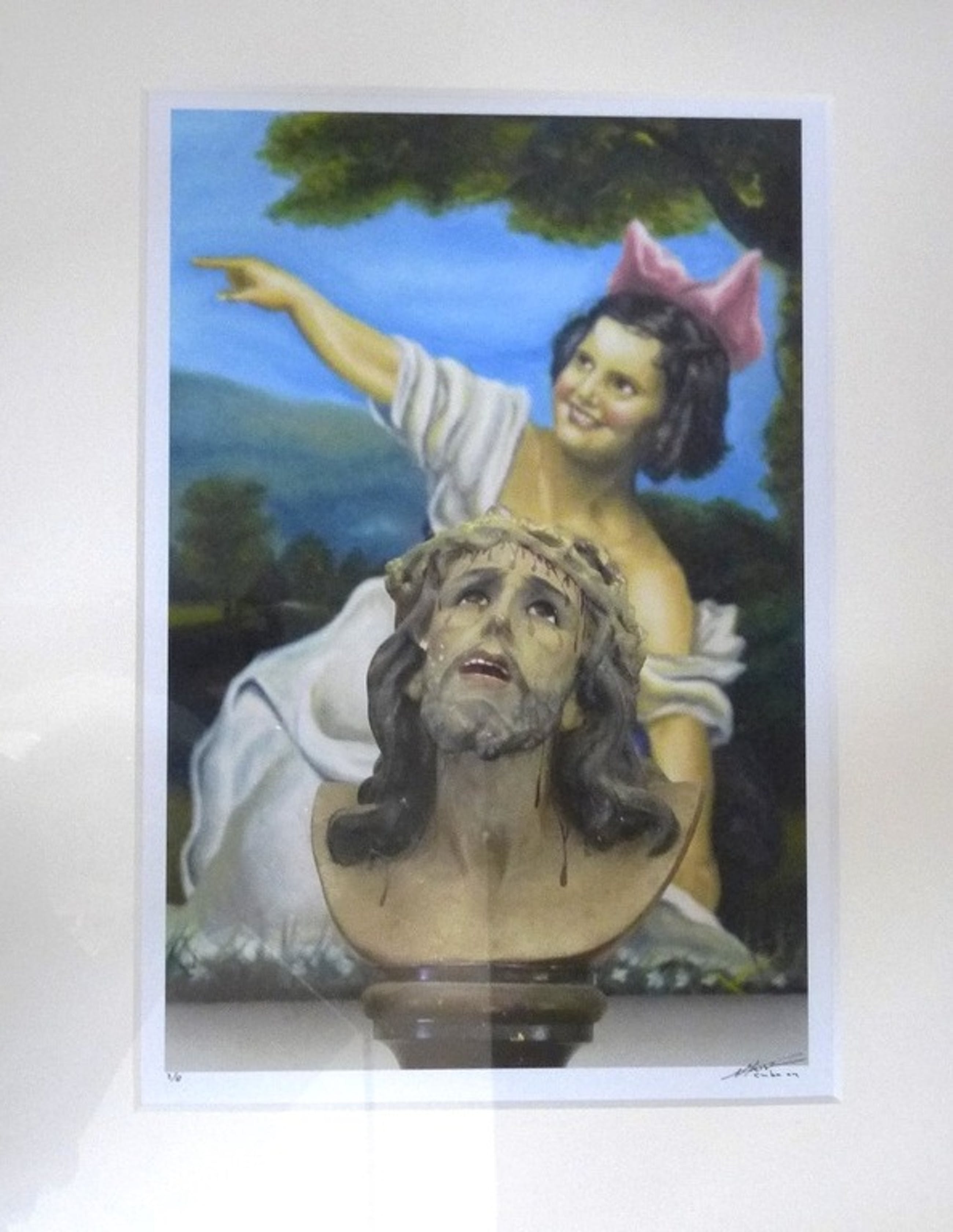 Titel: Corneille in Cuba, jezusbeeld met meisje op de achtergrond
