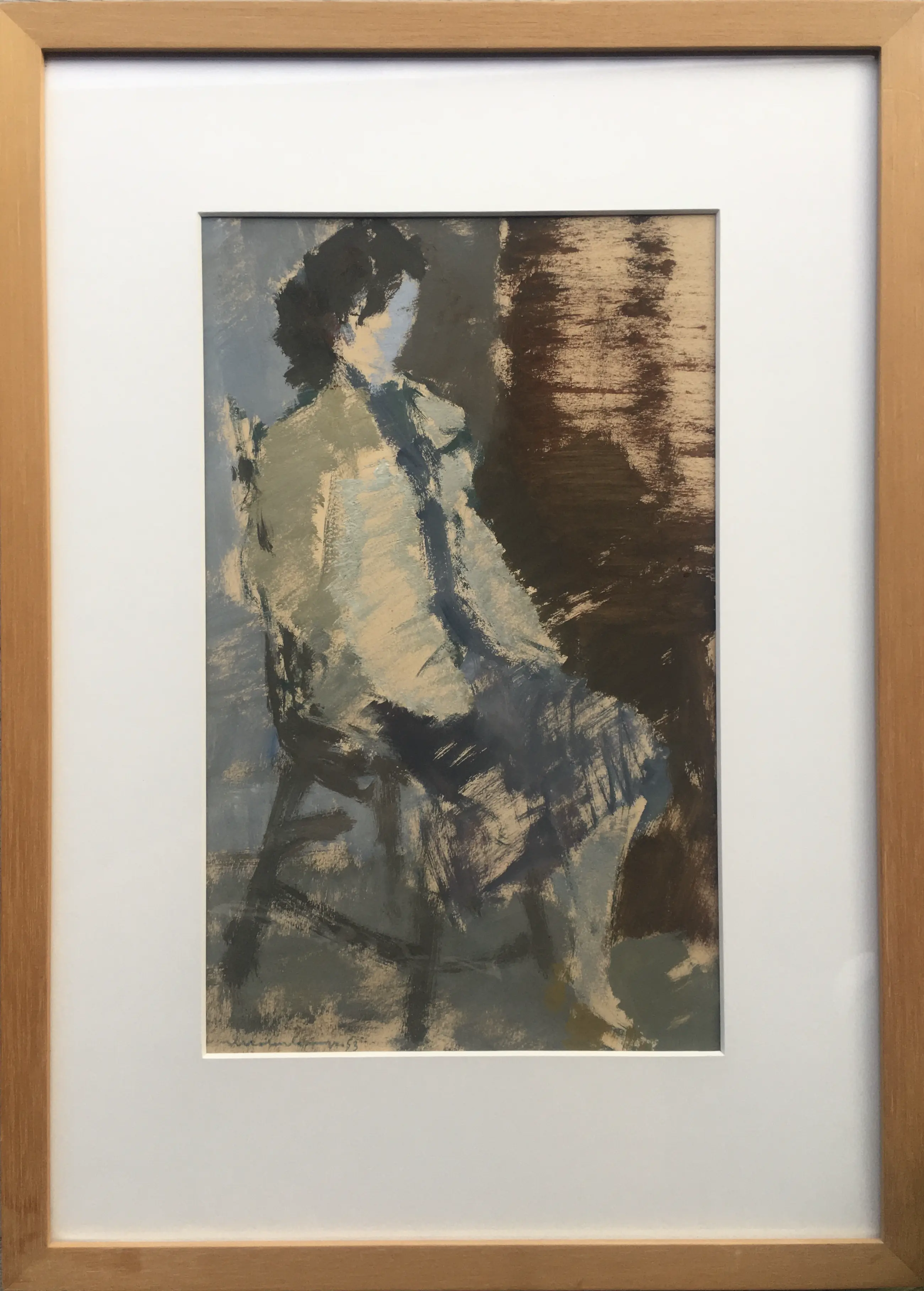 Een fraai werk op papier van Nico Molenkamp uit 1953. Naar alle waarschijnlijkheid is de afgebeelde dame de vrouw van Nico Molenkamp, Rietje.
