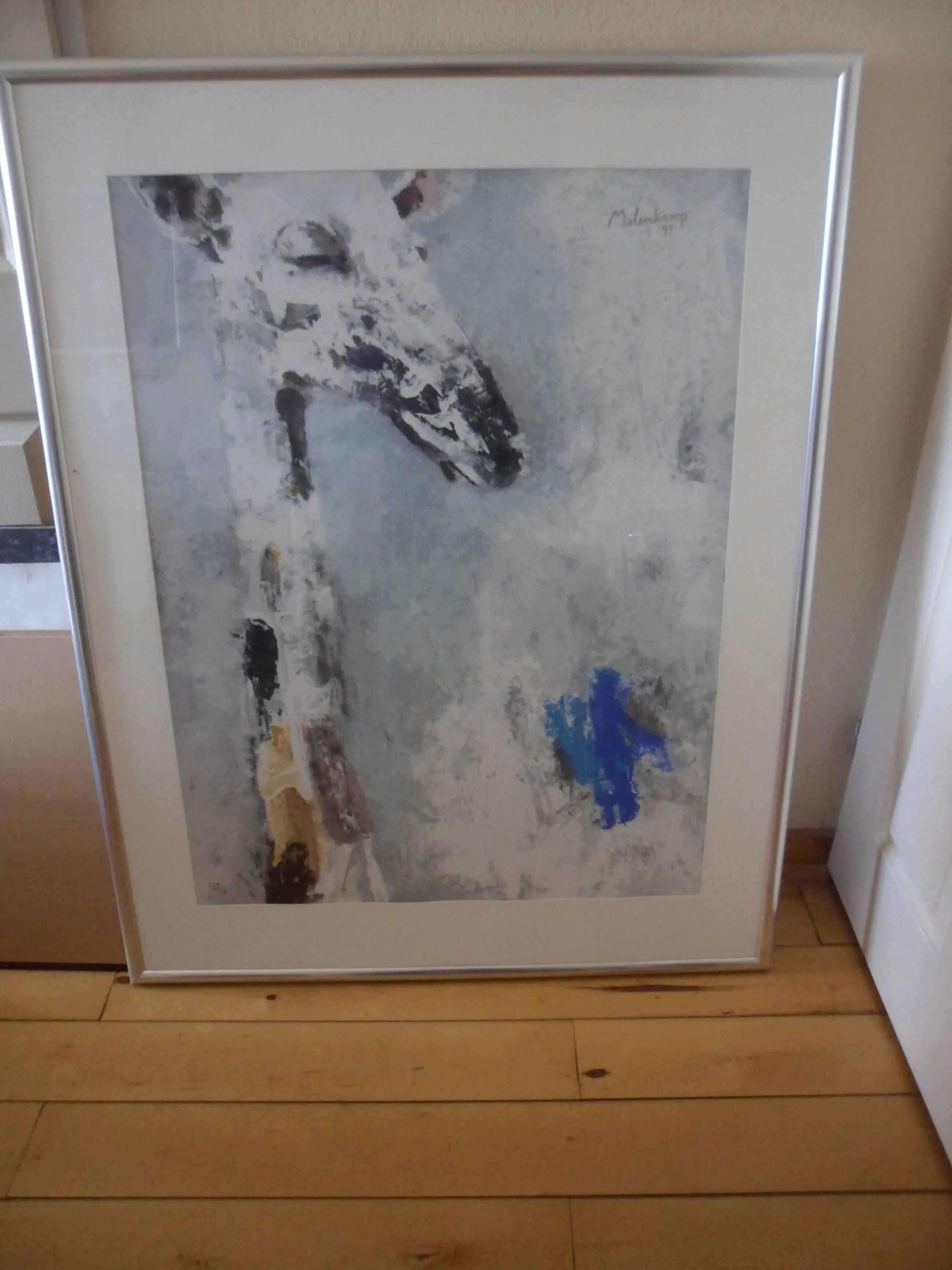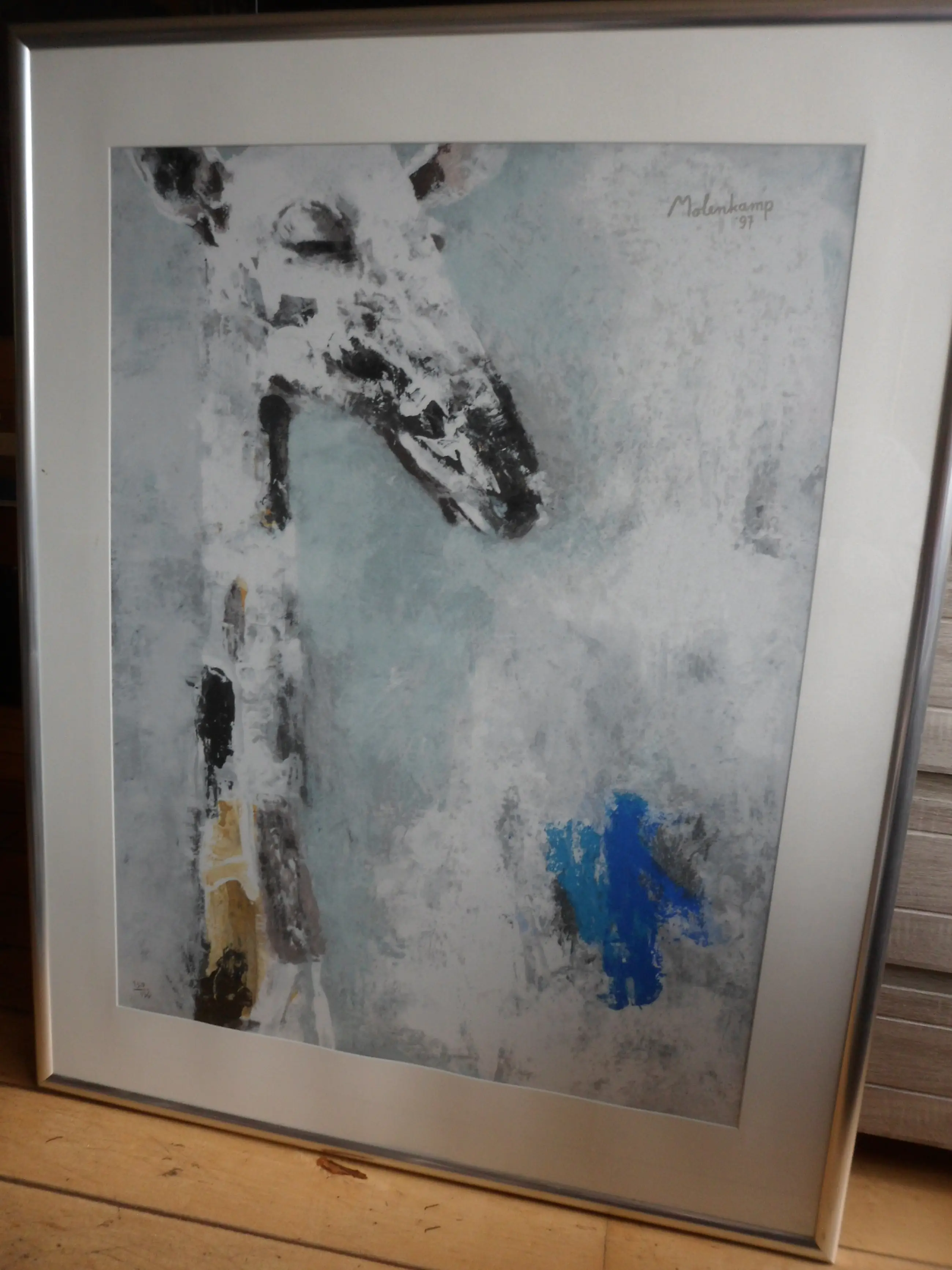 Afmetingen blad: H 95 x B 73 cm, ingelijst H 120 x B 96 cm.