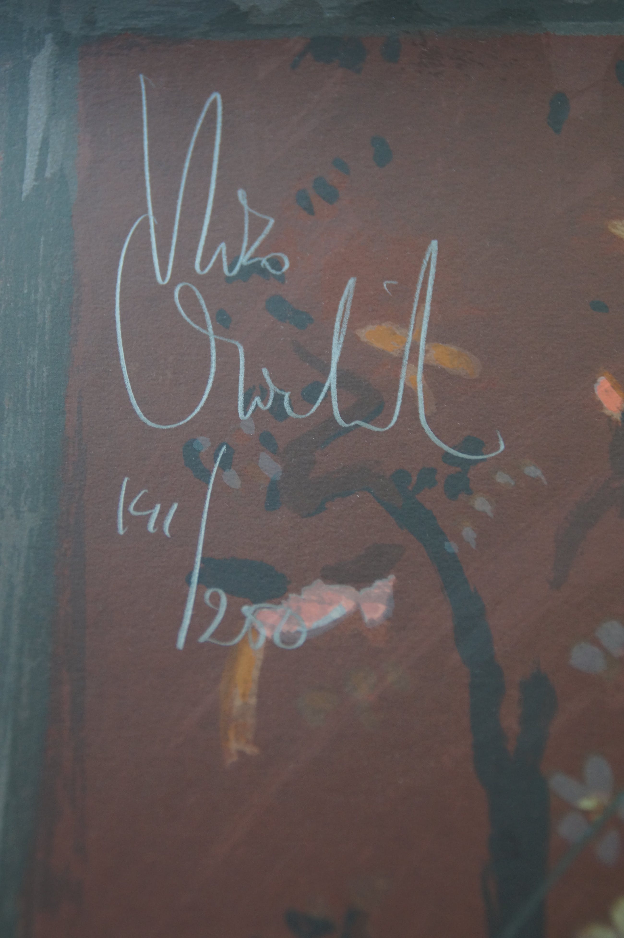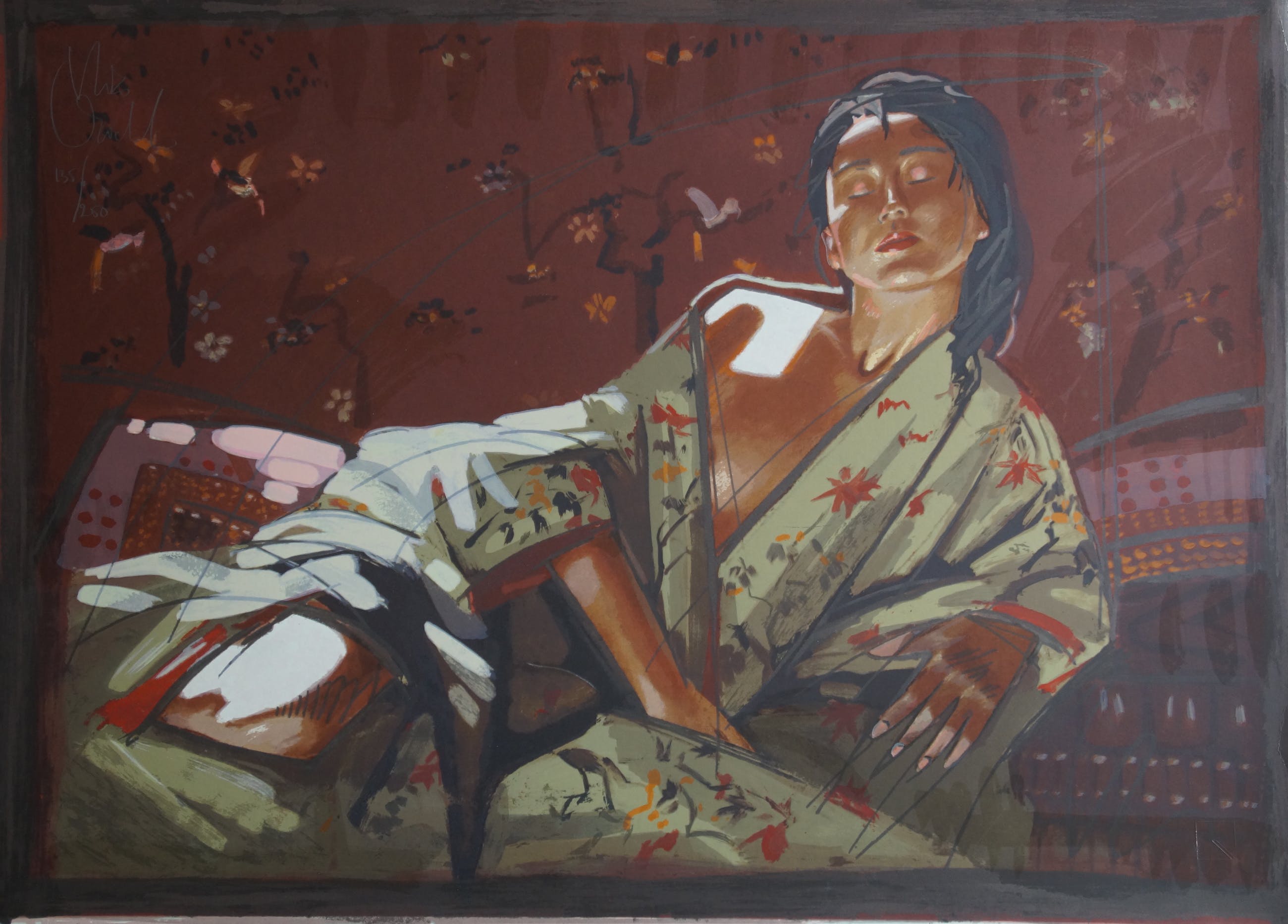 Een prachtige door de kunstenaar met potlood gesigneerd werk van zijn vrouw Jeane dat een extra dimensie krijgt door zijn doffe en glanzende vlakken. In perfecte conditie (was nooit ingeraamd).