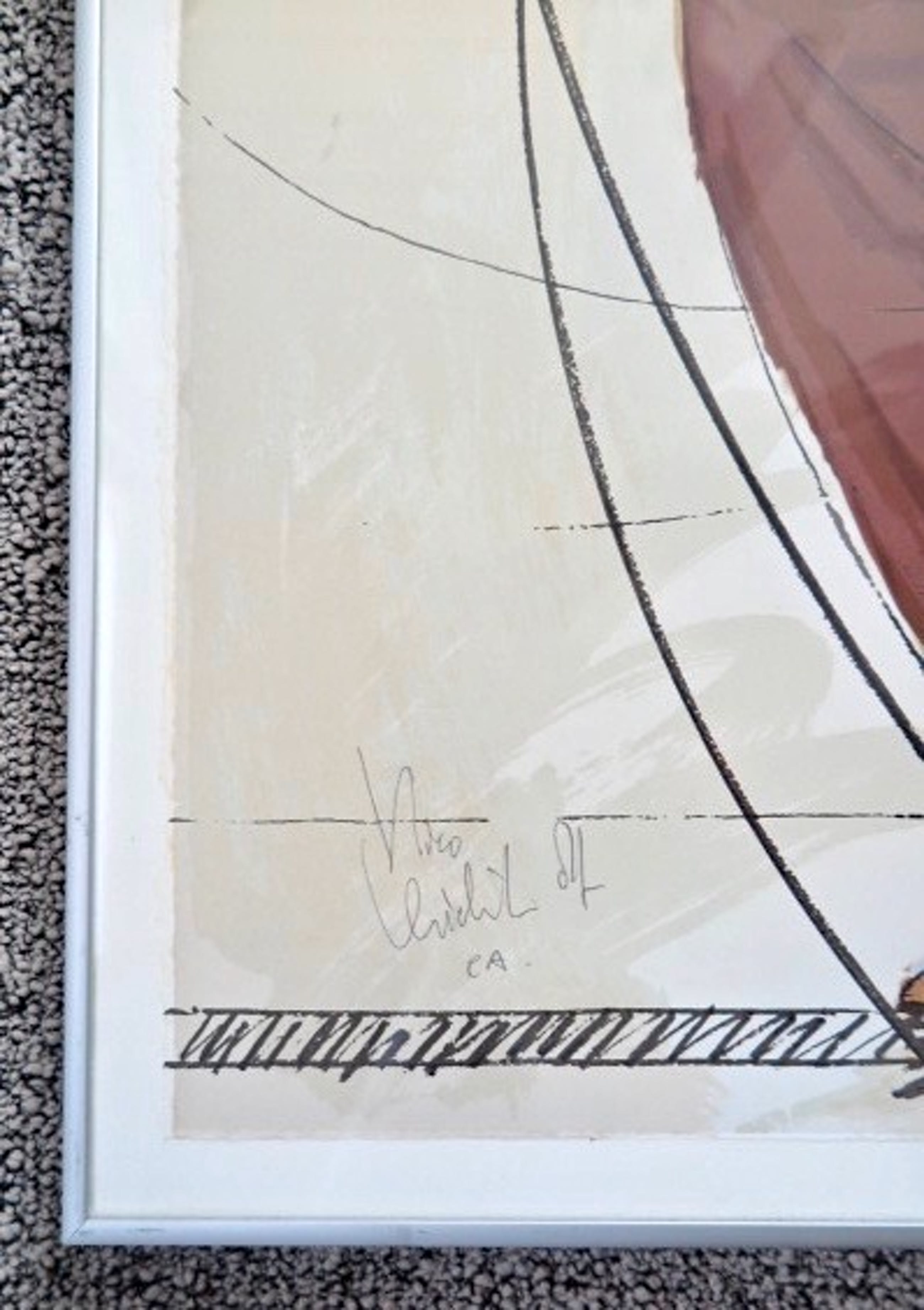 Ingelijst in passe-partout achter glas in nette vintage aluminium lijst
