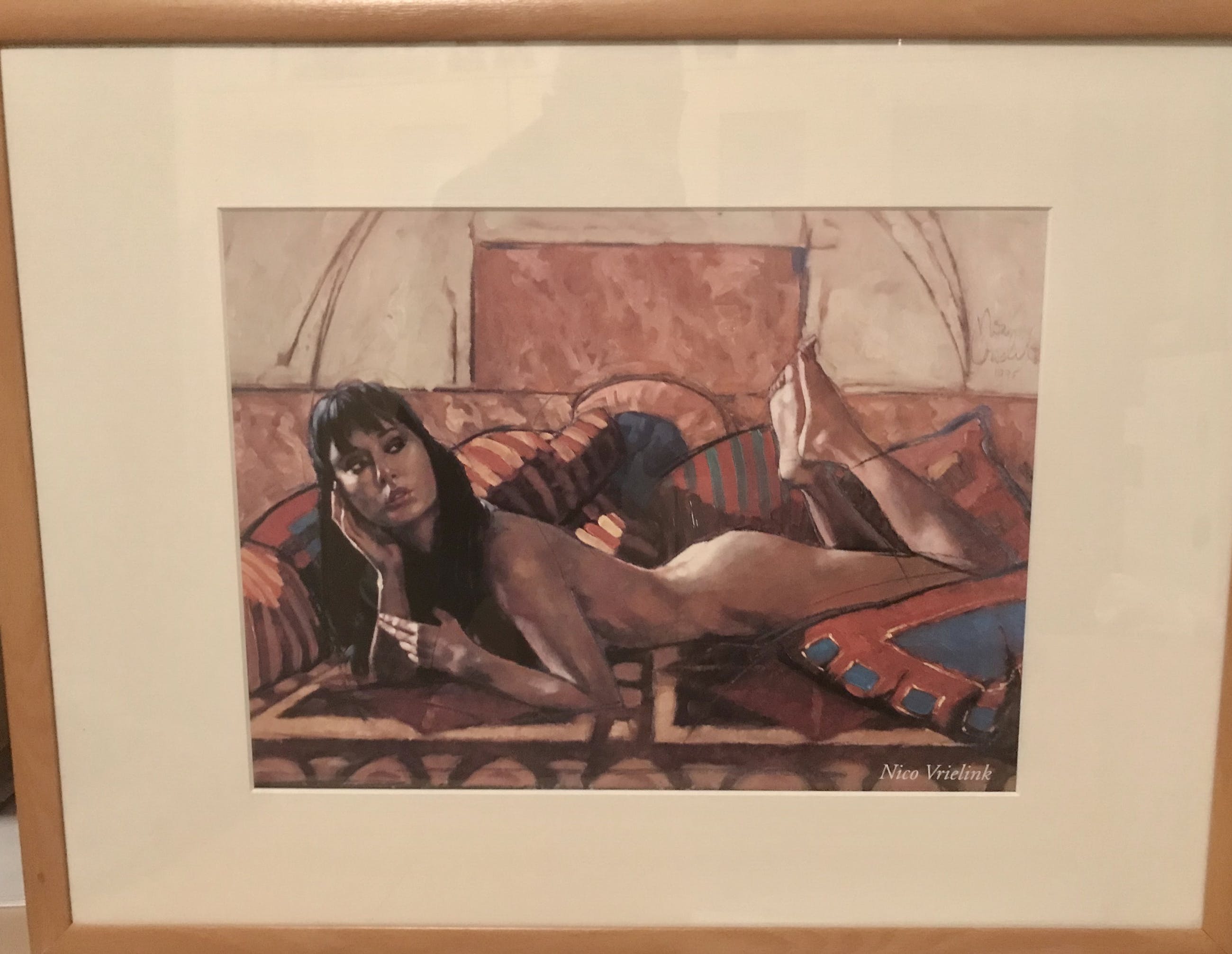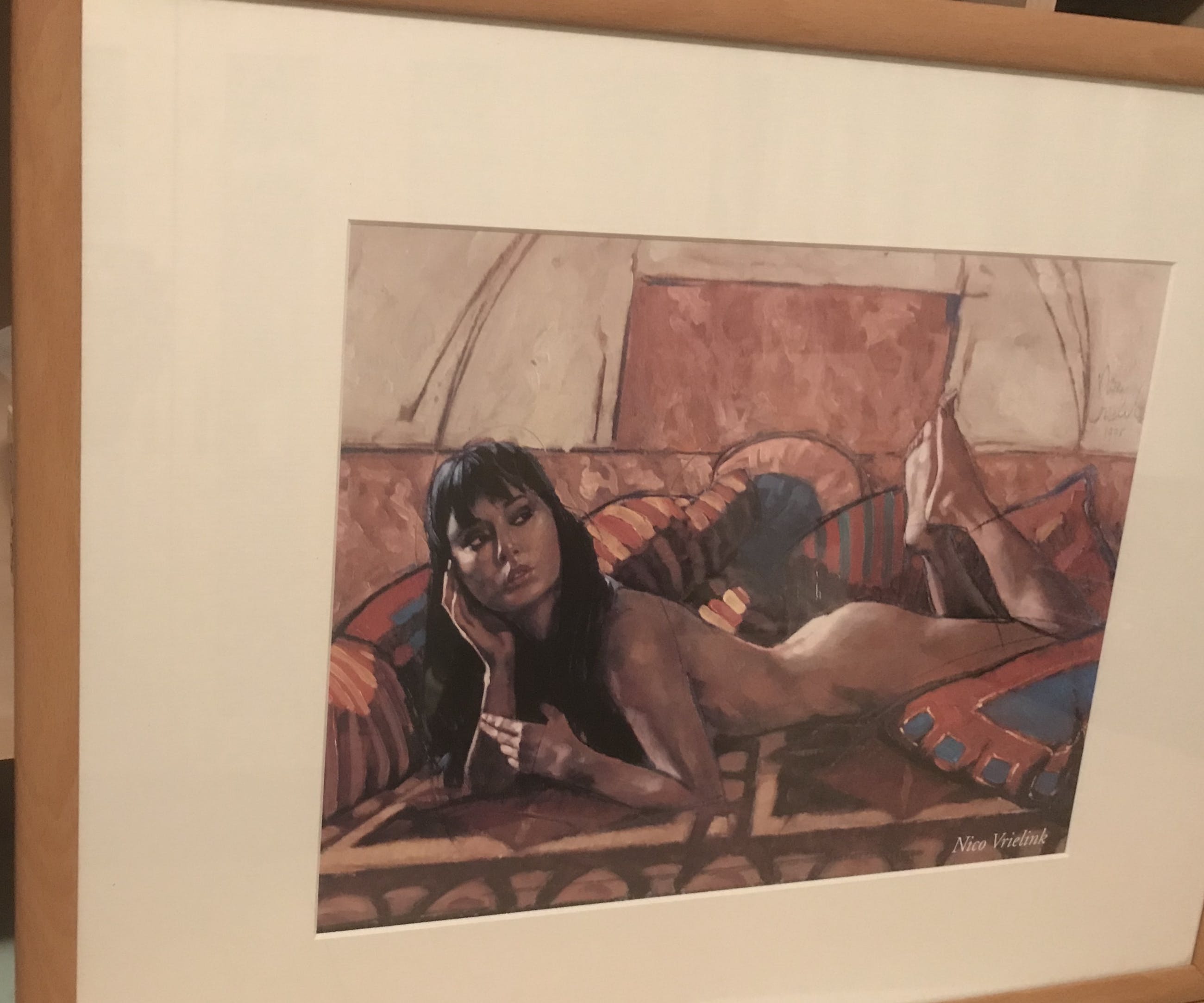 Ingeraamd werk van Vrielink uit 1995 Gespiegeld glas en houten lijst Binnenkader: 29 x 39 cm.