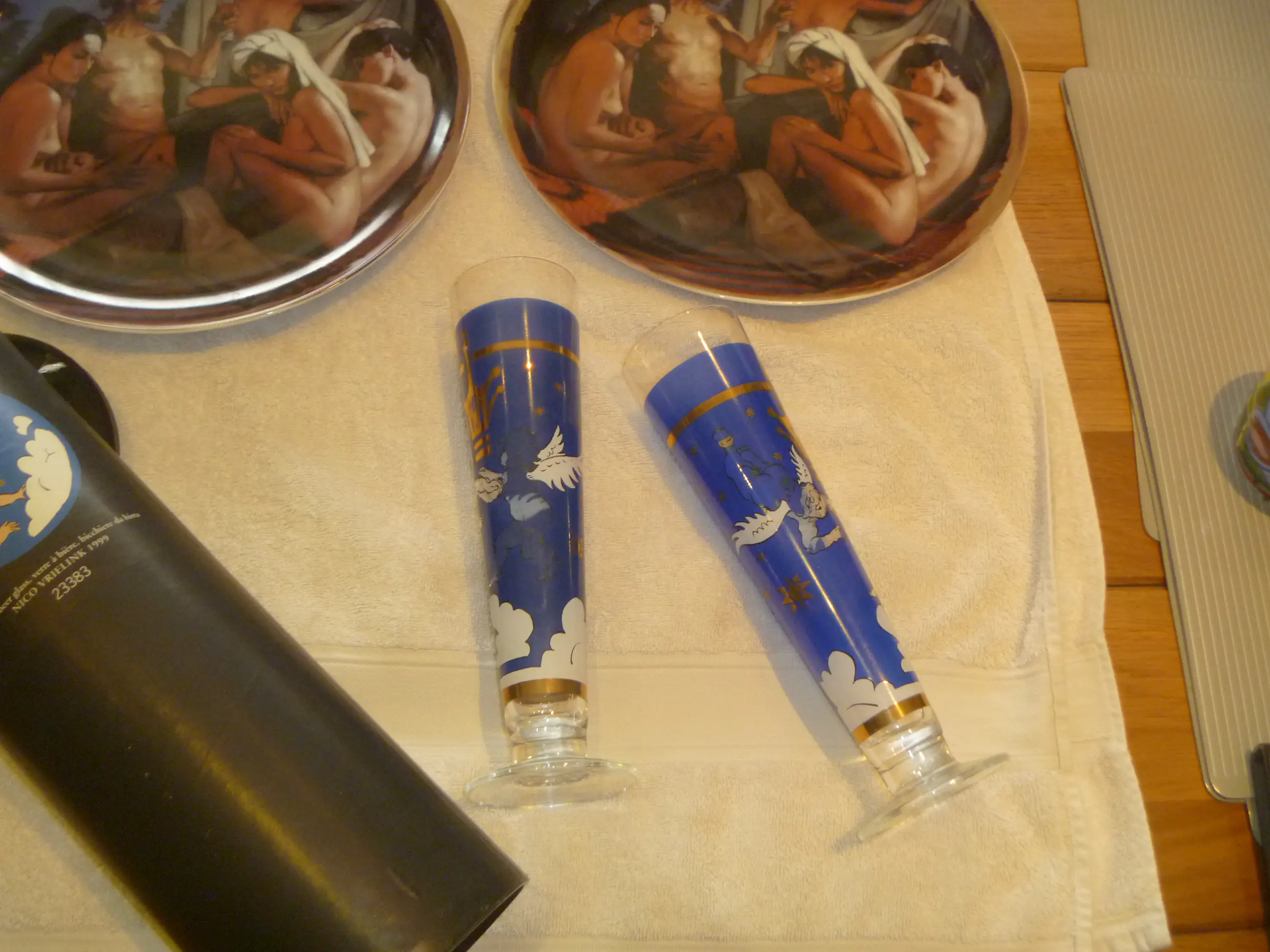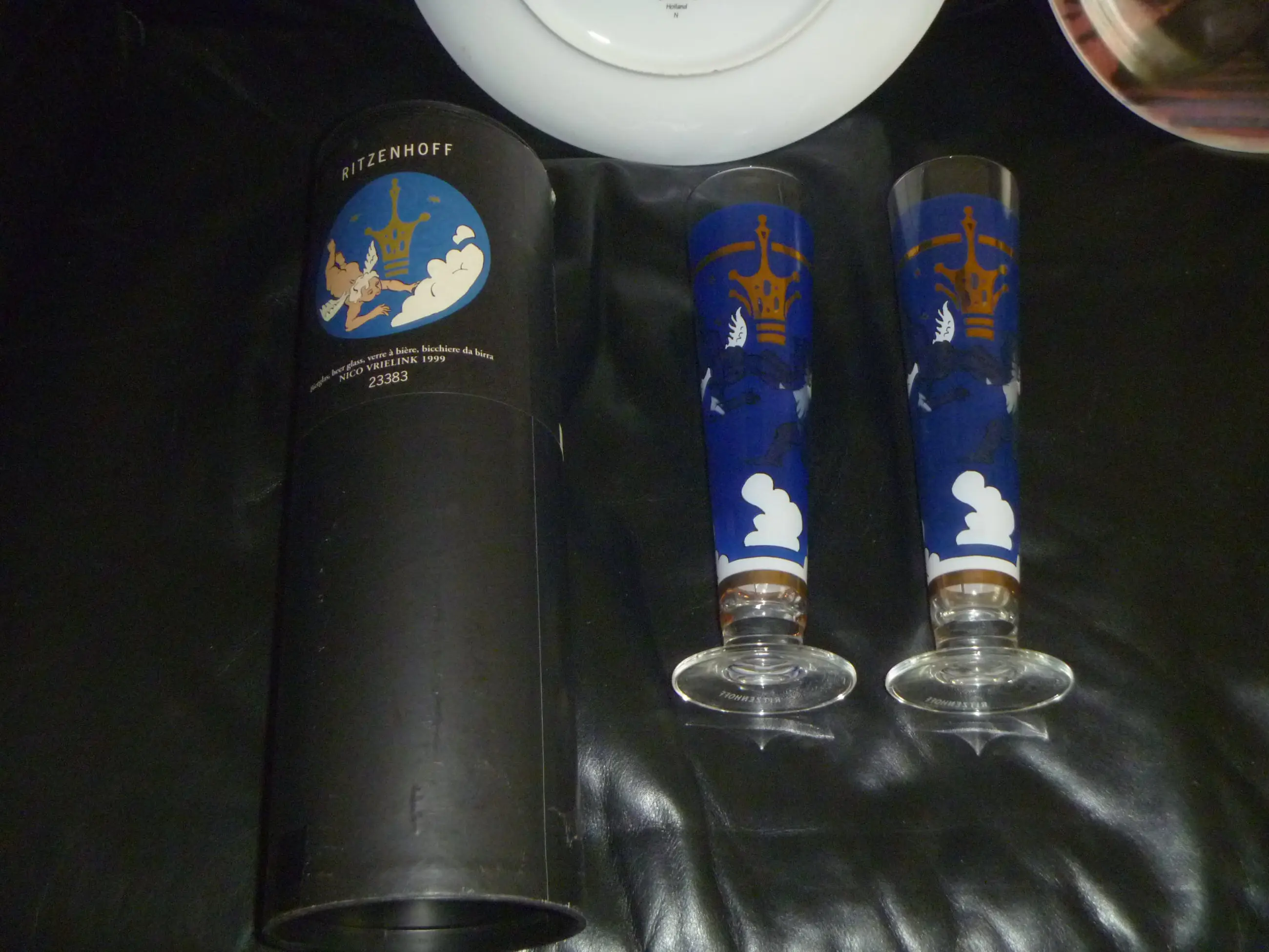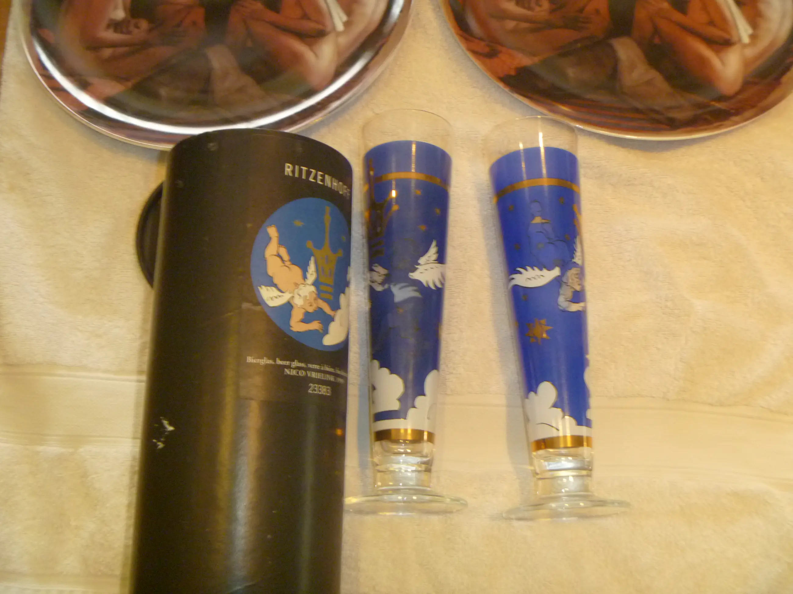 2 glazen met afbeeldingen van Nico waarvan 1 in originele koker .