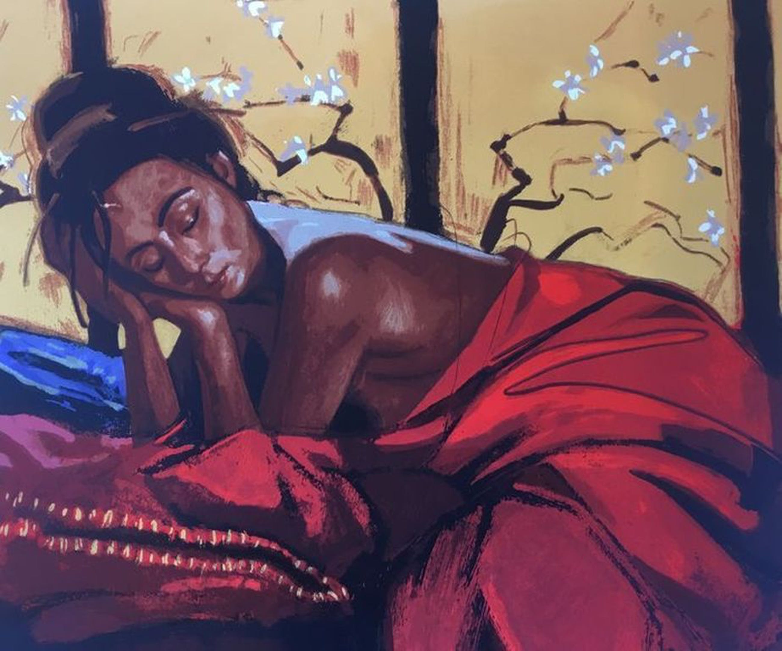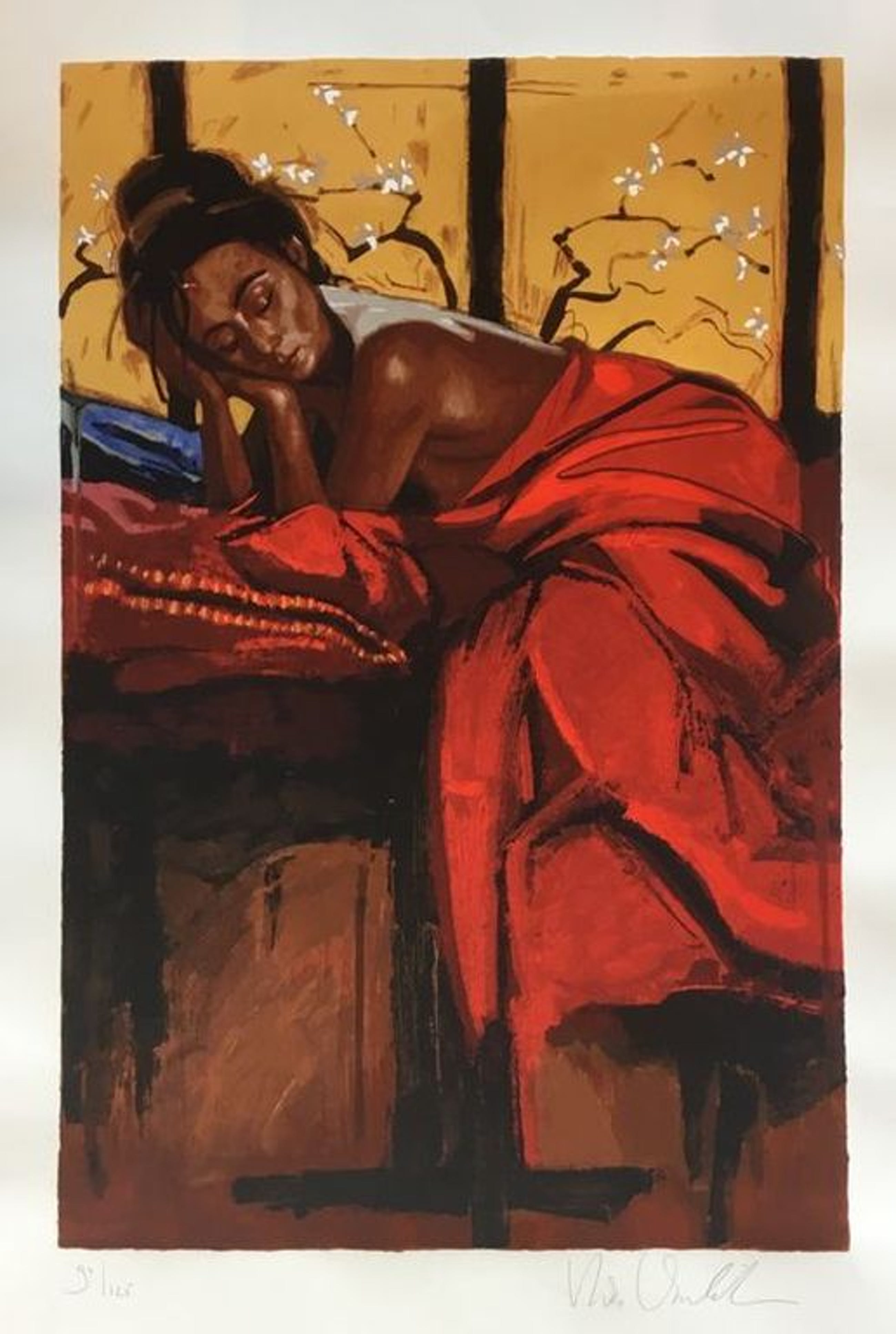 Nico Vrielink Jeanne I , zeefdruk Nico Vrielink ,ingelijst in luxe lijst , afmeting 94 x 113 cm